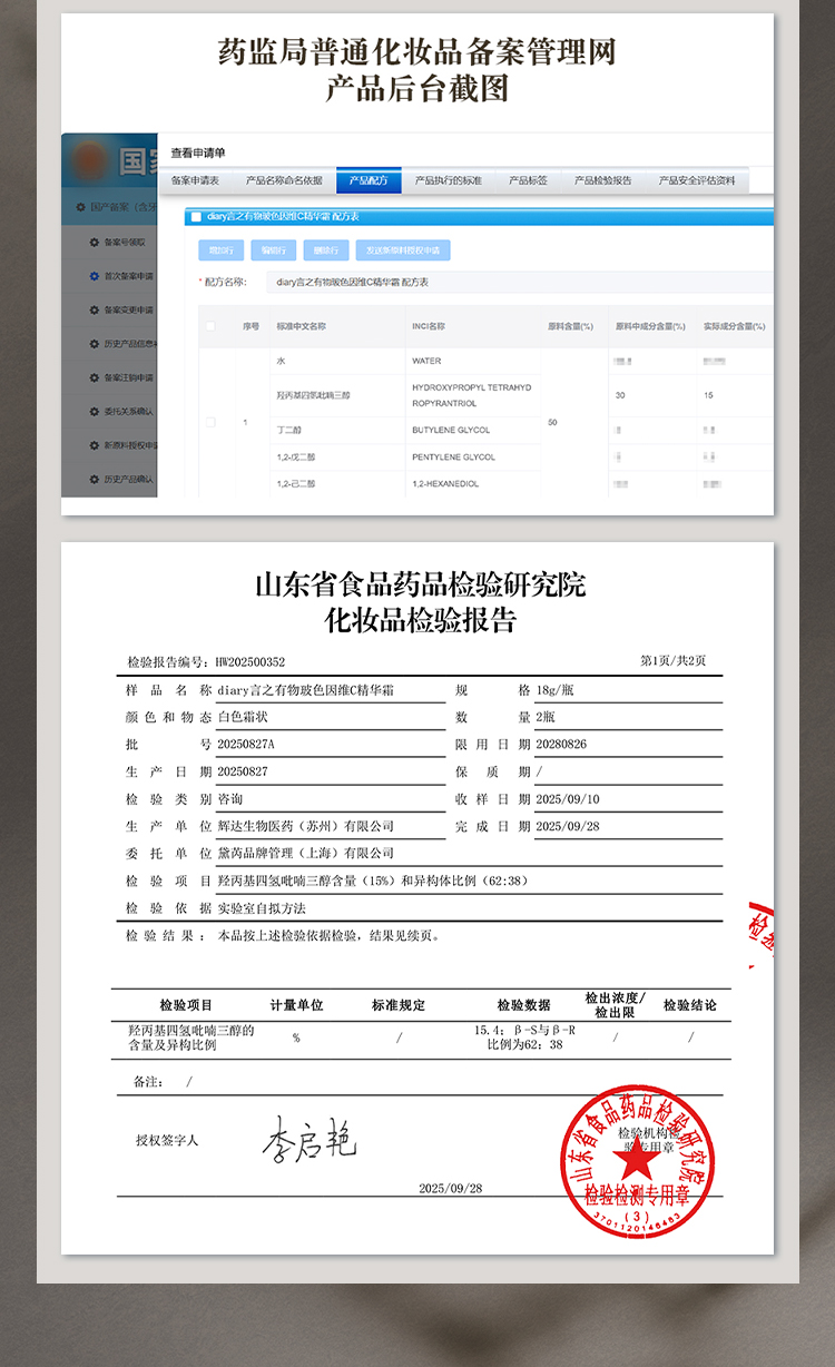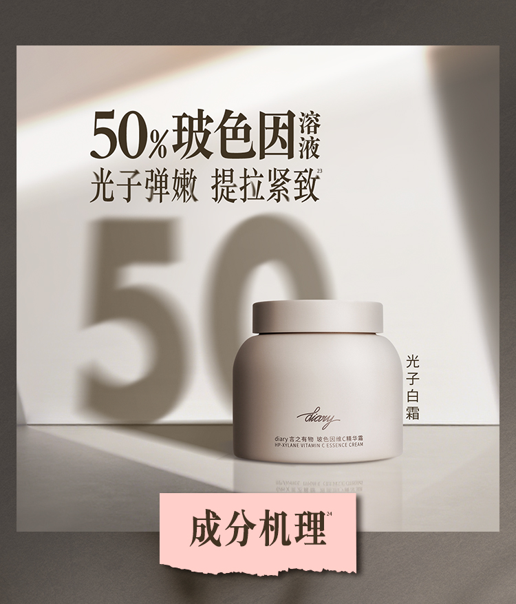 【新品上新】【到手68g!】diary言之有物50%玻色因溶液维C精华霜光子白霜50g 抗皱紧致