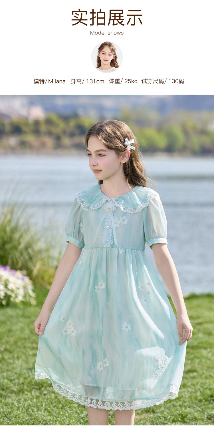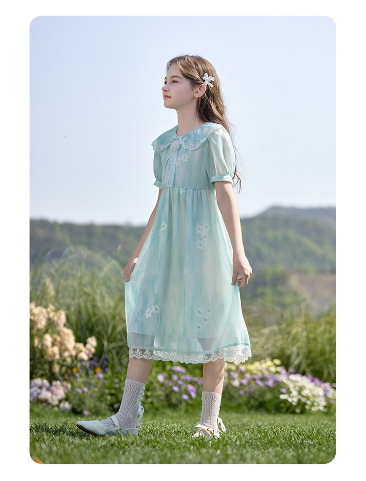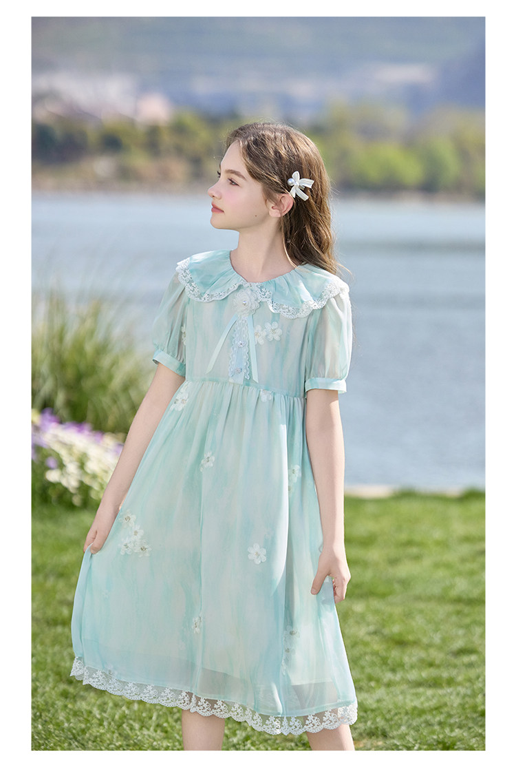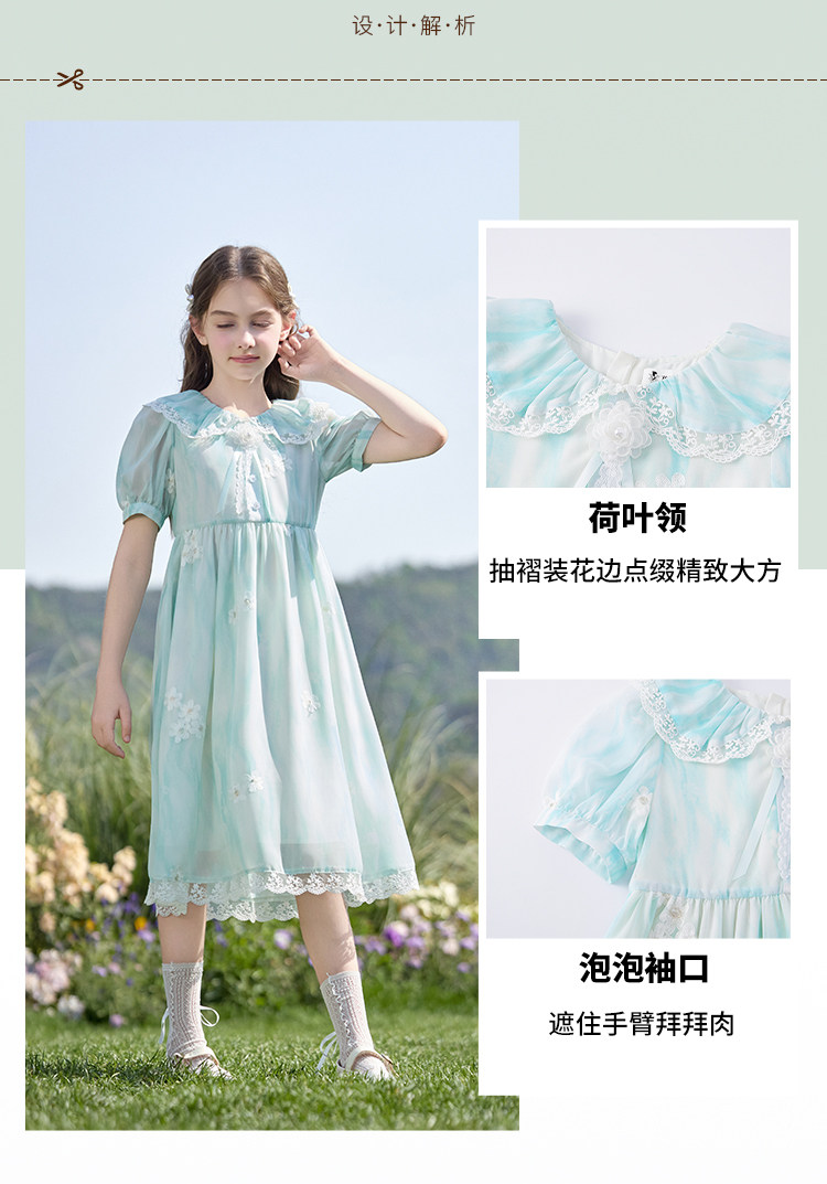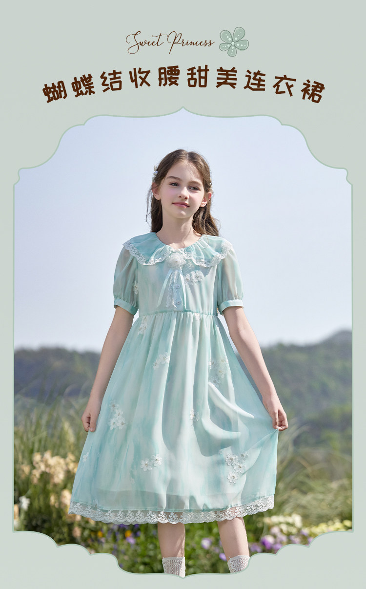 【孩提精灵】1079清新绿渐变公主裙童连衣裙-喜出