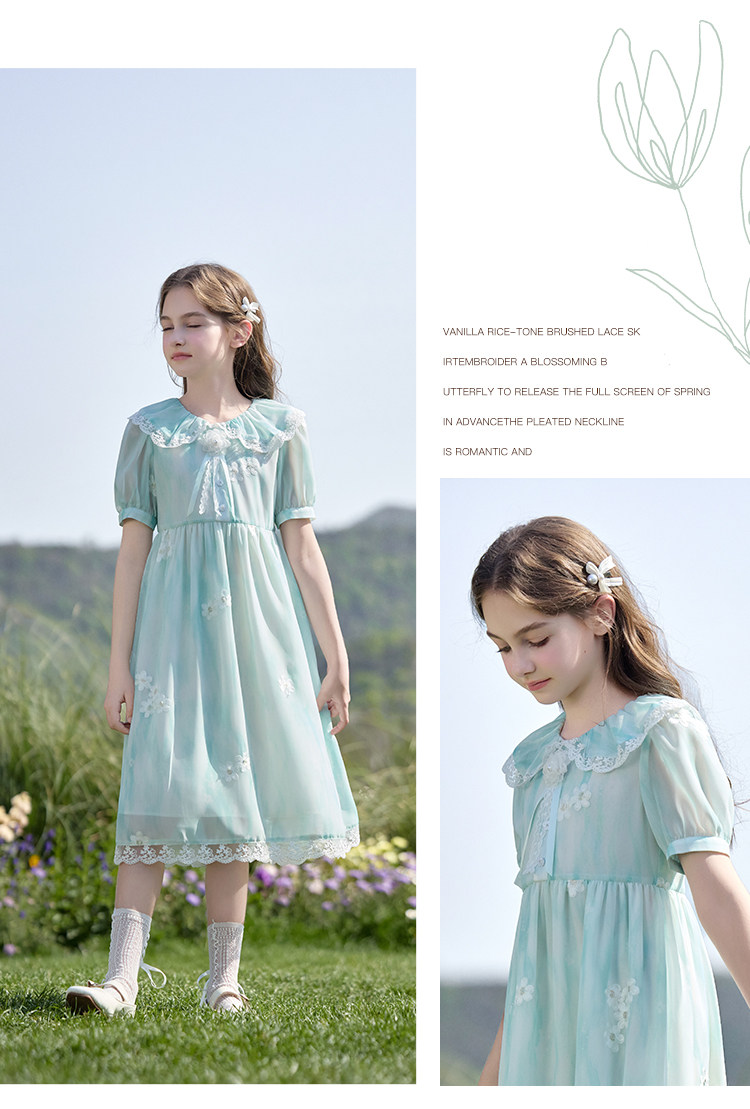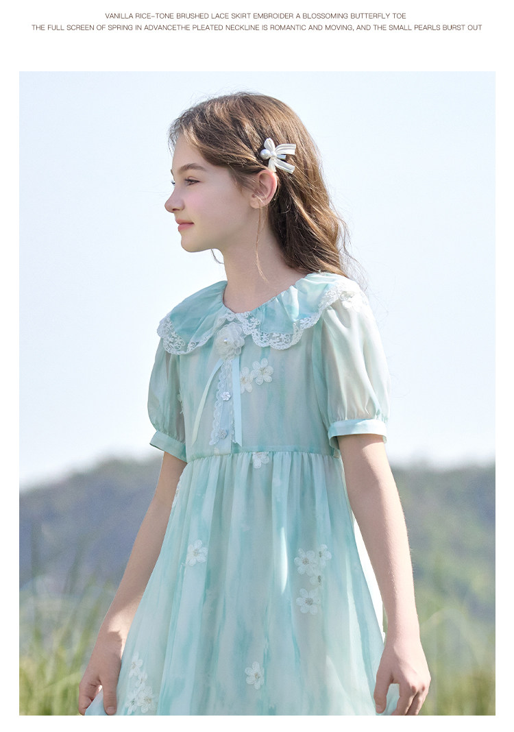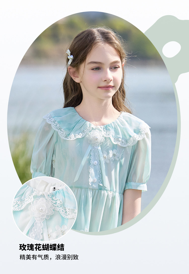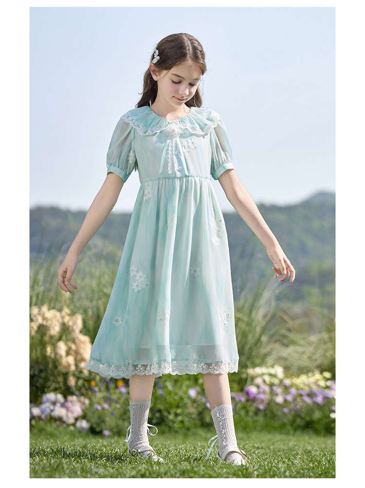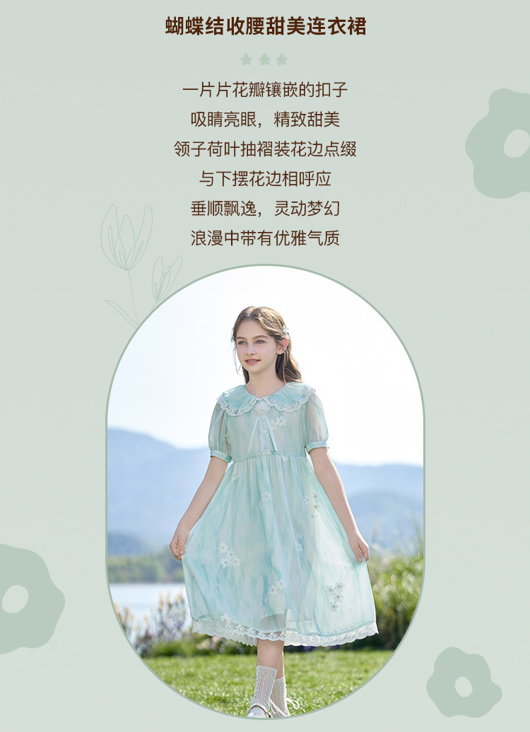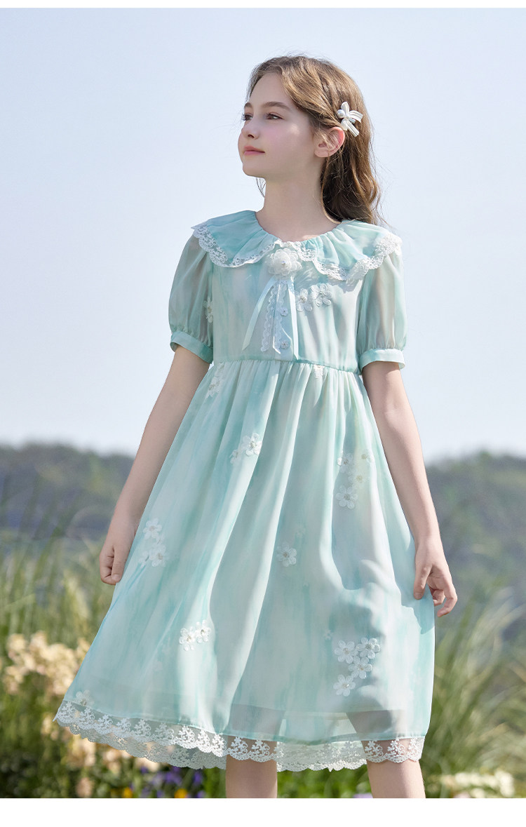 【孩提精灵】1079清新绿渐变公主裙童连衣裙-喜出
