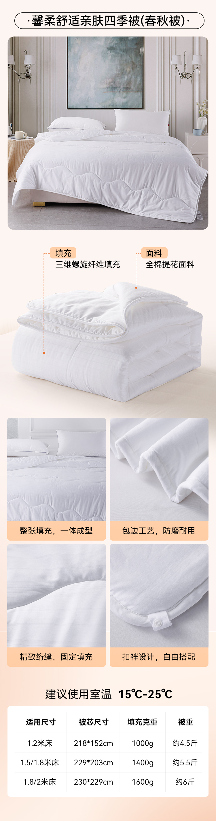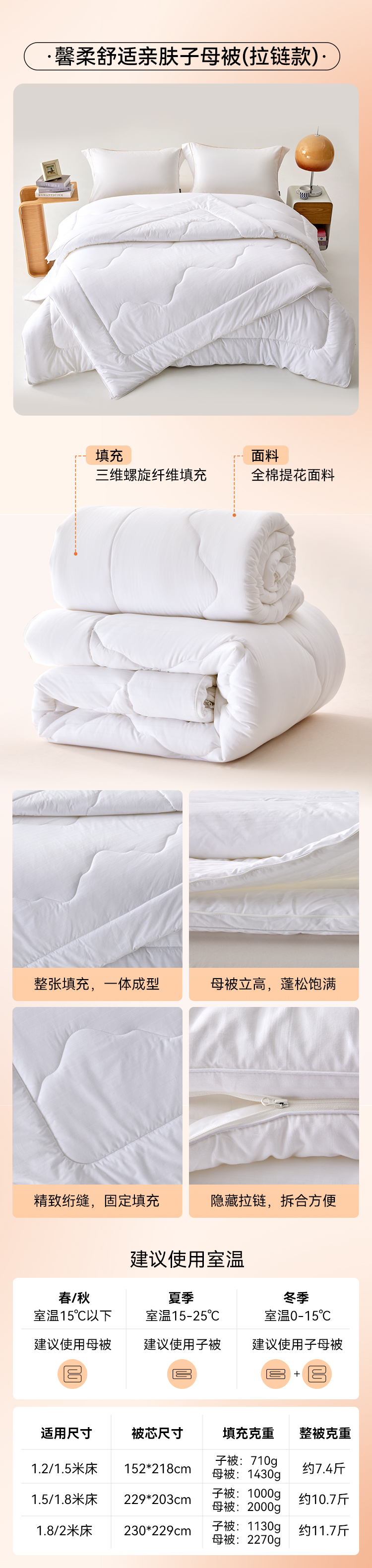 多喜爱 馨柔舒适亲肤被系列 春秋被/子母被(拉链款)hl【全棉提花】【加厚柔暖】【蓬松饱满】【立高工艺】A类 精致绗缝 包边工艺 厚度可选
