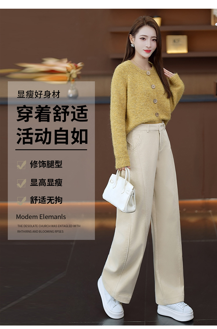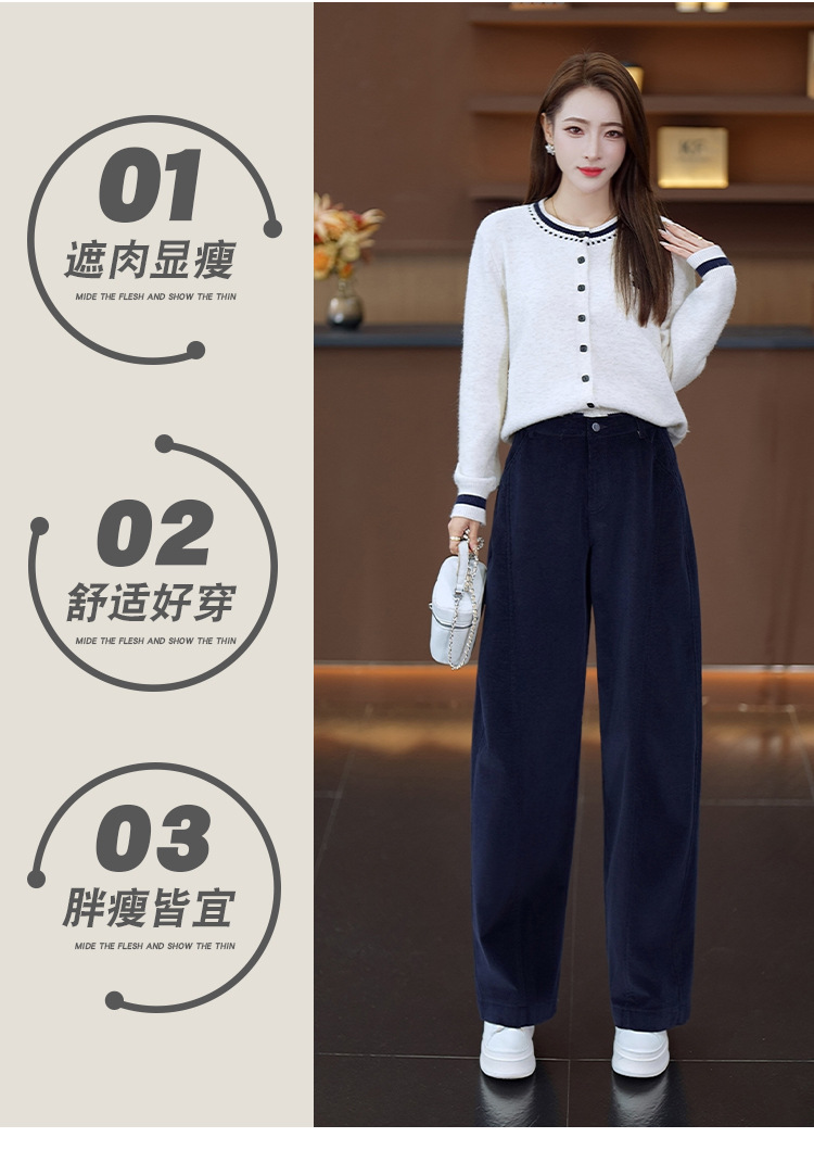 YM 6625-75灯芯绒加绒保暖阔腿休闲裤气质优雅高腰显瘦镰刀裤 商品图2