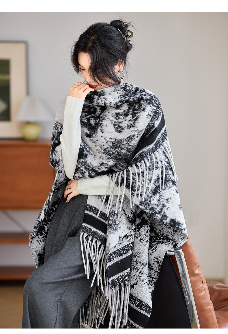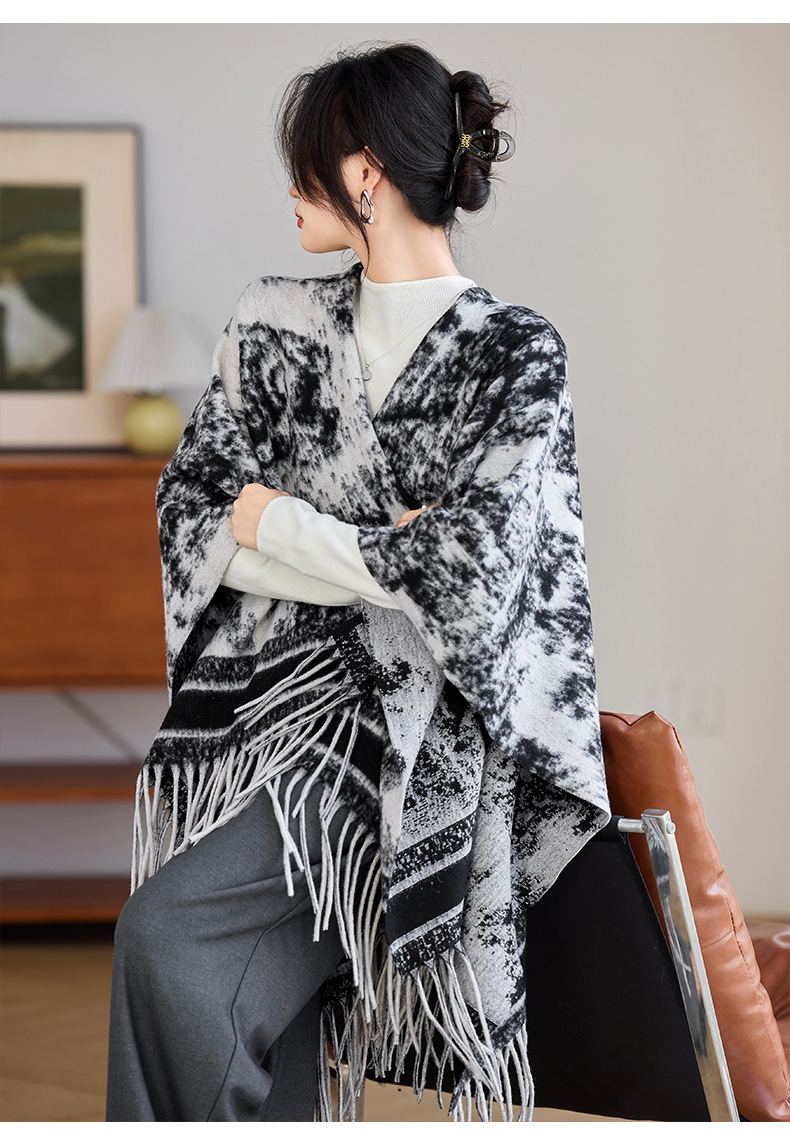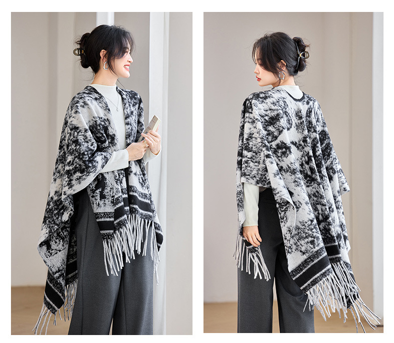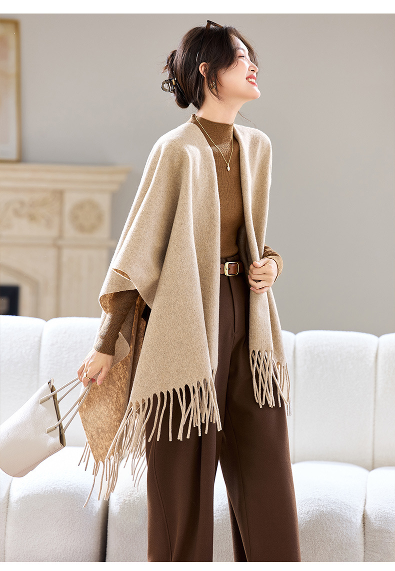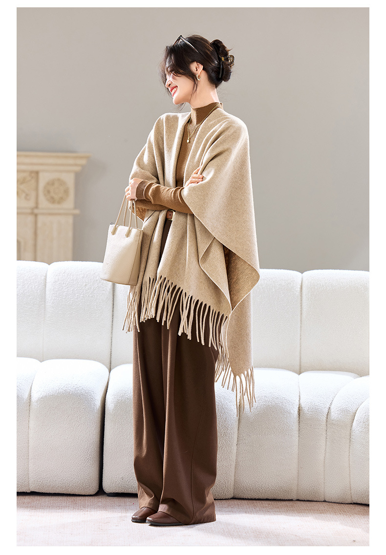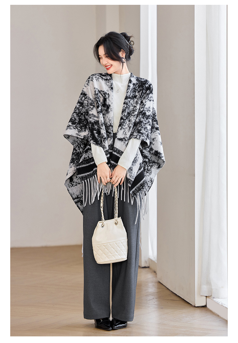 CC 314慵懒风流苏披肩斗篷宽松搭针织开衫外套