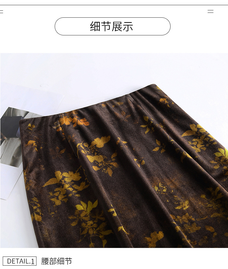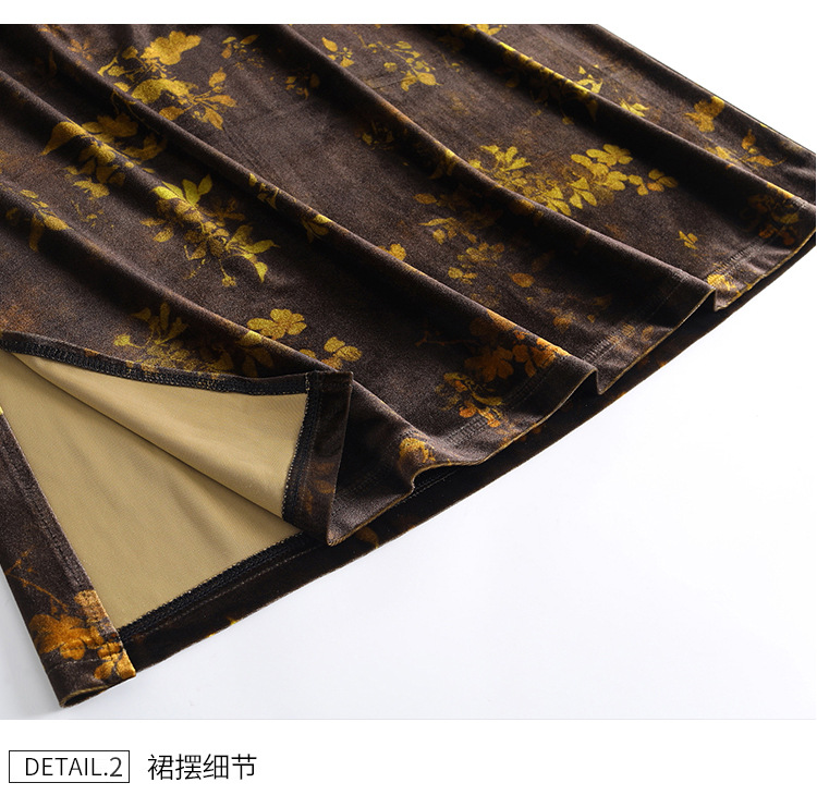 QYM  760-Y金丝绒半身裙印花包臀裙气质复古开衩一步裙 商品图3