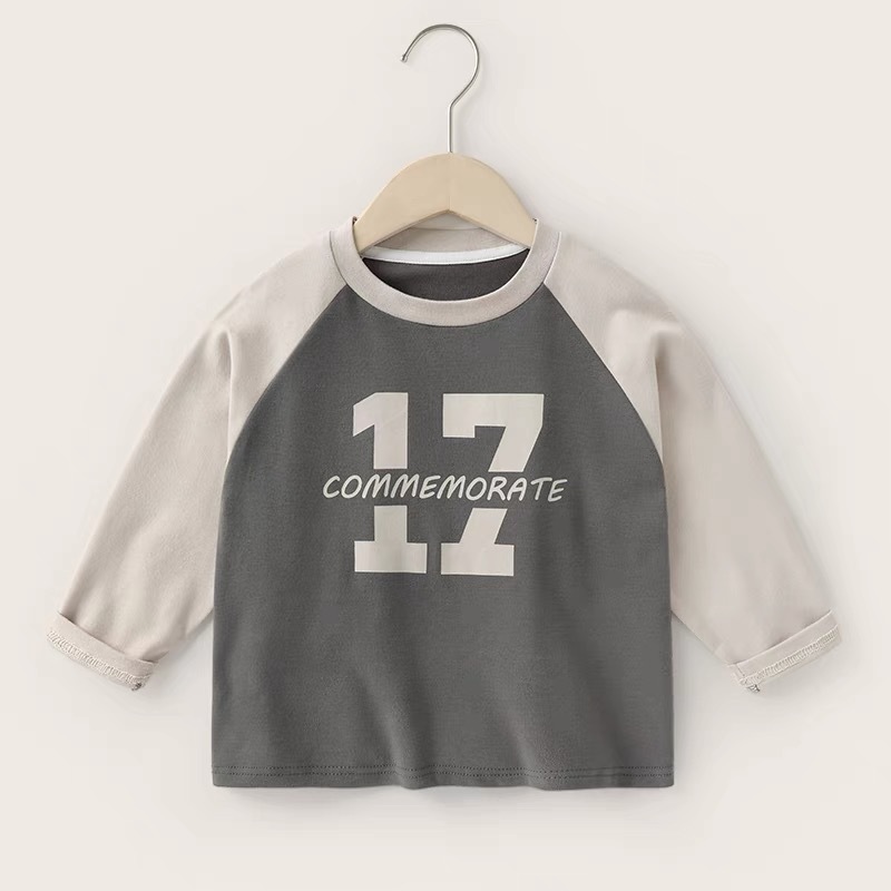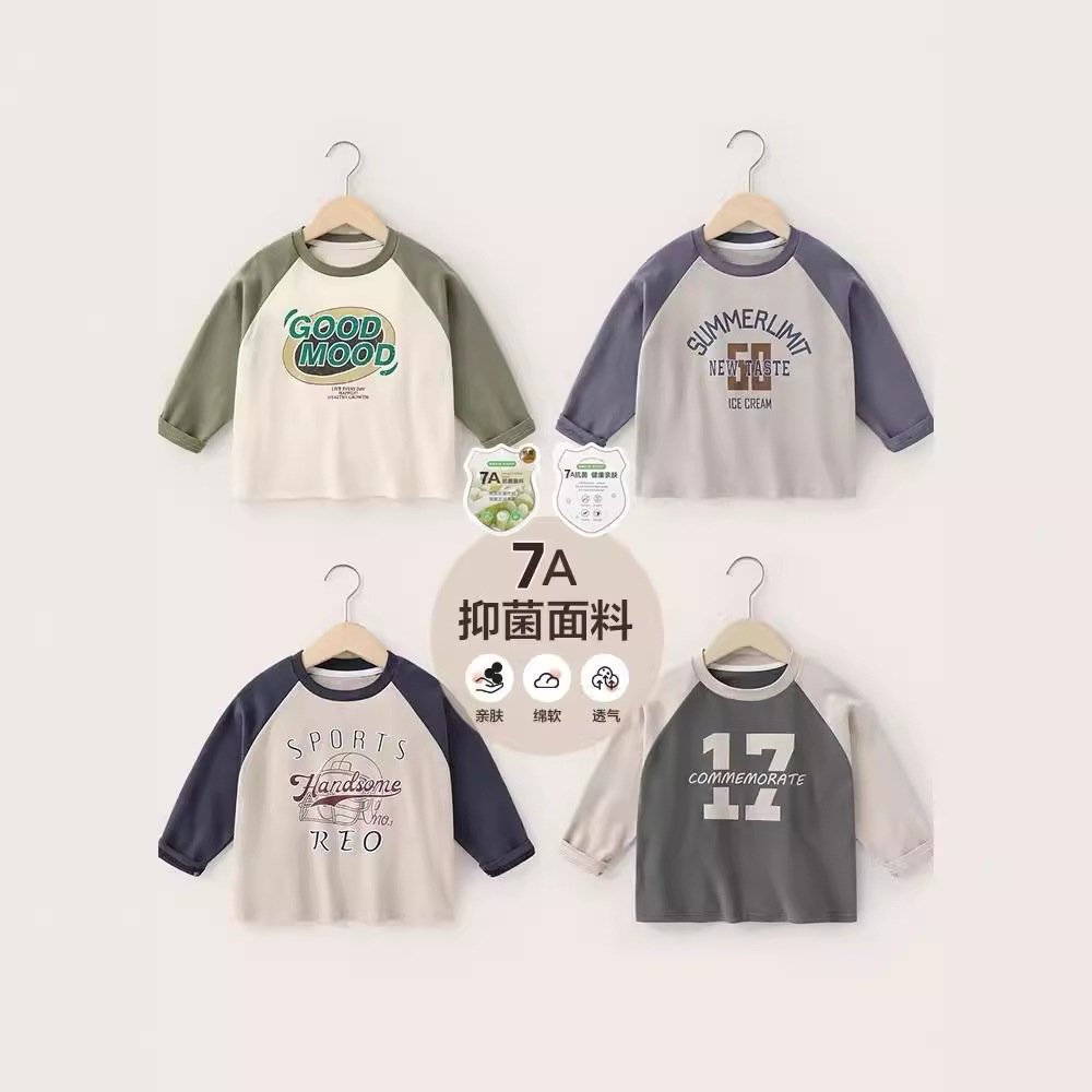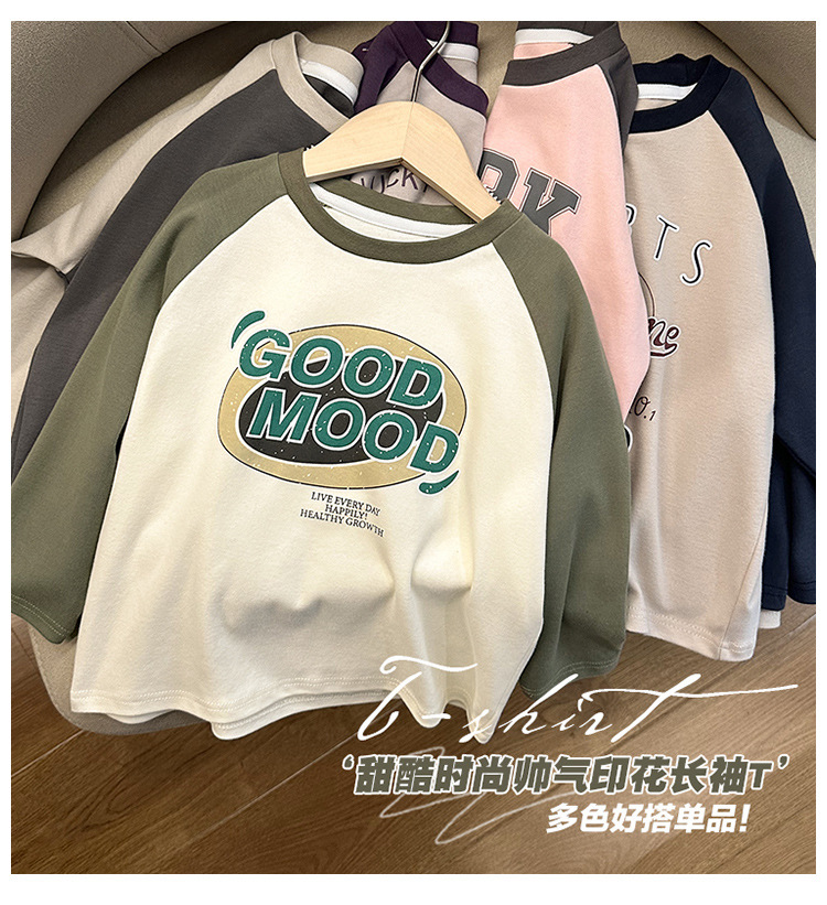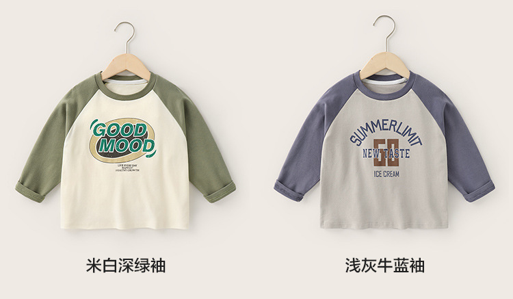【印花插肩设计,时尚百搭】儿童韩版印花插肩长袖T恤 春秋新款 童装卫衣 男女童圆领打底衫上衣-QQ