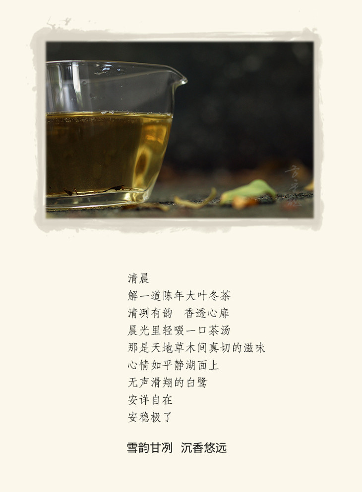 - 2021年,嘉木会创办了“藏茶密室”,开启了全新的藏茶模式,秉持“不将就,不迎合”的理念,通过“选、藏、养、醒”的方式,再度诠释藏茶的深意,沉醉杯汤,苦乐自知,茗透于心,迷之不悔!