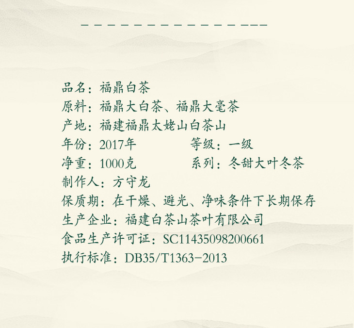 方守龙白茶| 2017年冬甜大叶冬茶收藏装75克|福鼎白茶自然农法