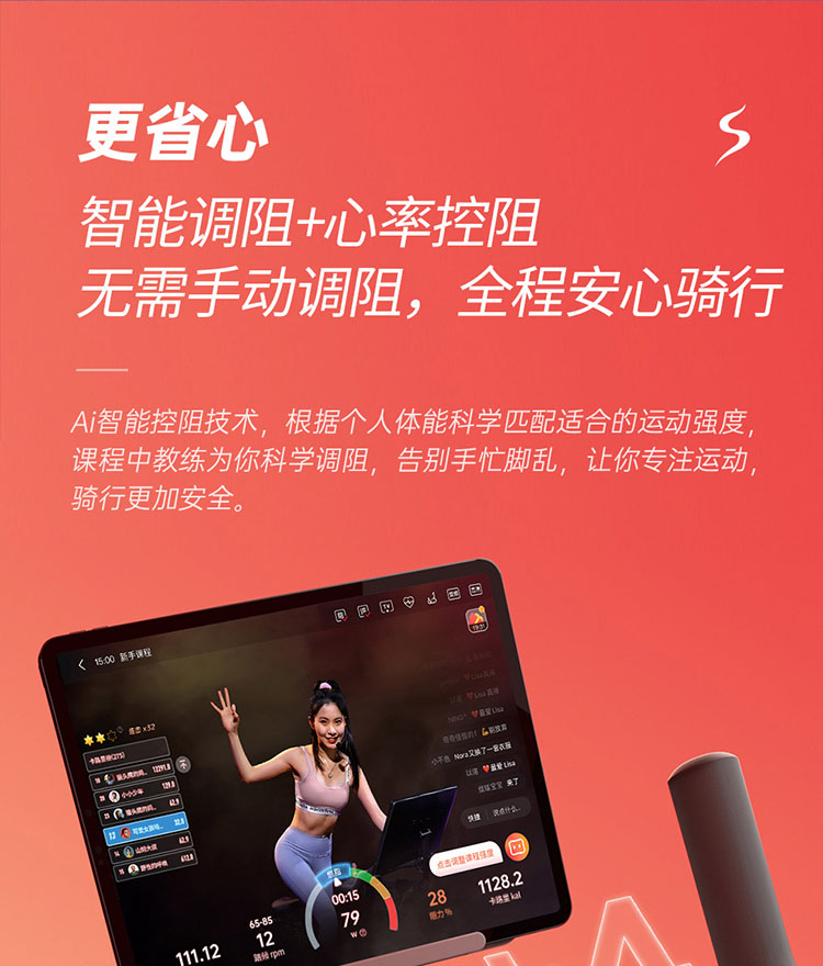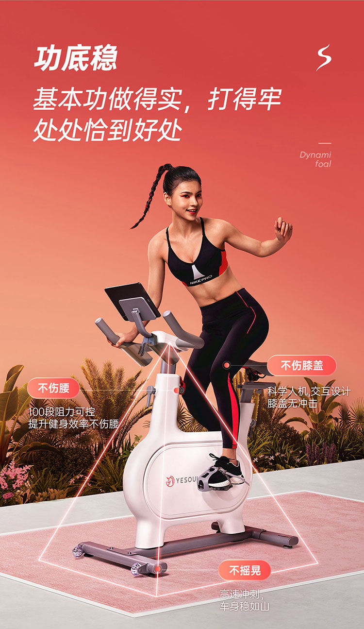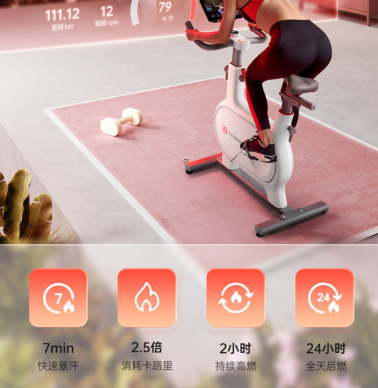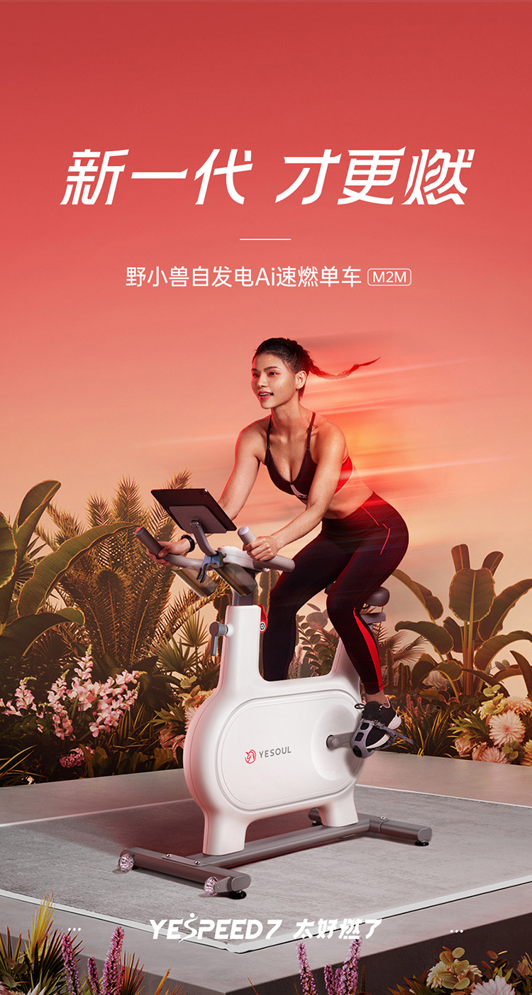 YP YESOUL野小兽智能动感单车M2M*1台,随机赠送:黑蓝色/黑红色手柄钢丝跳绳)*1根