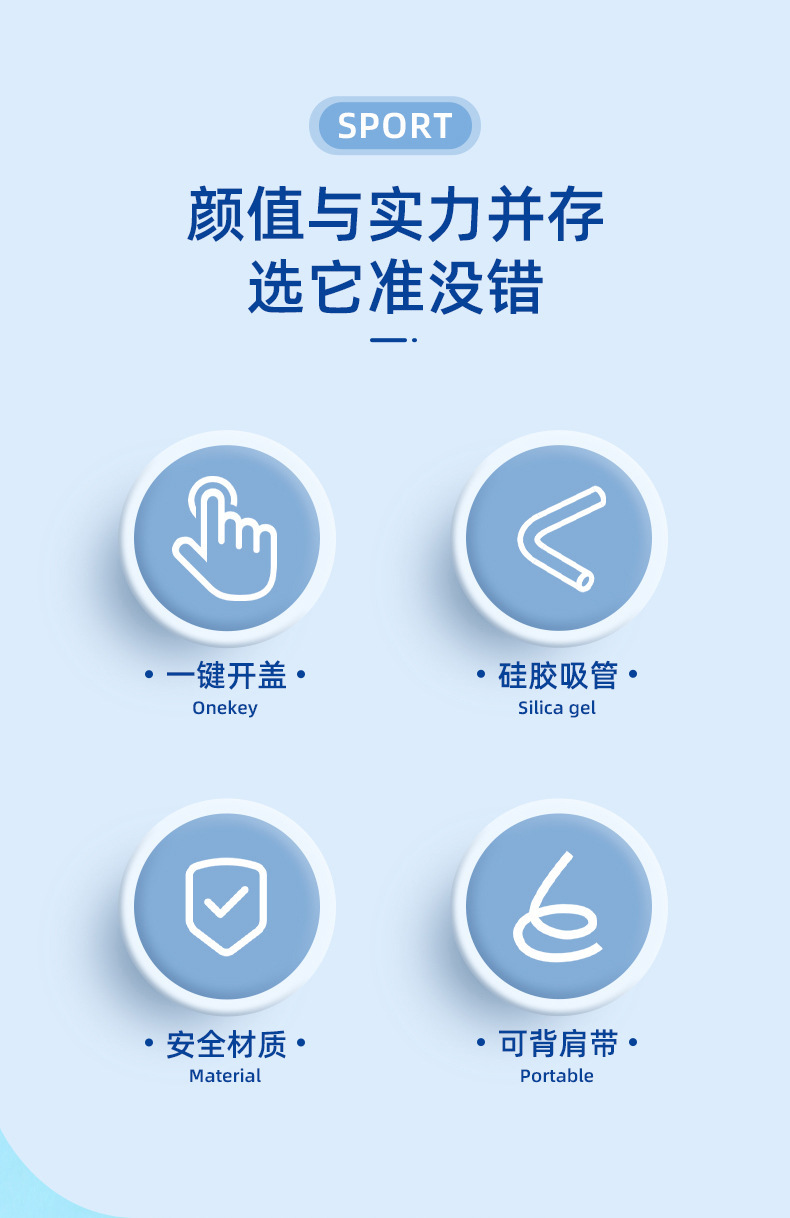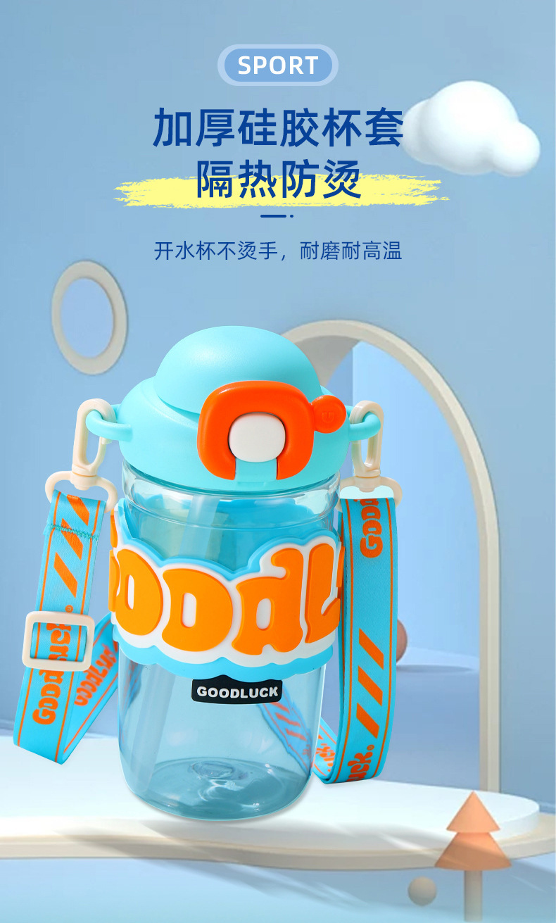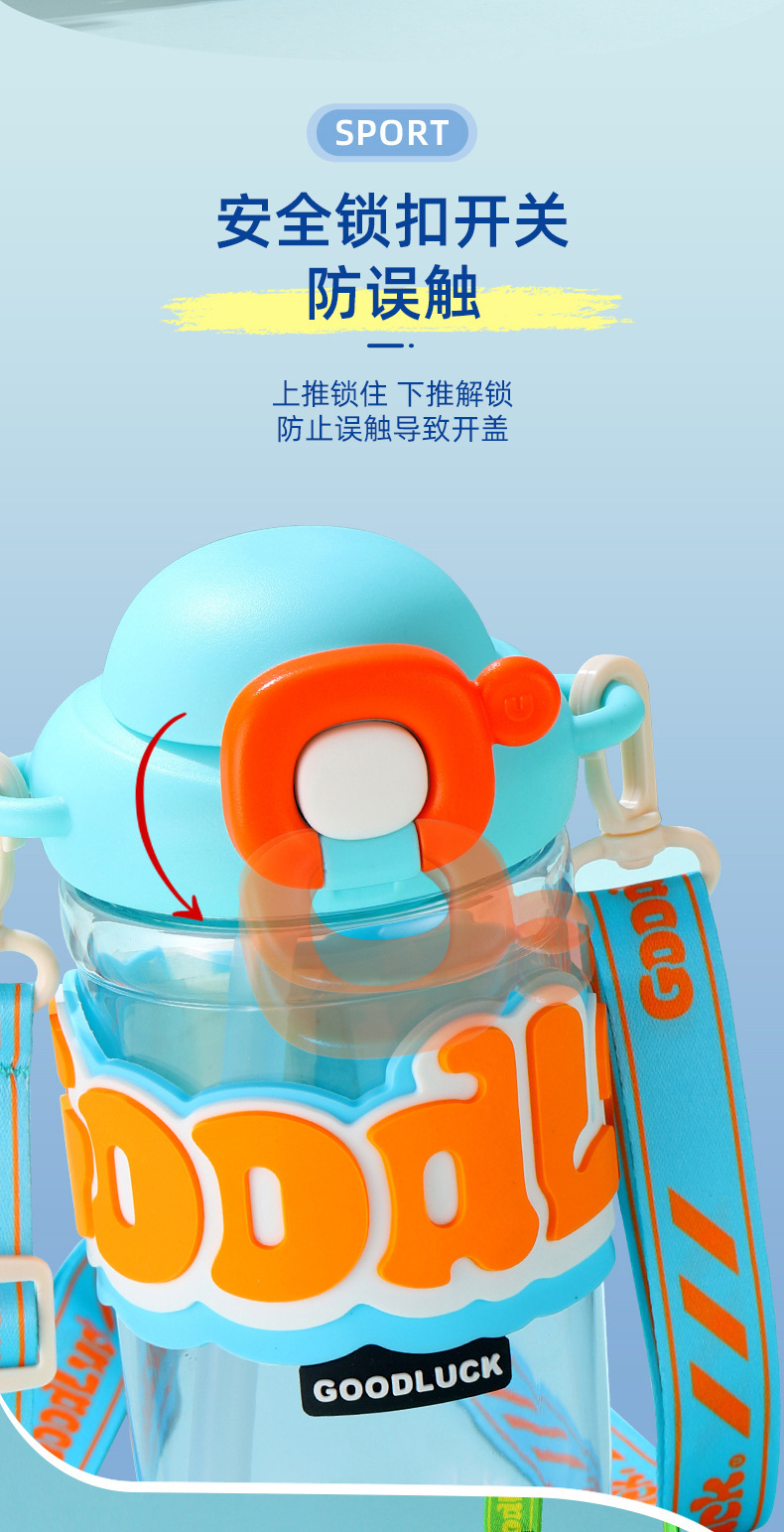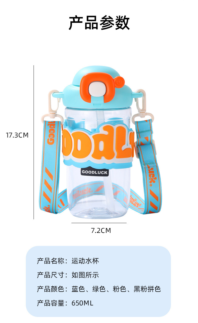 【新潮运动,随手杯 !】新款随手杯夏季大容量塑料水杯,便携高颜值背带儿童带吸管水杯,一键弹盖 方便快捷食用级硅胶吸管 饮用放心-QQ