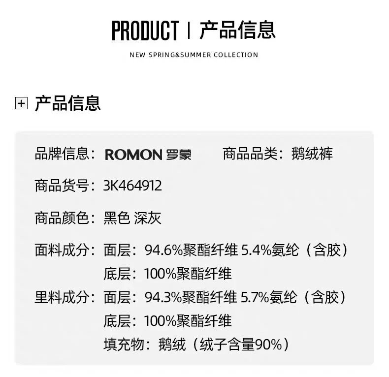 罗蒙男士鹅绒裤,两个经典百搭的基础颜色任选!外挡风/内蓄热双重保暖,真的太蓬松了!