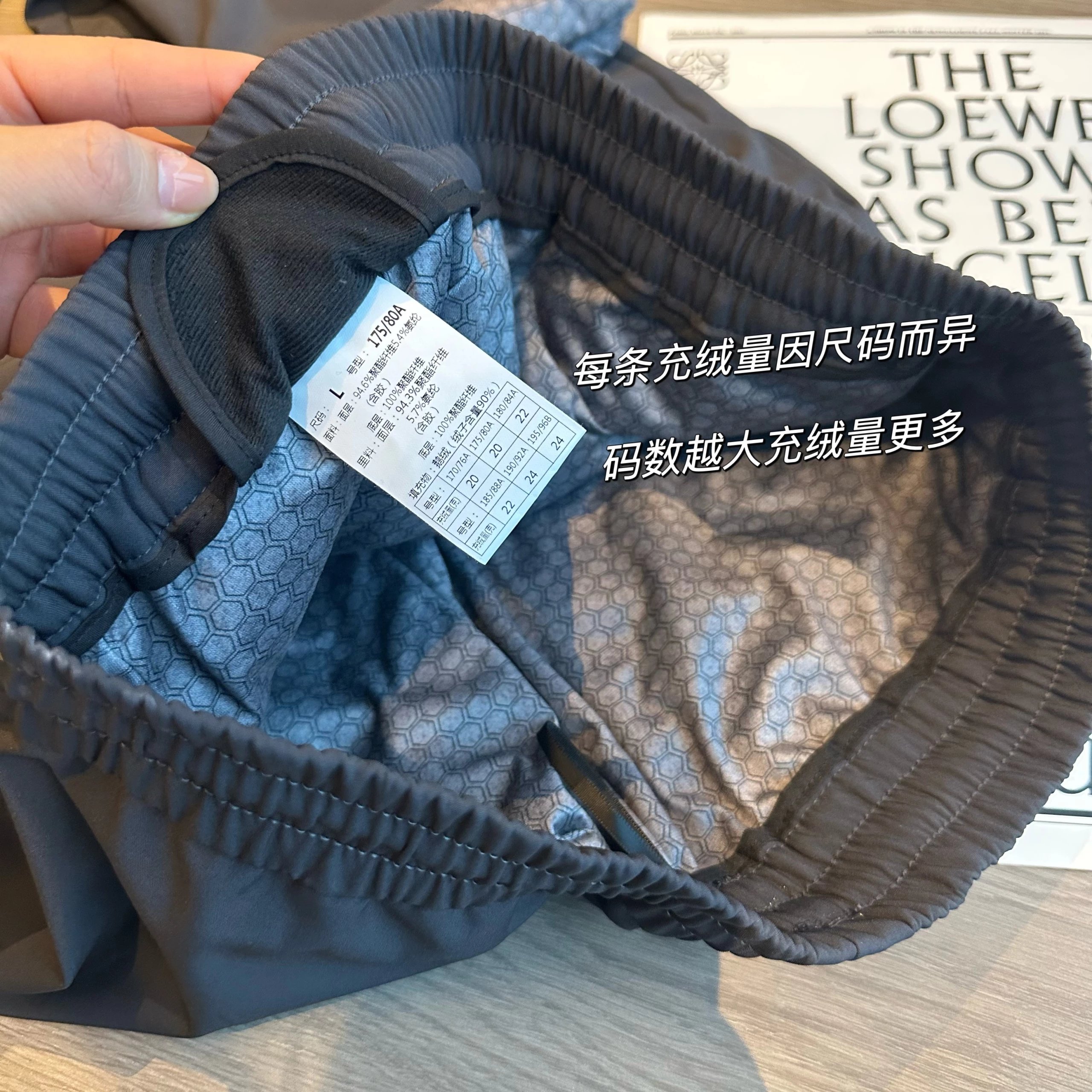 因尺码大小而异,每条裤子的充绒量各有不同,码越大充容量越多!