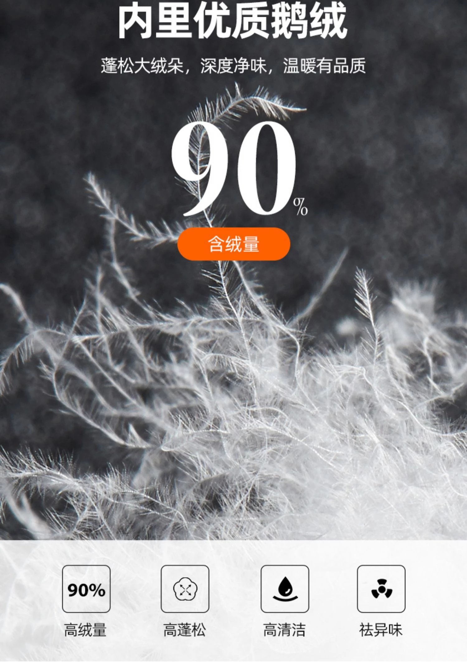 内里填充90大朵鹅绒,高蓬松|蓄热保暖!