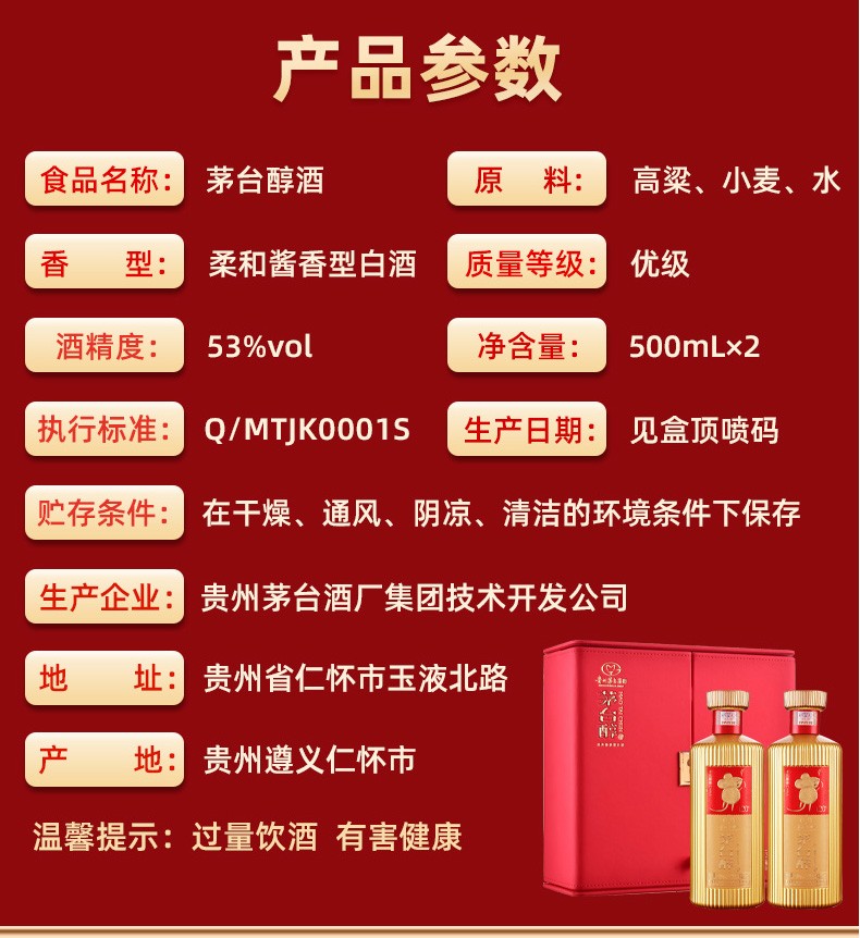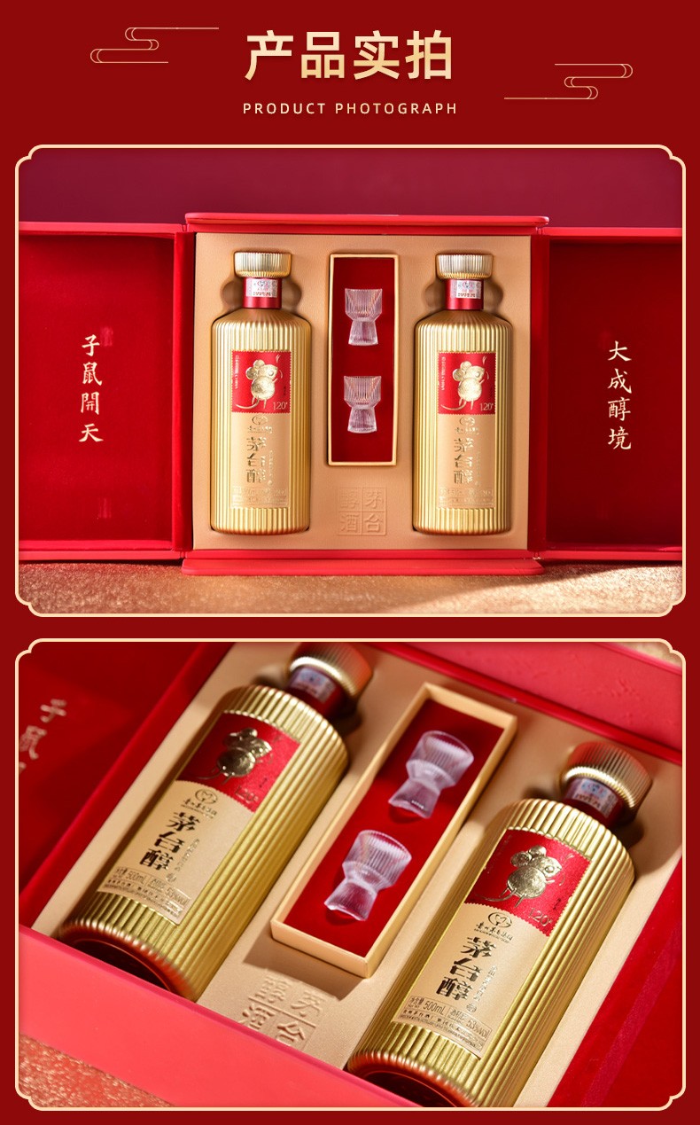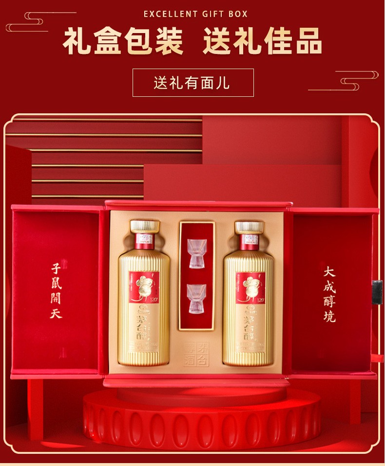 【推荐】茅台集团 茅台醇鼠年纪念(礼盒) 酱香型 53度 500ml双瓶+茅台集团 茅台醇鼠年纪念 酱香型 53度 500ml单瓶组合装