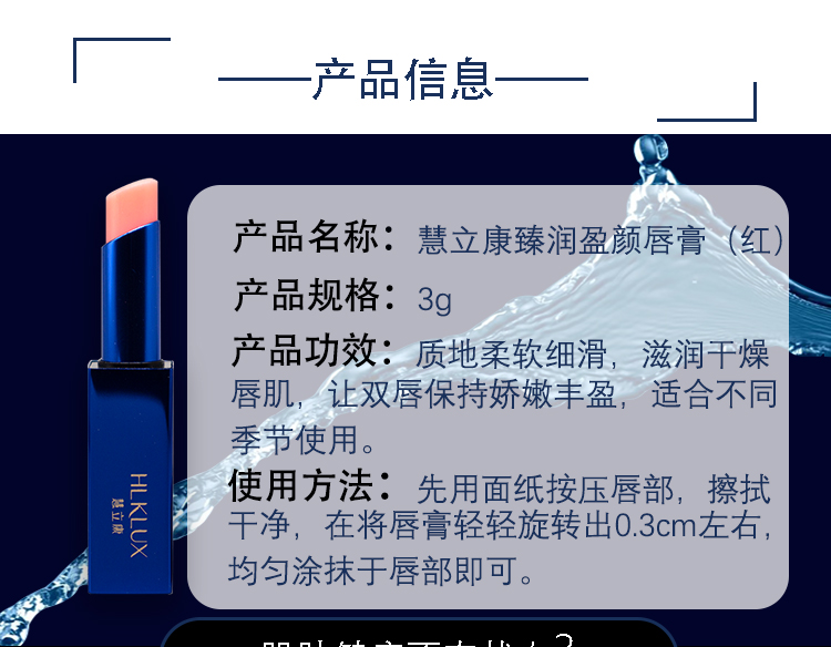 慧立康臻润盈颜唇膏(无色 红色)3g美容院正品包邮滋润修护双唇