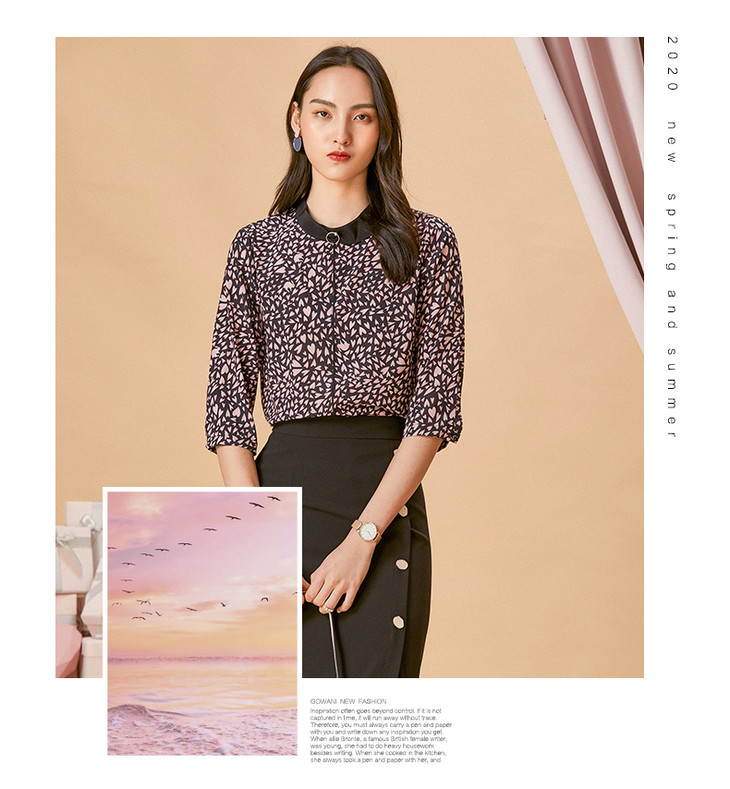 乔万尼春季时尚撞色小立领浪漫印花衬衫ES1C022