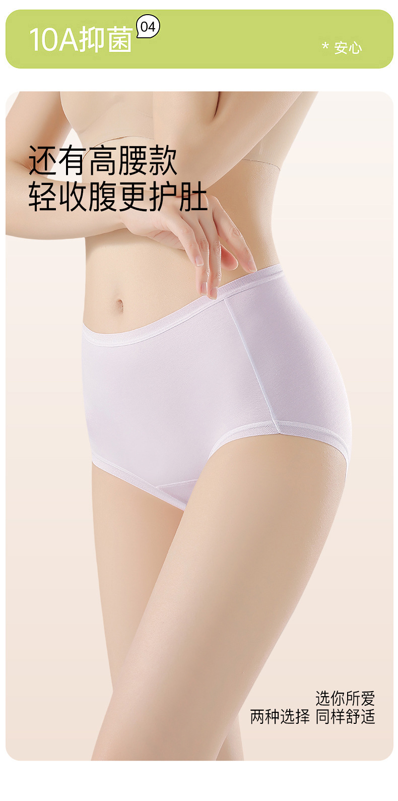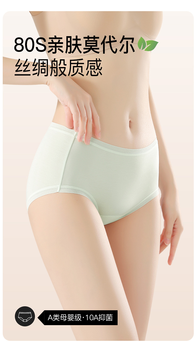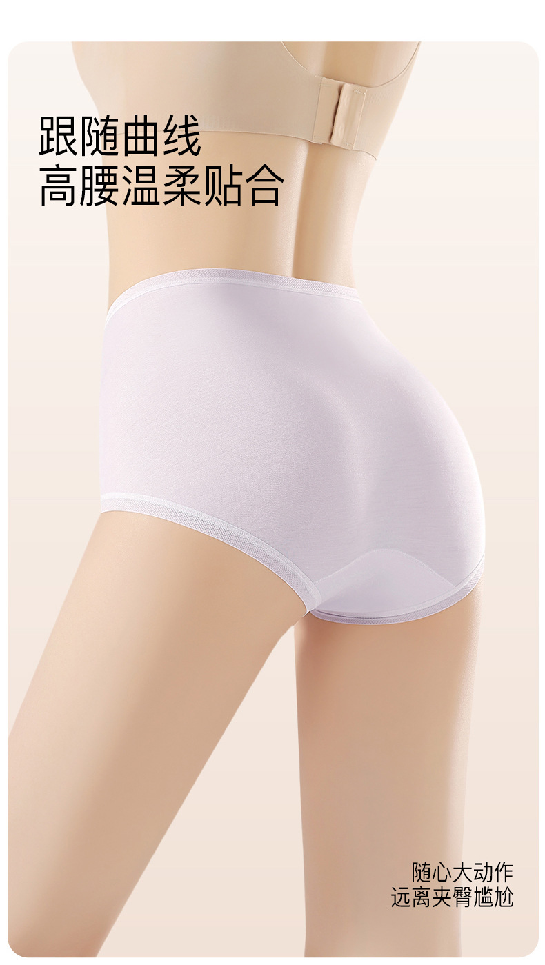 雀说 【4条】80支莫代尔高腰内裤女10A抑菌纯棉加长裆H102