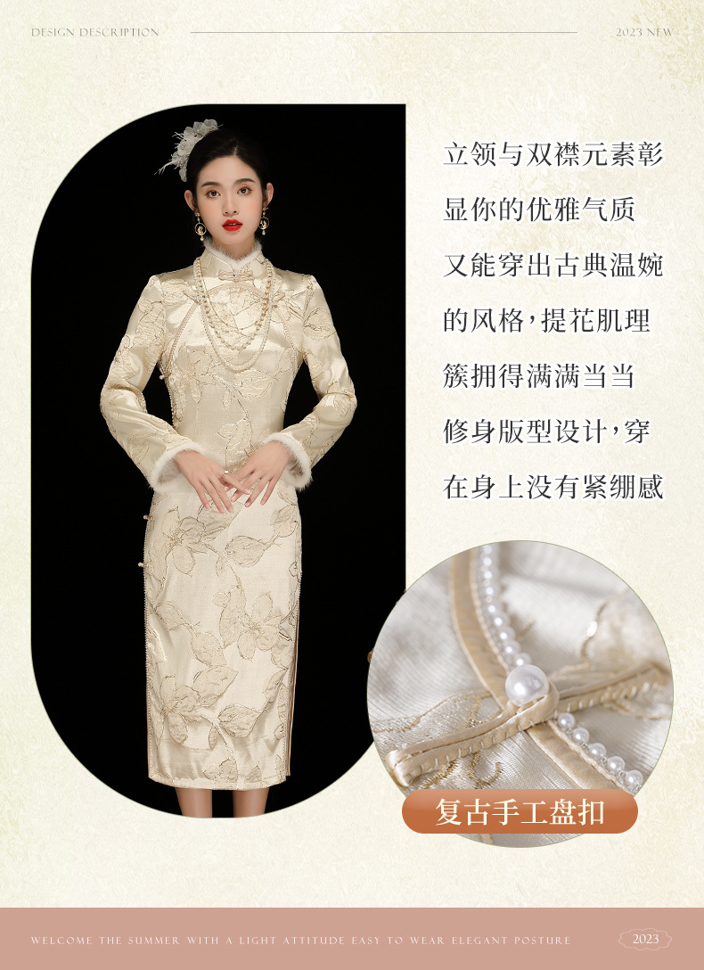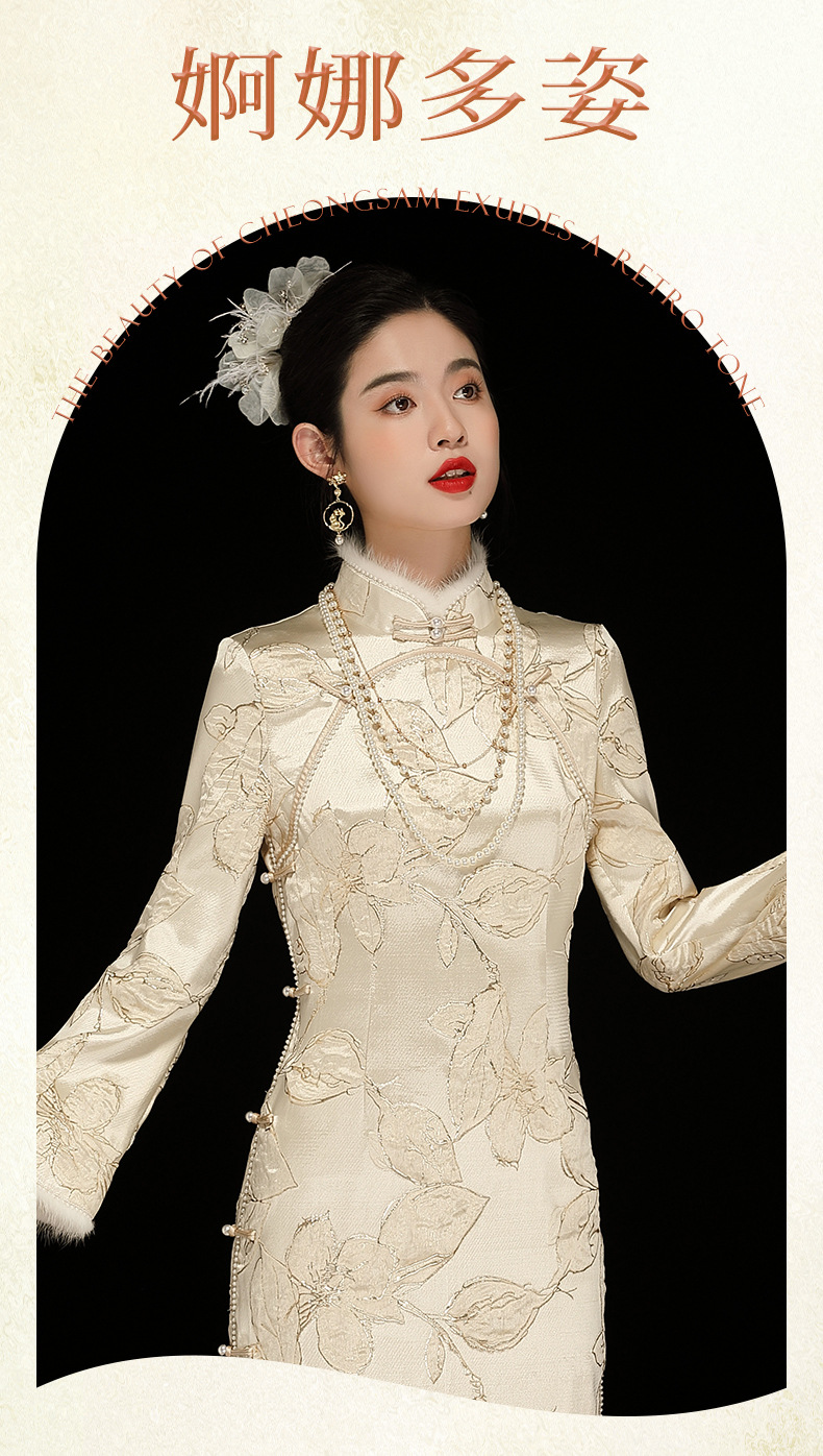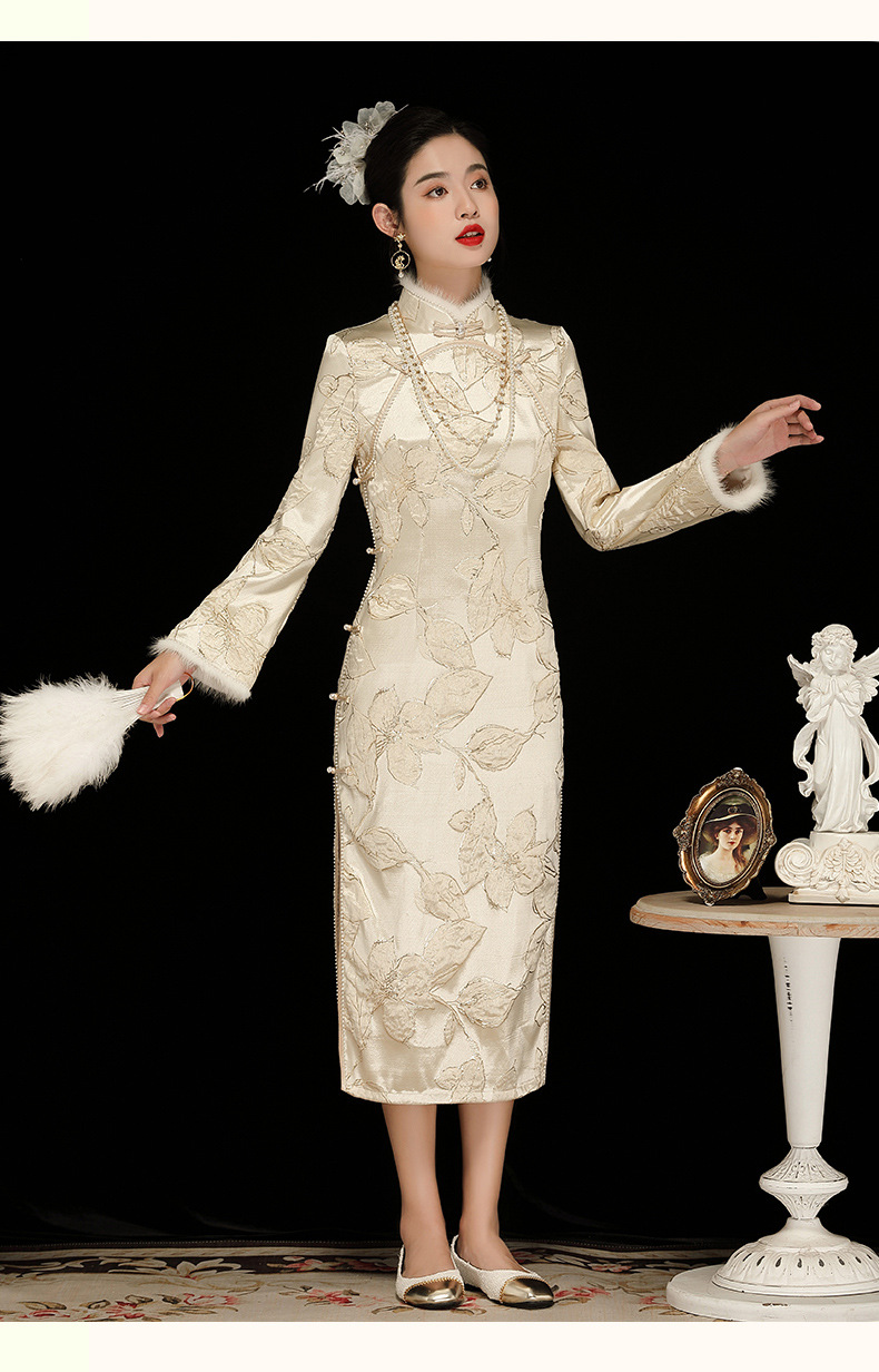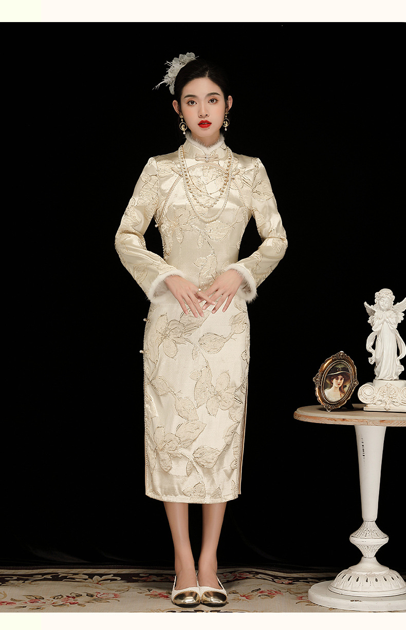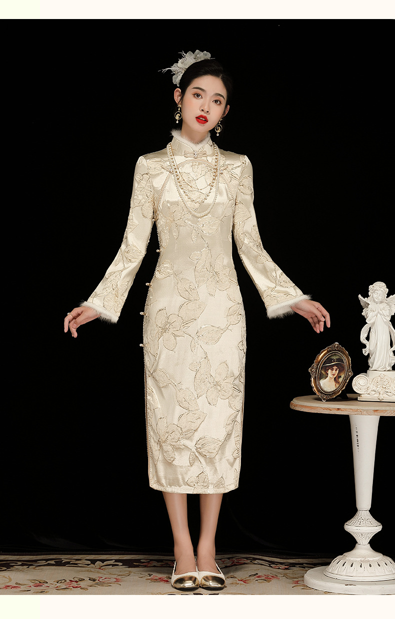 中国风复古提花长袖,日常改良旗袍连衣裙OY-230379
