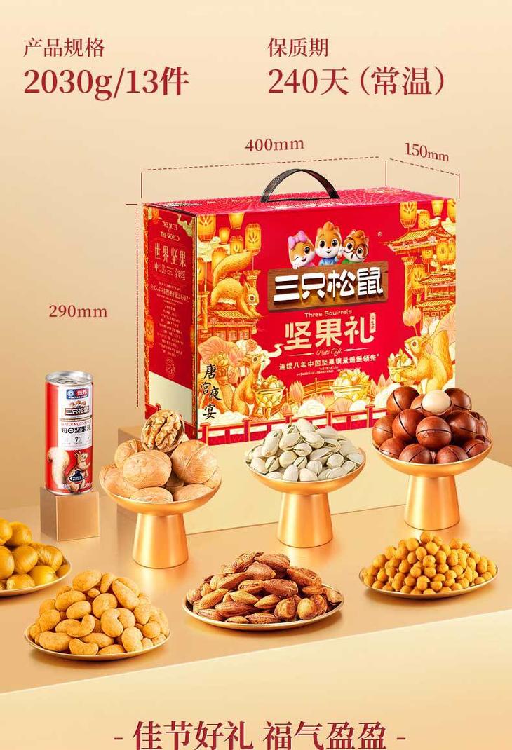 【三只松鼠_瑞红坚果大礼包13袋2030g】 坚果礼盒零食送礼