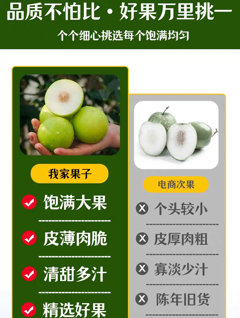 3、个别果子因为自然生长采摘,所以表皮可能会有果斑,不影响食用,介意勿拍。