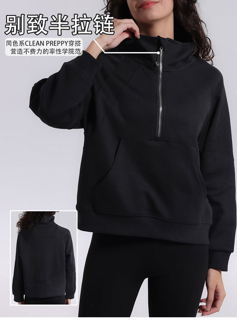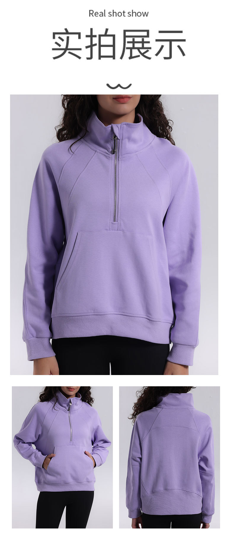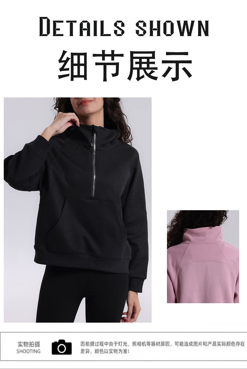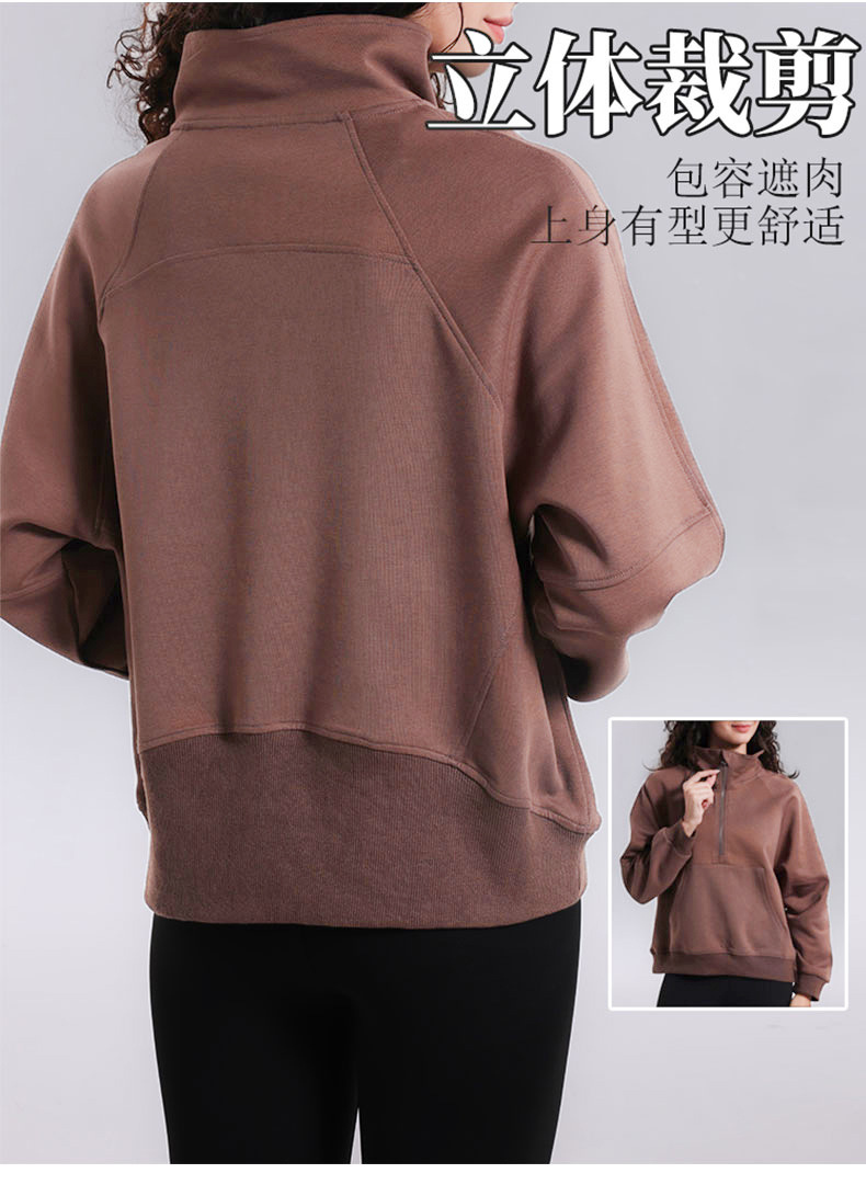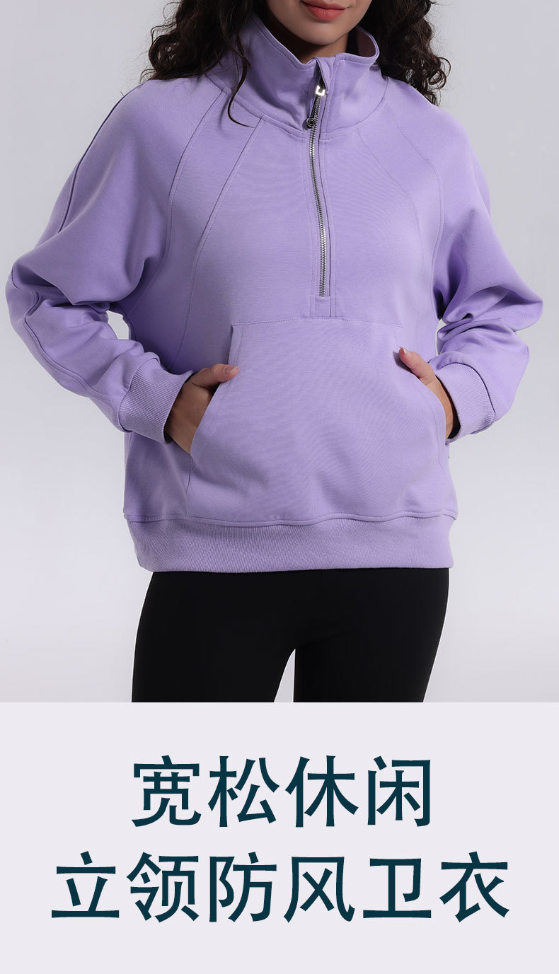 跃牌【美西西系列】卫衣scuba半拉链外套lulu同款宽松高领运动显瘦休闲上衣女WY-02