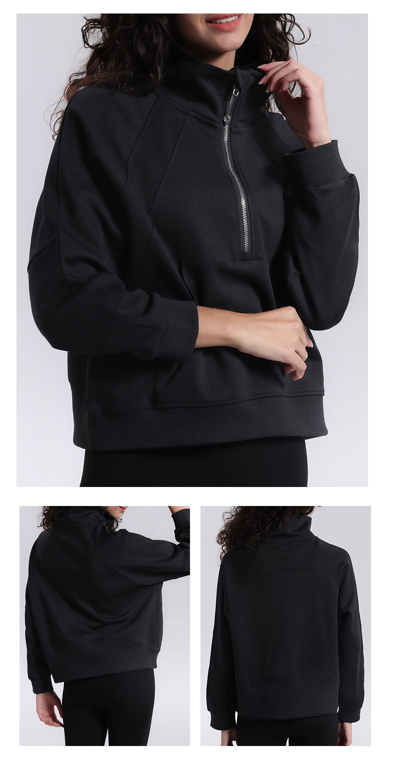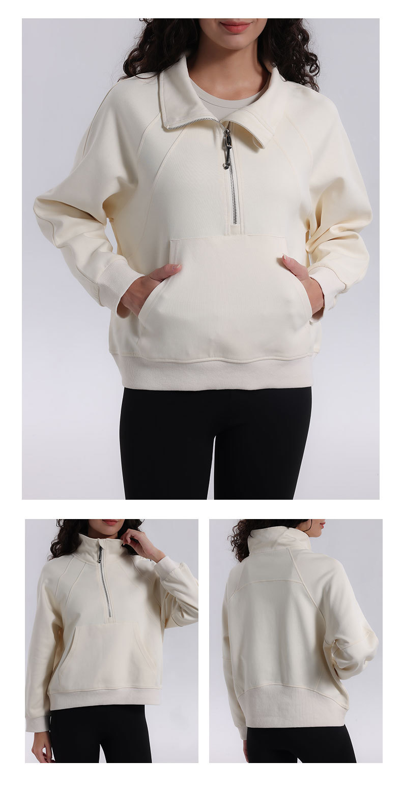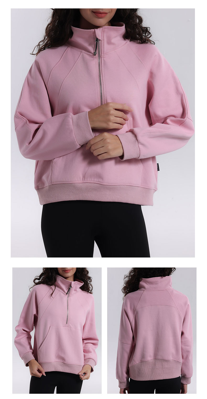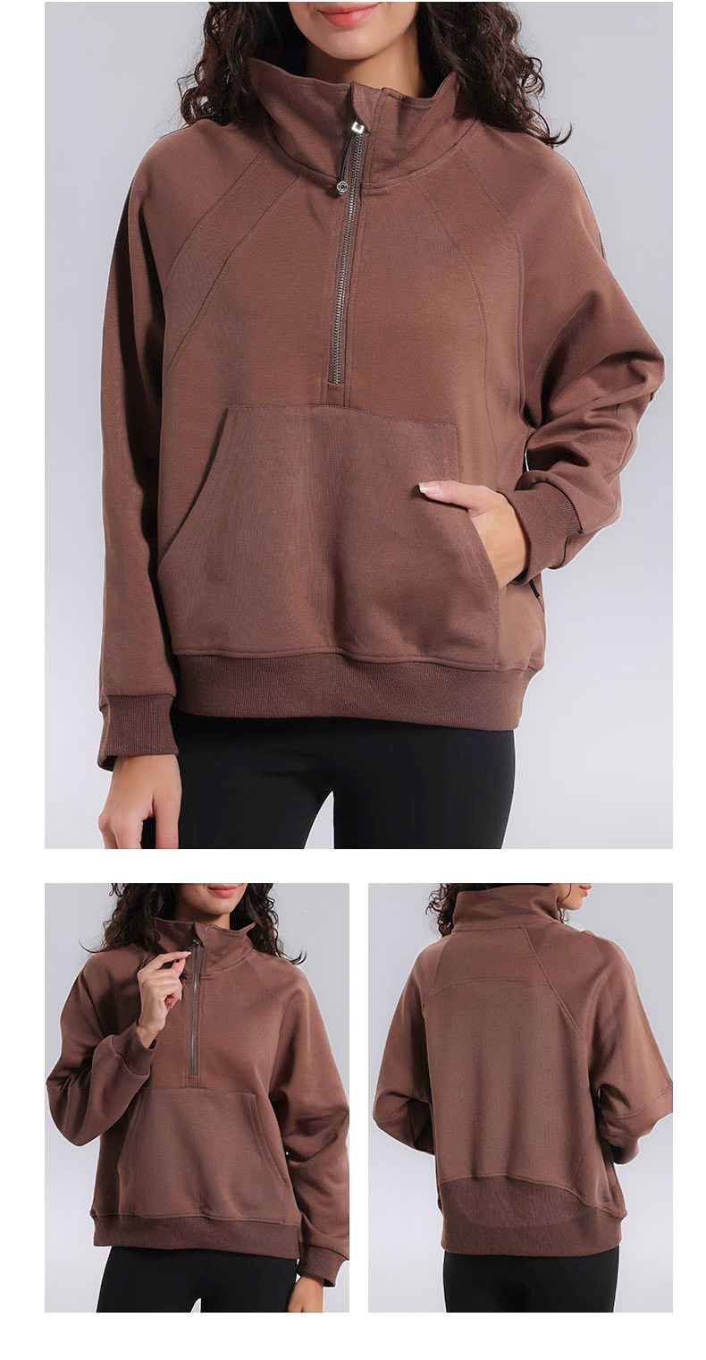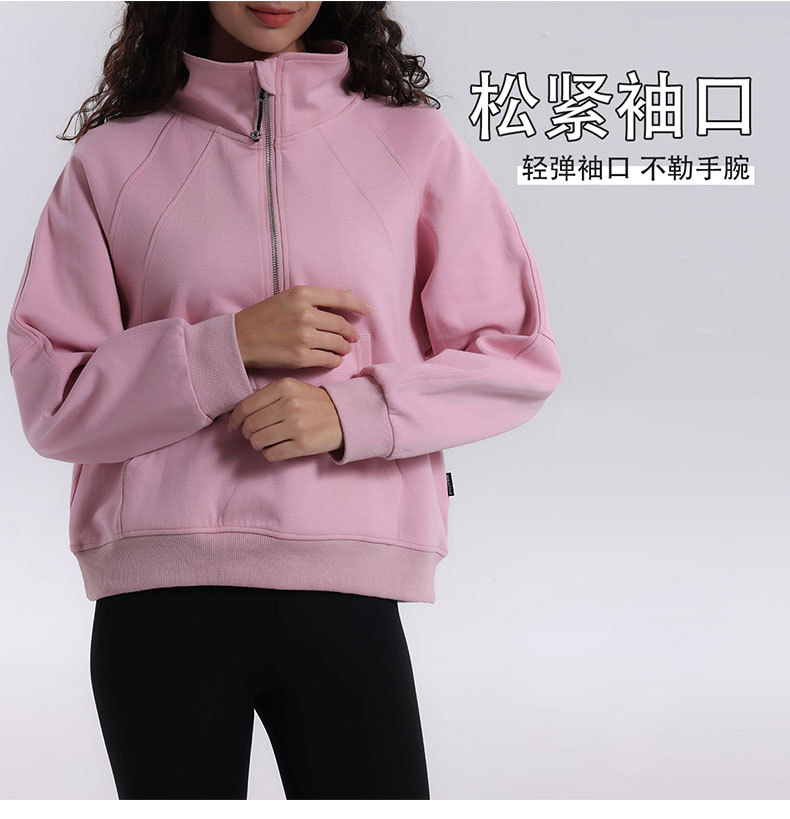 跃牌【美西西系列】卫衣scuba半拉链外套lulu同款宽松高领运动显瘦休闲上衣女WY-02