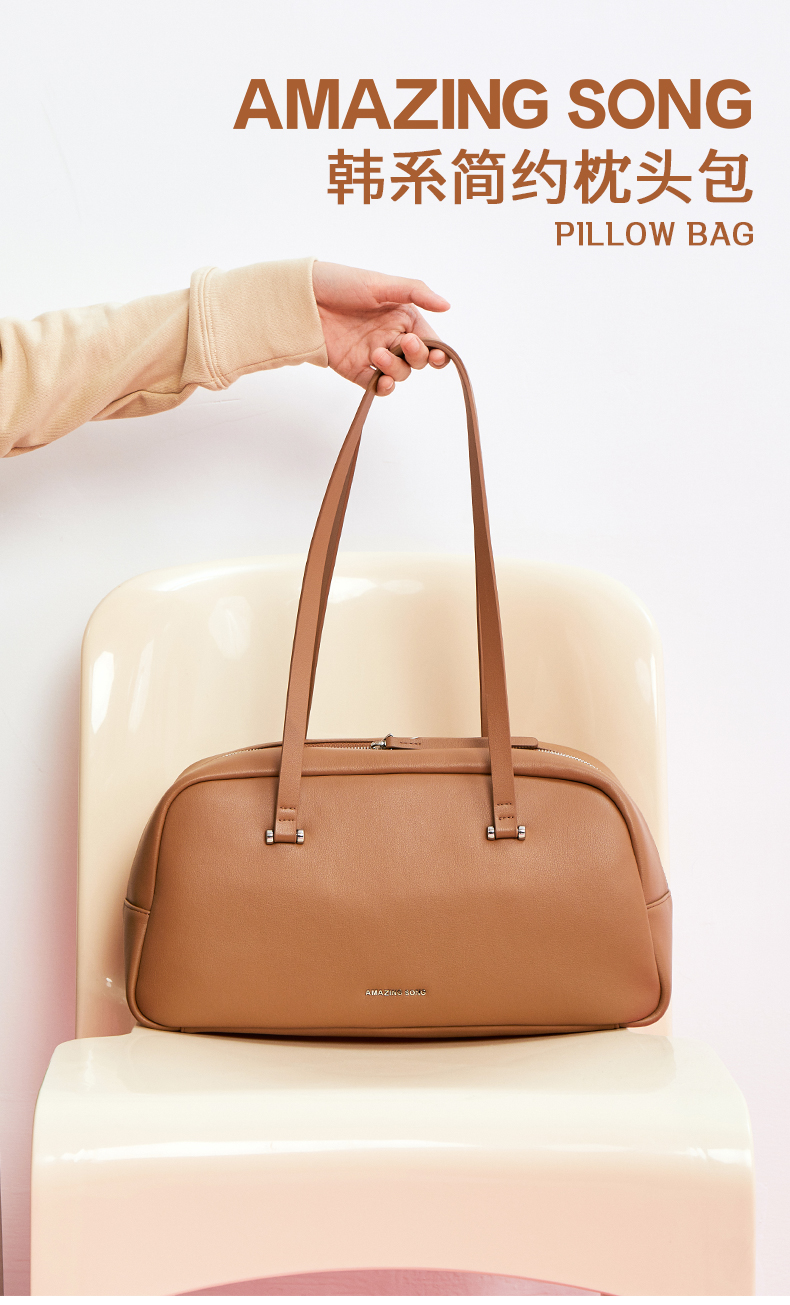 Amazing Song乙颂 枕头包 保龄球新款牛皮大容量单肩棒球包女