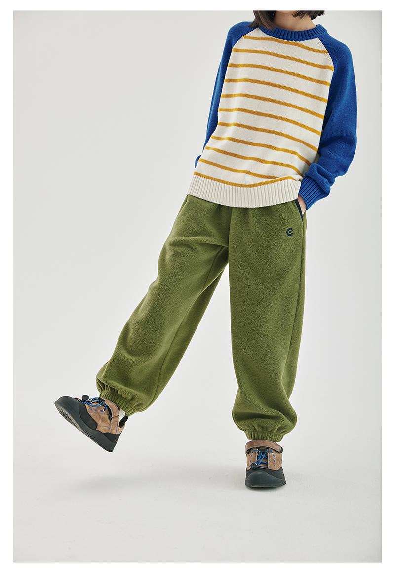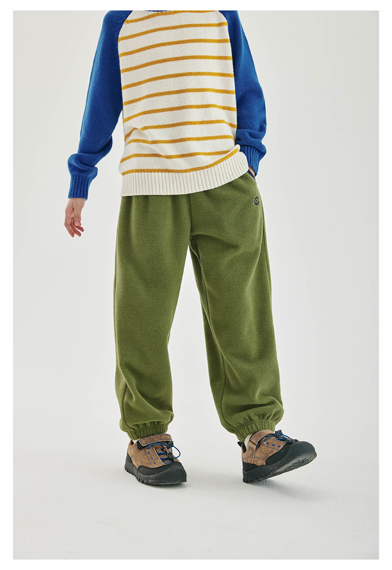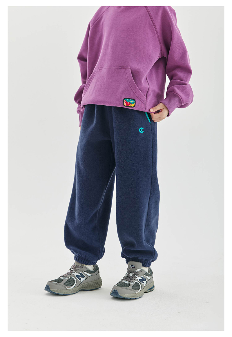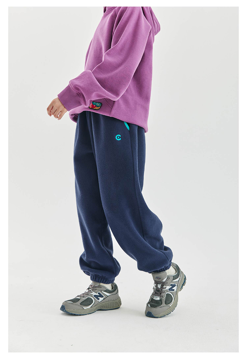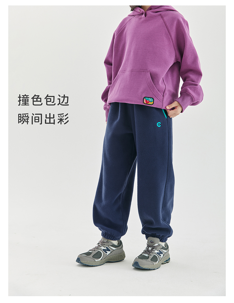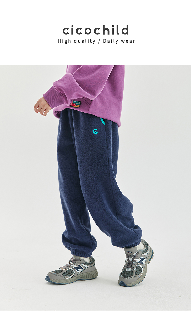 cicochild新款秋冬童装双面摇粒绒长裤亲子装宽松撞色包边裤子