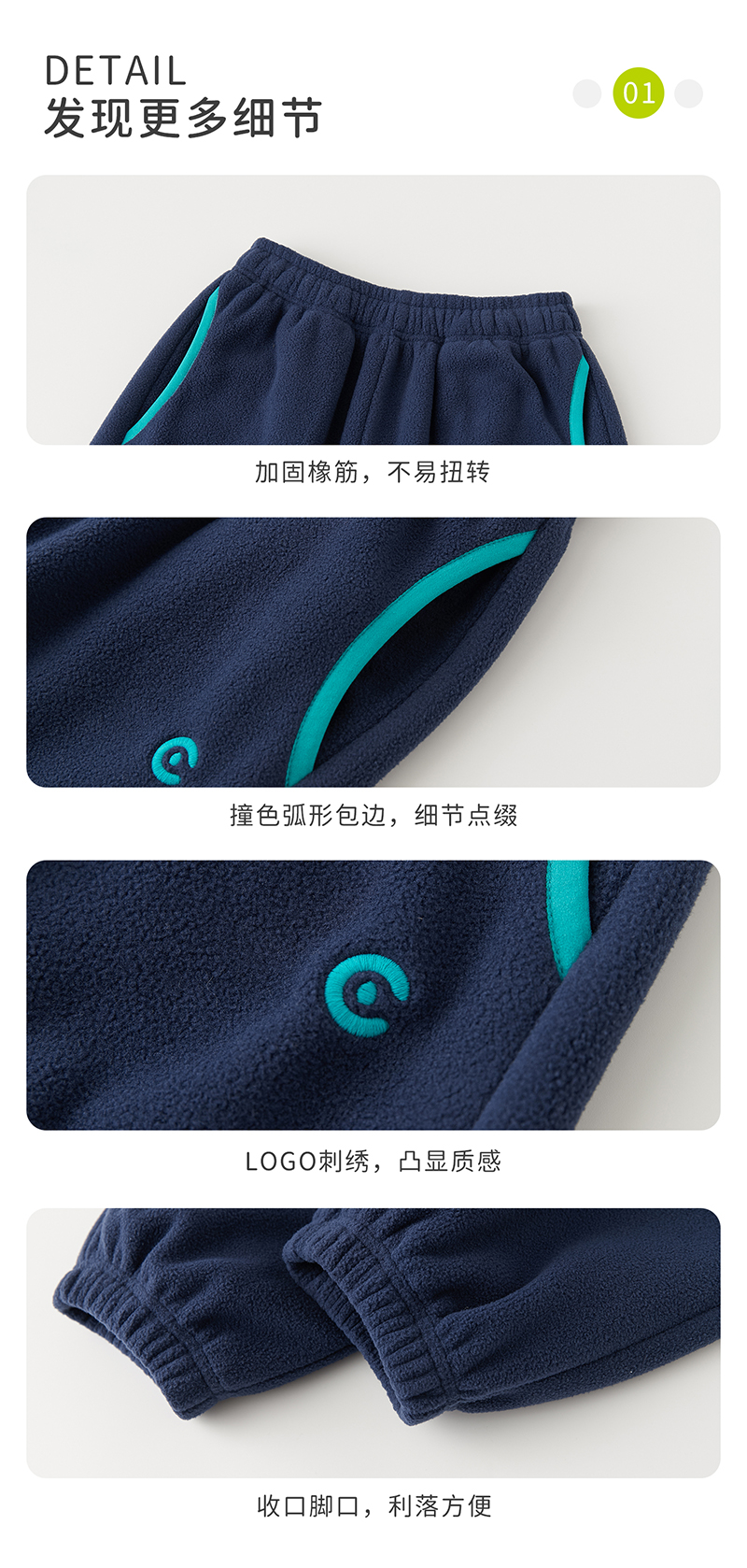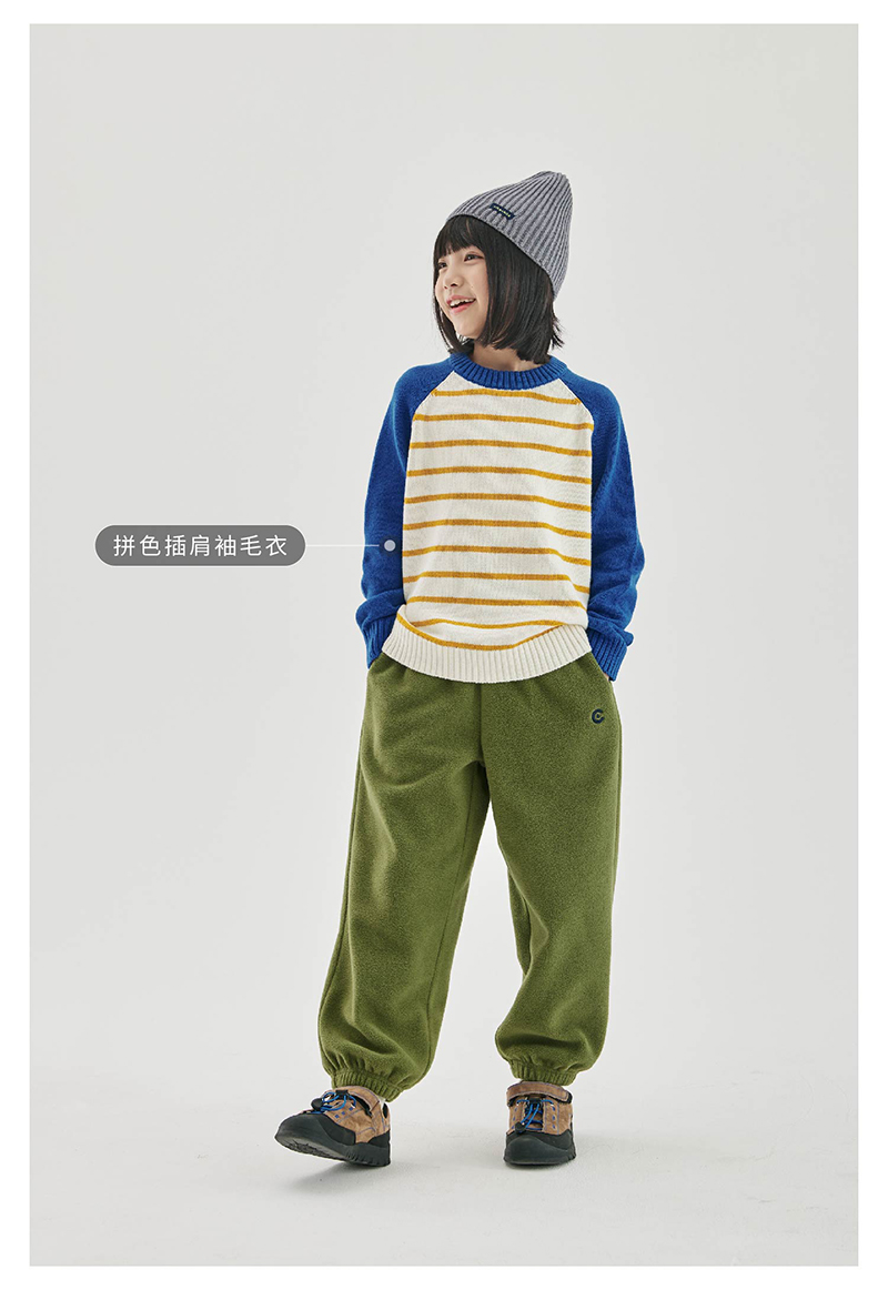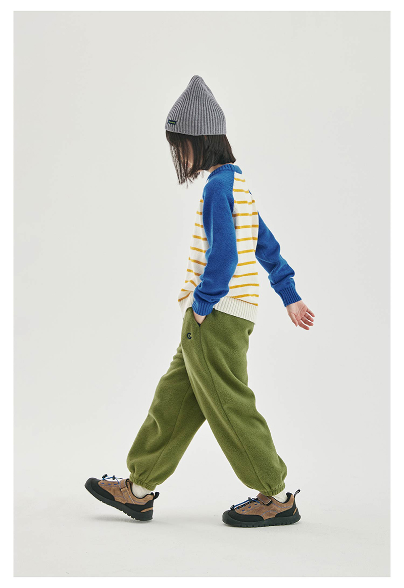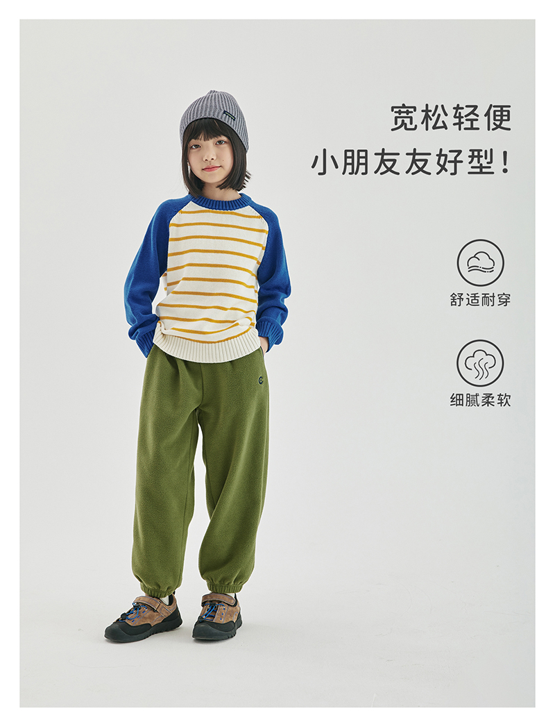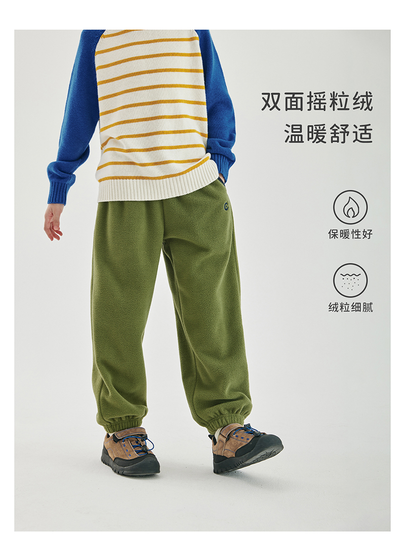 cicochild新款秋冬童装双面摇粒绒长裤亲子装宽松撞色包边裤子