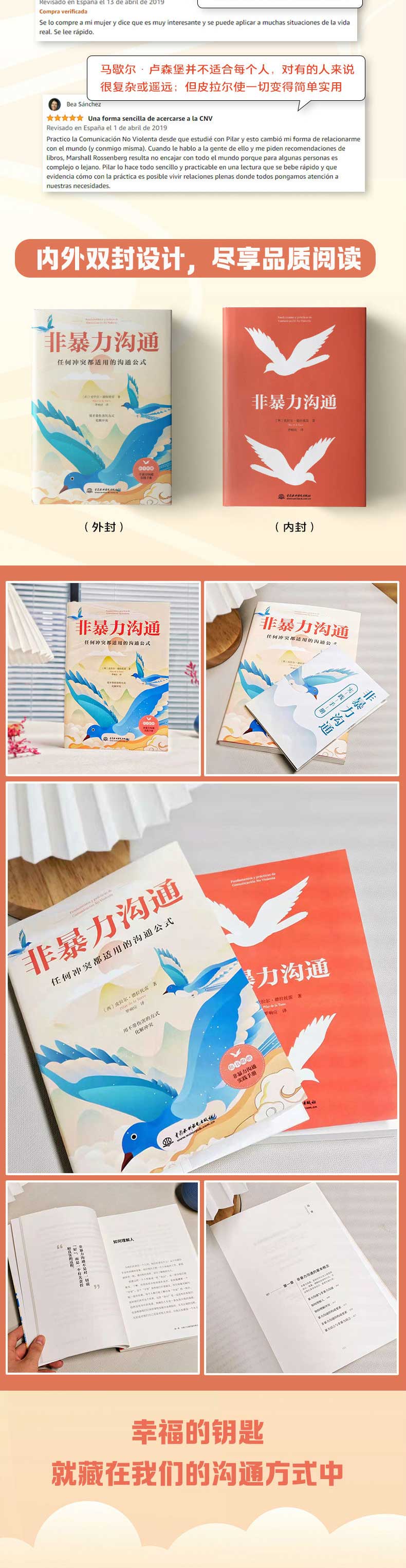 ●治愈人心的封面:封面采用“飞翔的喜鹊”的意向,意在向读者传达出积极的心态、生命能量的流动,这正是非暴力沟通的深度愿景。