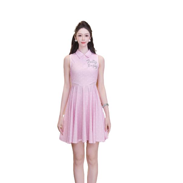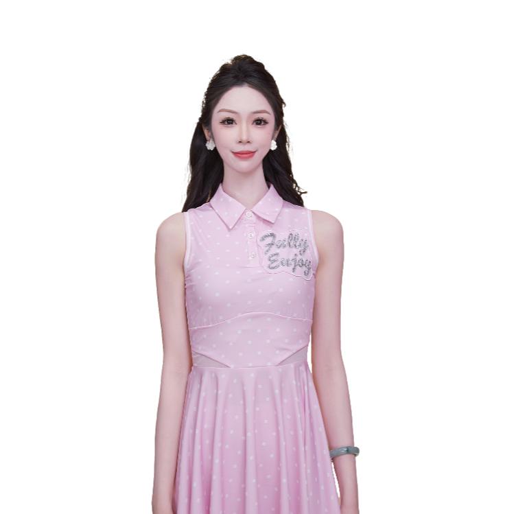MAXRIENY2025年新款防晒连衣裙显瘦高腰运动无袖裙子印花钉珠短裙(货号:MF86DR012)