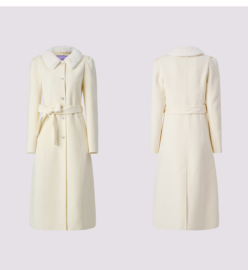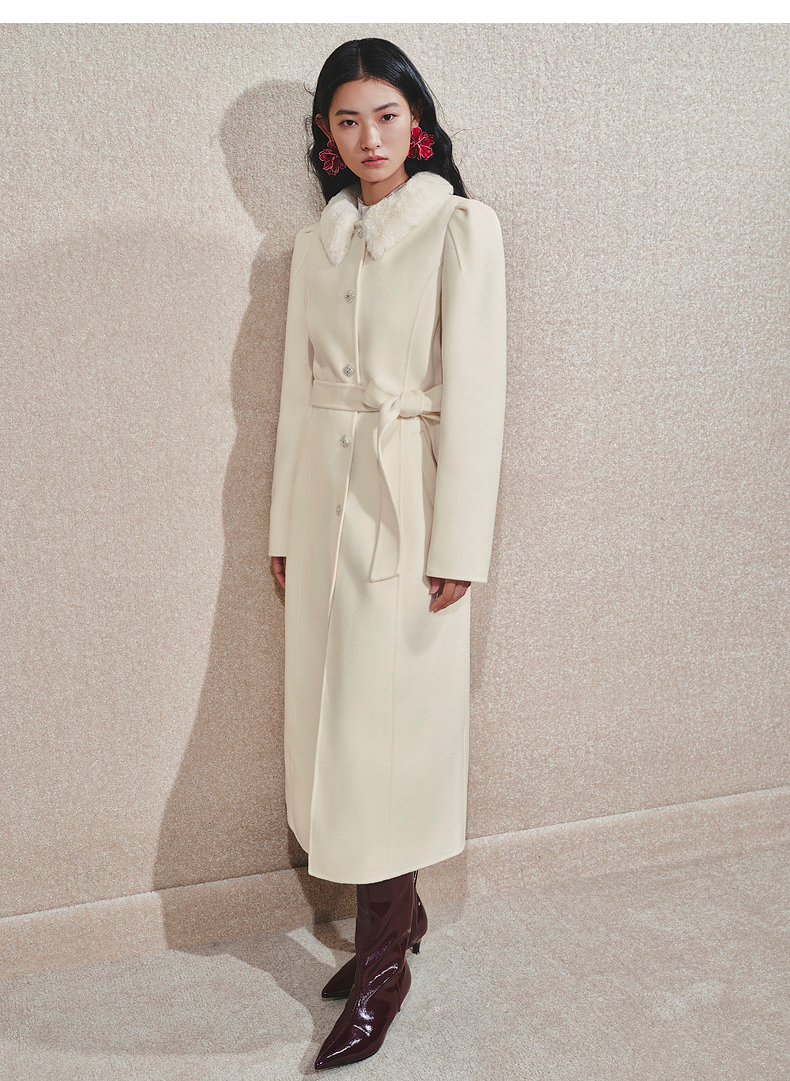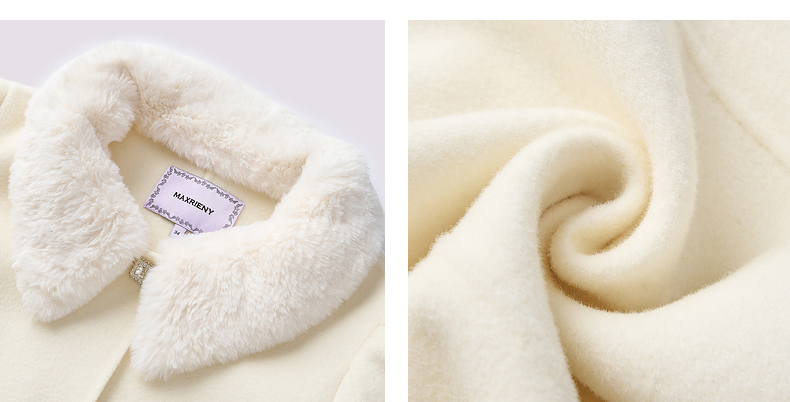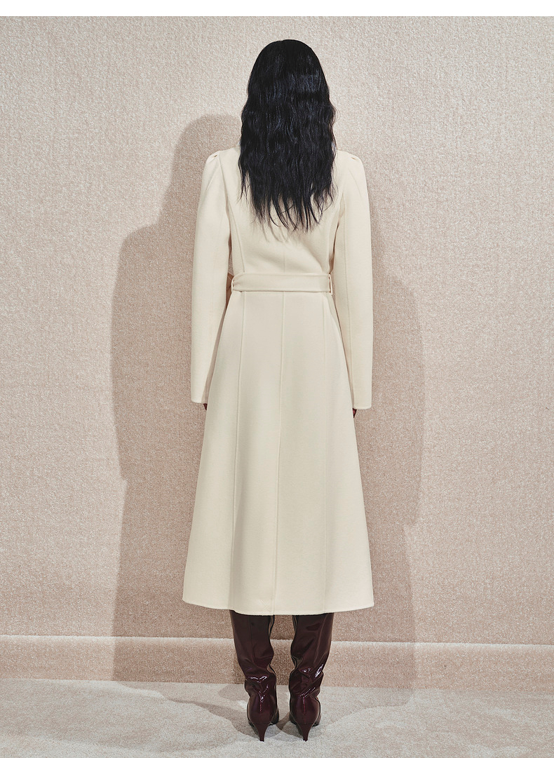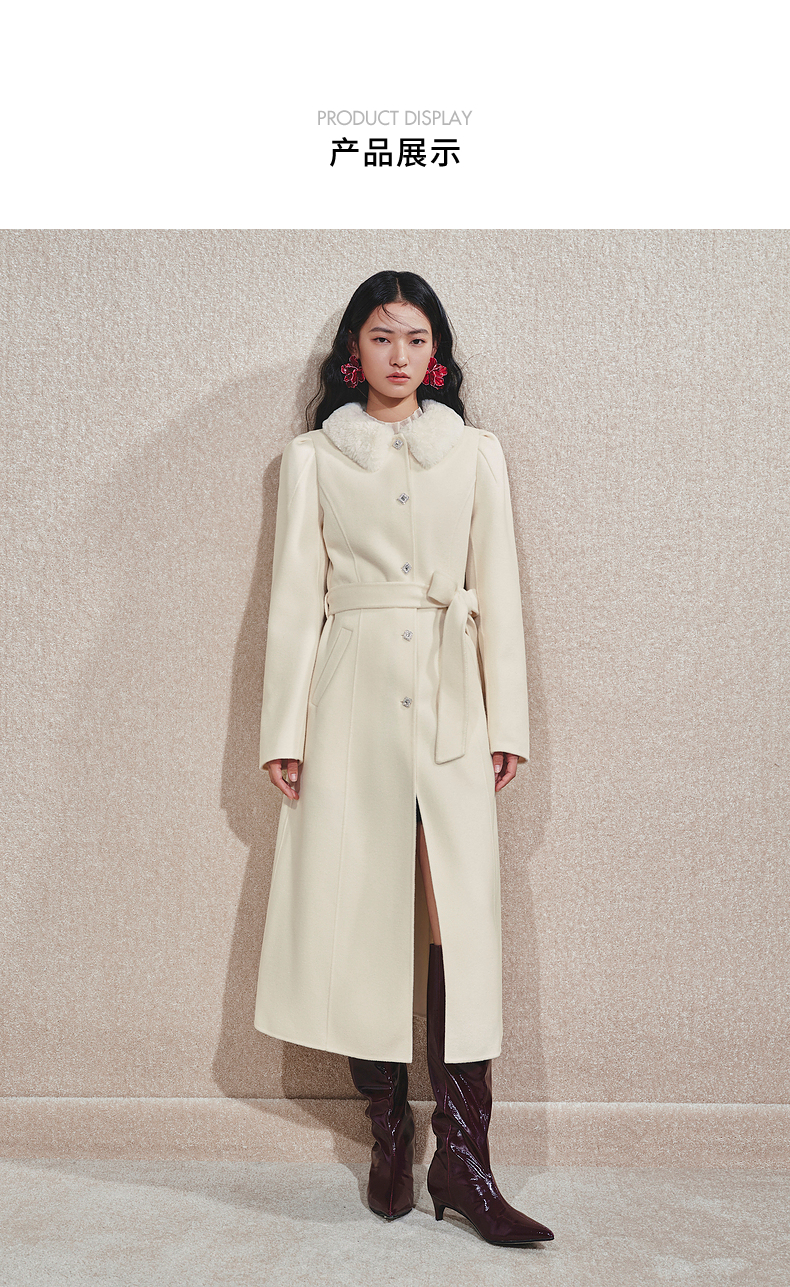 MAXRIENY高级极简米白色绵羊毛大衣中长款24冬新款廓形保暖外套女(货号:MS85CT755)