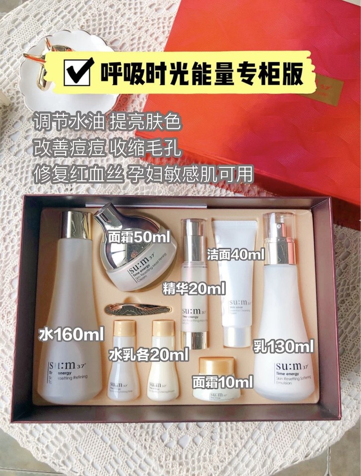 呼吸时光能量三件套红盒20版👍这一套很全效性价比也很高💯,主打滋润修复,调节肌肤水油平衡,恢复肌肤正常循环。改善肤色,解决毛孔粗大,缺水,油脂粒爱出油的肌肤问题。💁对于痘痘、毛孔粗大、问题皮肤强烈推荐!纯天然植物发酵无添加🌿,抗敏感,孕妇和敏感肌肤都可以放心使用。时光能量在秋冬更适合滋润度💦更高哦! *套盒包括:水160ml+乳130ml+水乳各20ml+面霜50ml+面霜10ml+精华12ml+洁面40ml