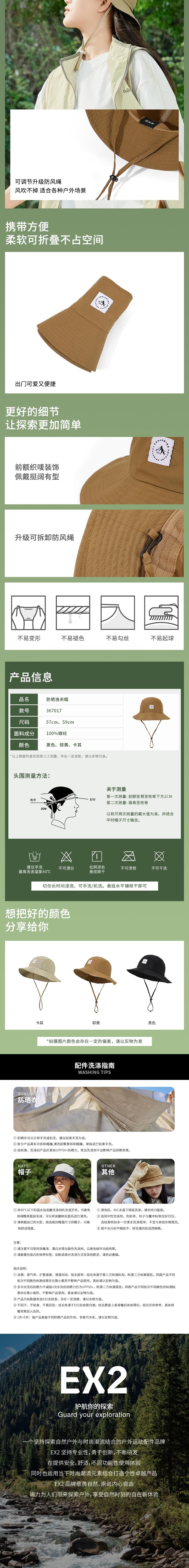 EX2伊海诗 通用防晒渔夫帽 367017