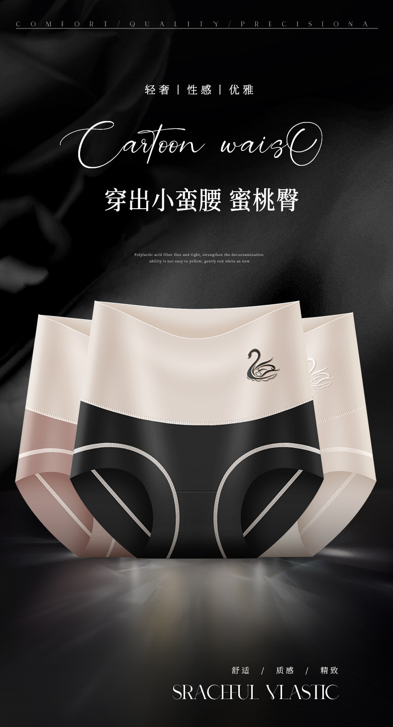 (6条装)高腰内裤女士冰丝无痕三角裤,收腹提臀包臀大码底裤HML-86400