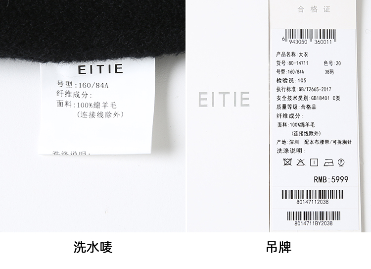 EITIE爱特爱冬季新款修身显瘦通勤高级时尚毛呢大衣8014711