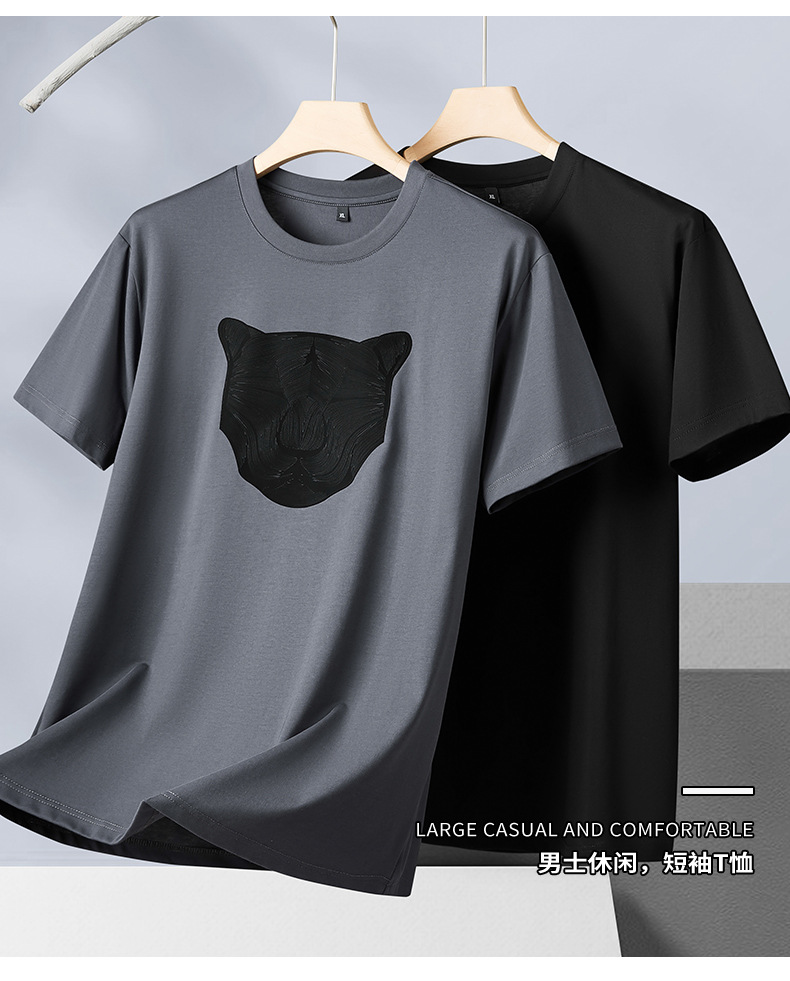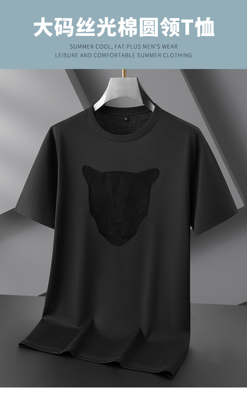 【丝光棉】【DPF】大依优型大码激光雕刻短袖T恤加肥大码丝光棉上衣夏季新款半袖男士胖子
