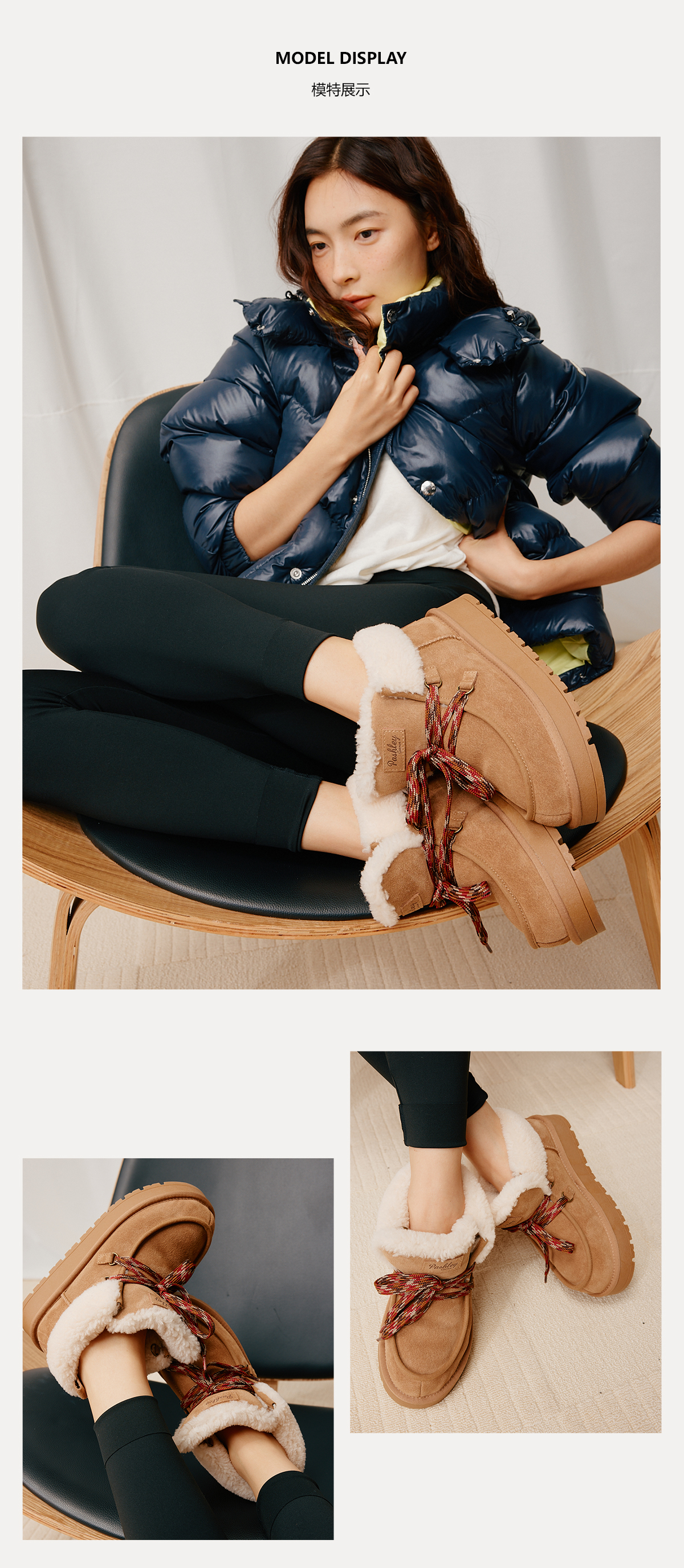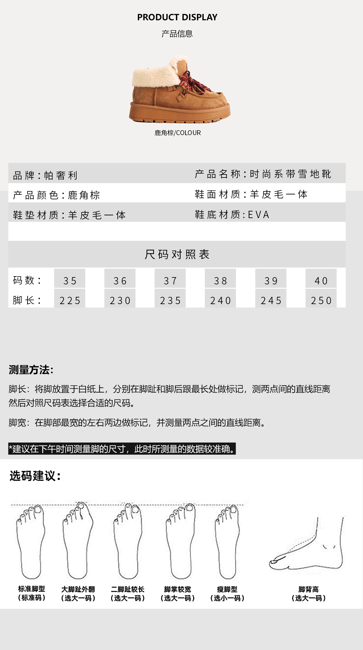 【梅花出品】帕奢利女士时尚系带雪地靴HZ0059