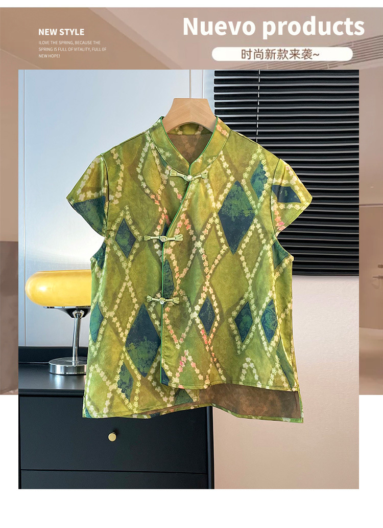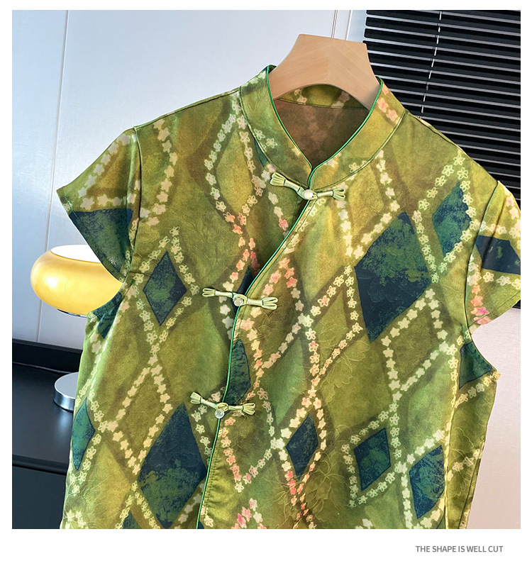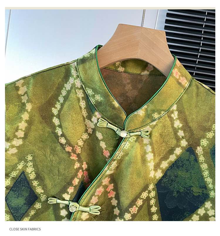 雀说新中式复古改良唐装立领盘扣缎面提花马甲女背心国风马夹上衣AL2797