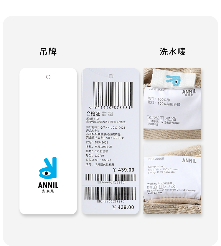 男童全腰梭织夹裤冬季新款安奈儿童装EB546605