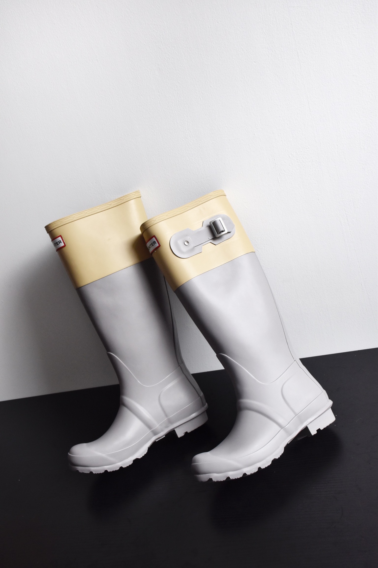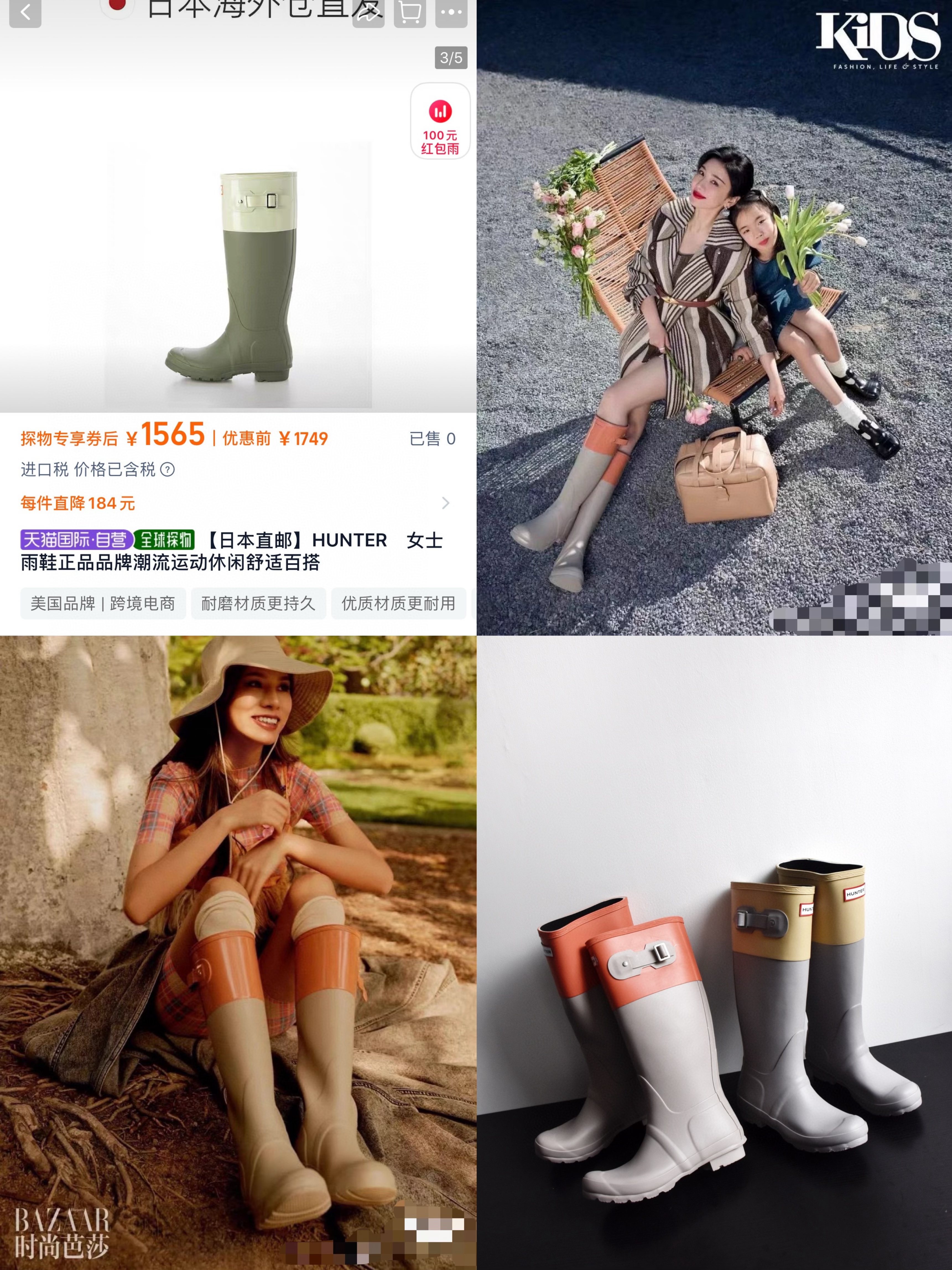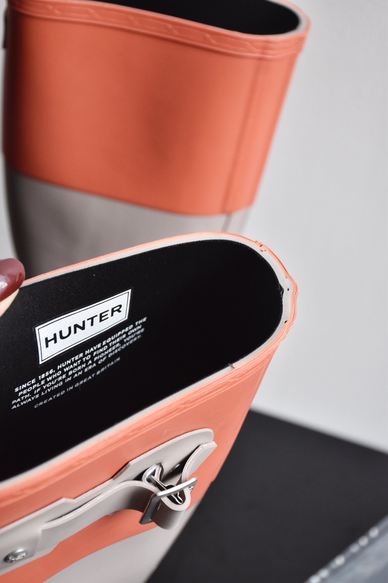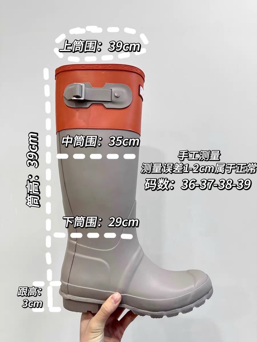 HUNTER惠灵顿 东莞代工出货,裸包装发货,都是几双几双留下来一些货,所有数量很少!颜值太高了这个雨靴,随便搭都好看! 采用哑光质地的天然硫化橡胶制成,极致耐用。带有胎面花纹的橡胶外底,靴子采用28个手工切割部件制成,并在三天内组装出“终极形态〞,舒适的聚酯内衬和金属搭扣点缀。经典时髦百搭,不挑论雨天晴天,搭配短裤短裙的时髦感一秒拉满