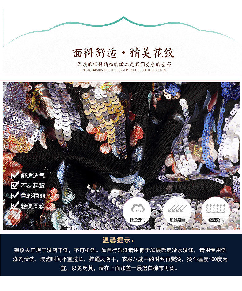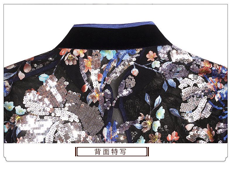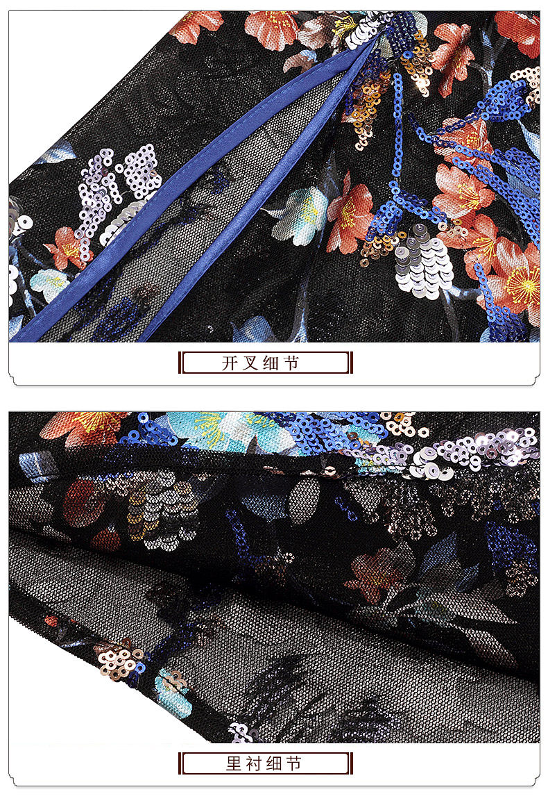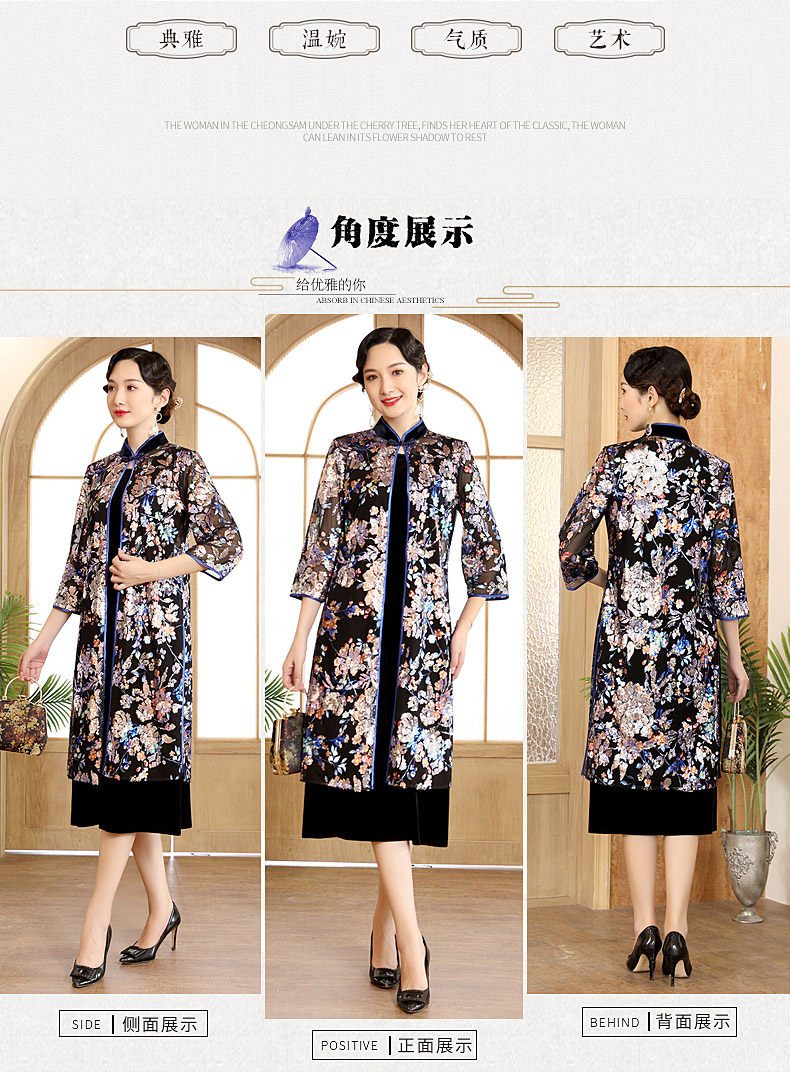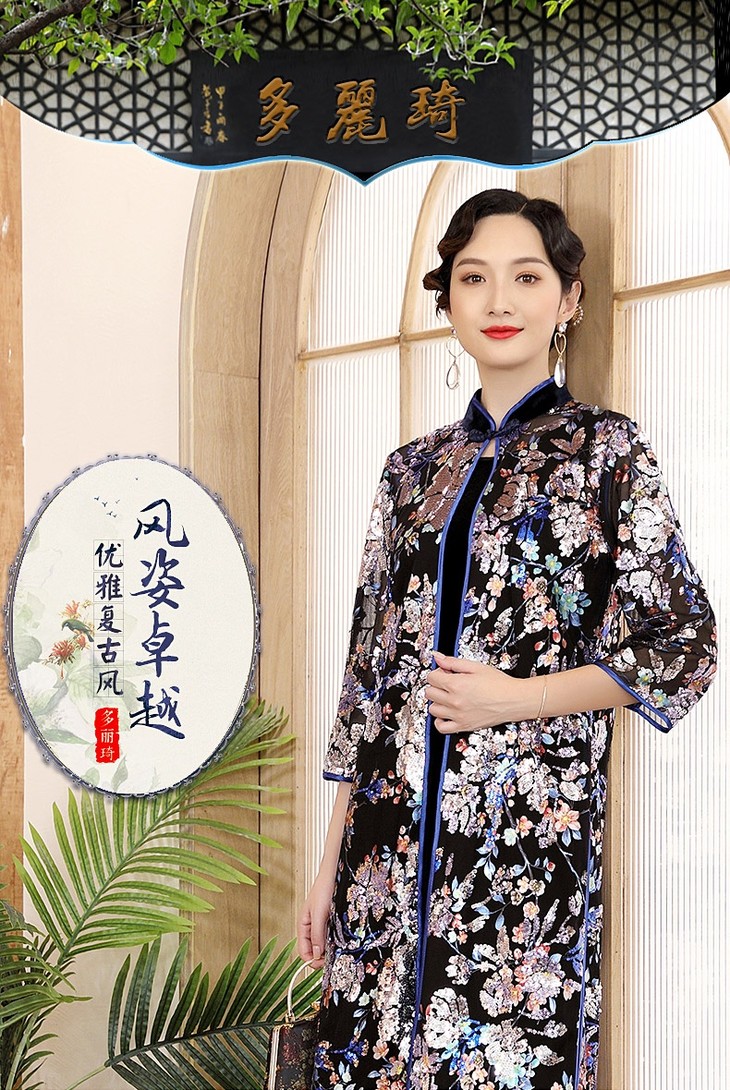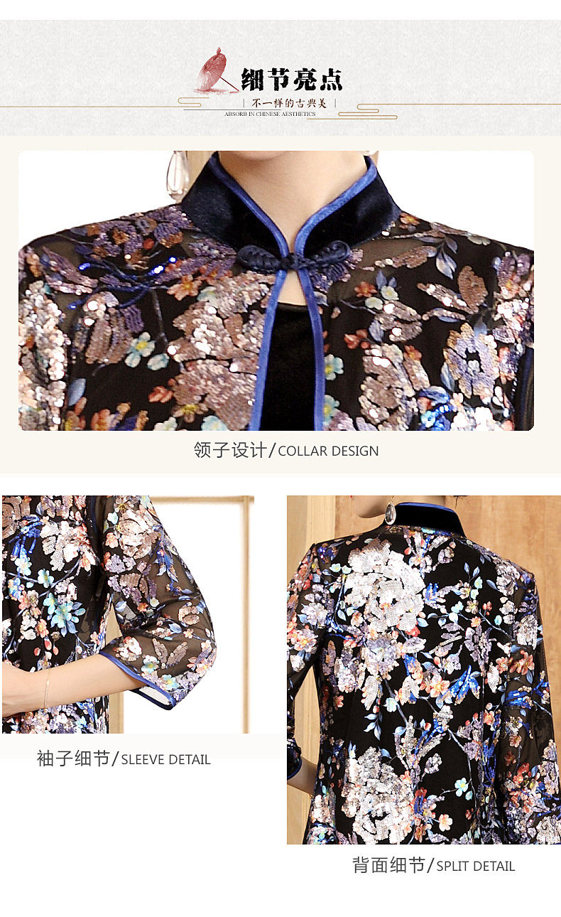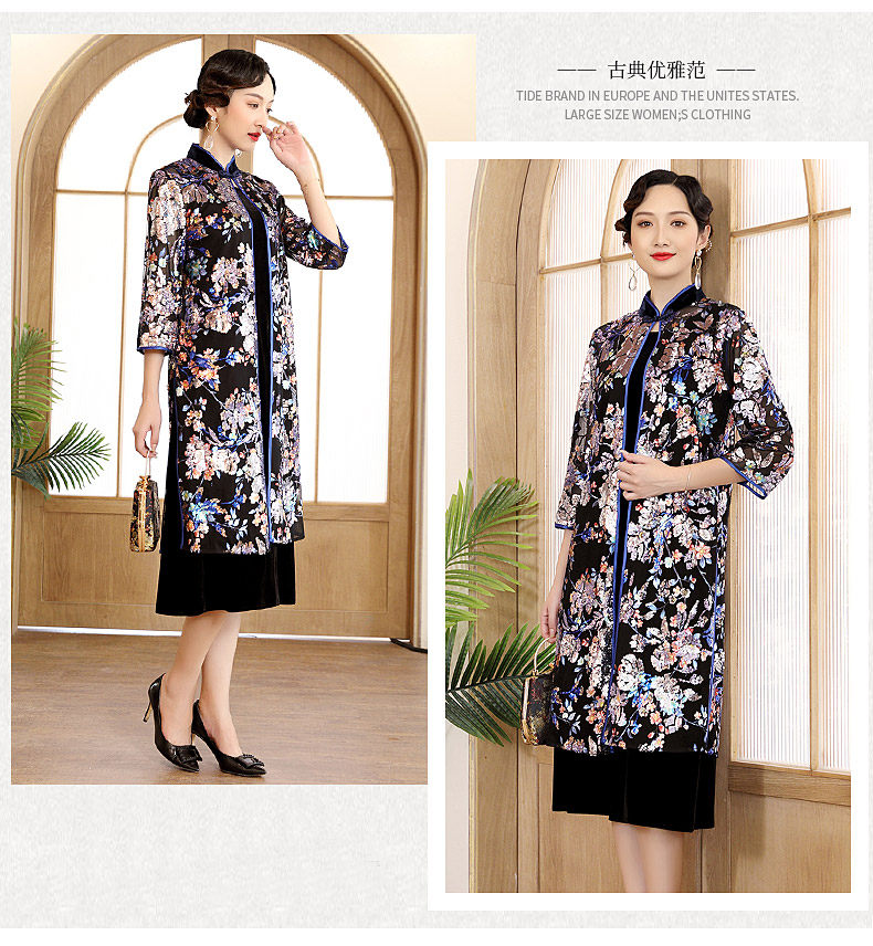 DLQ-A2699新款中国风优雅气质立领七分袖印花亮片长款风衣外套