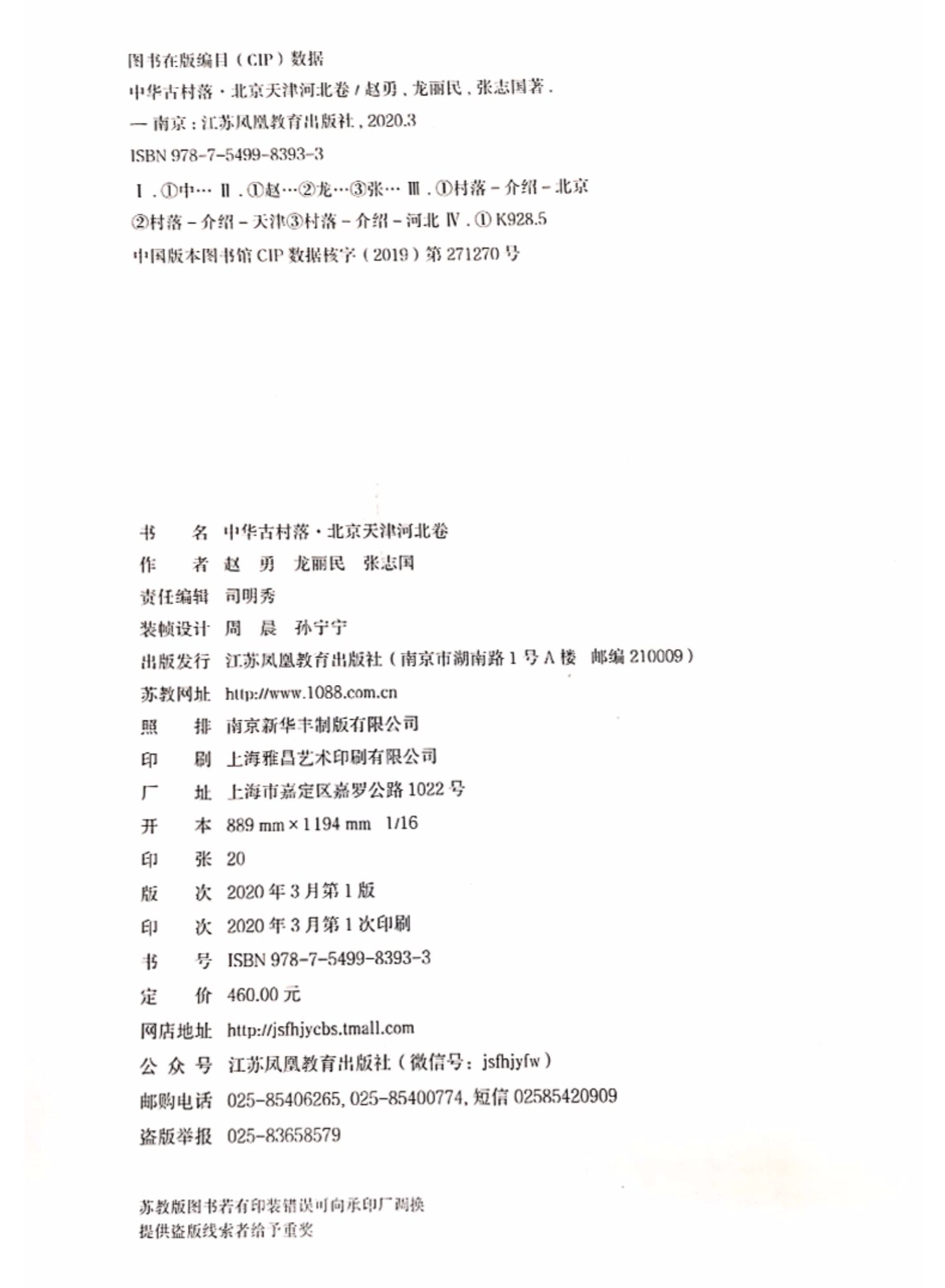 中华古村落 北京天津河北卷 本书综合了建筑学 历史学 民俗学 社会学 文化人类学 作者 赵勇 龙丽敏 张志国 江苏凤凰教育出版社