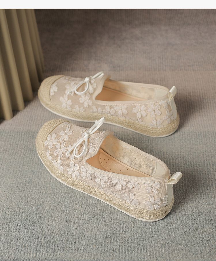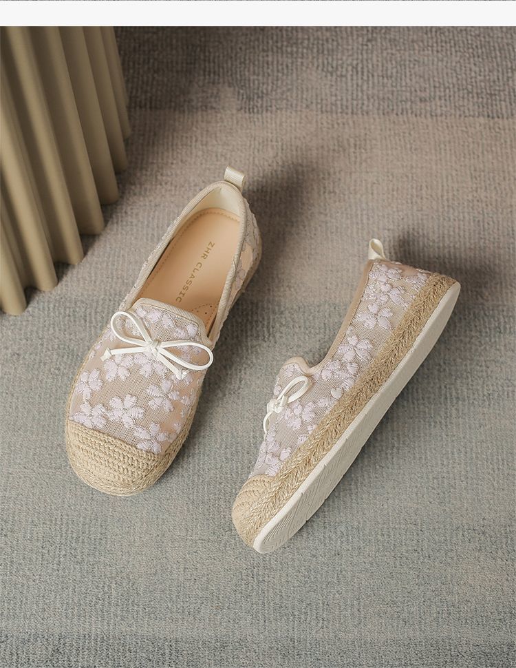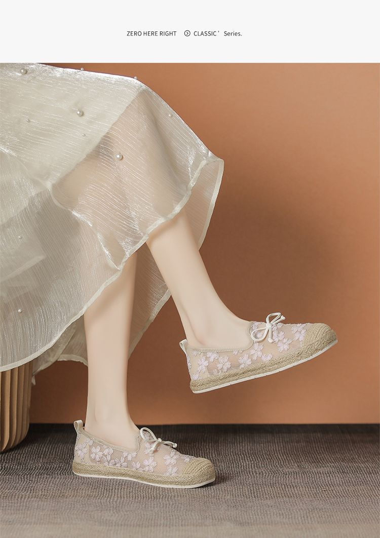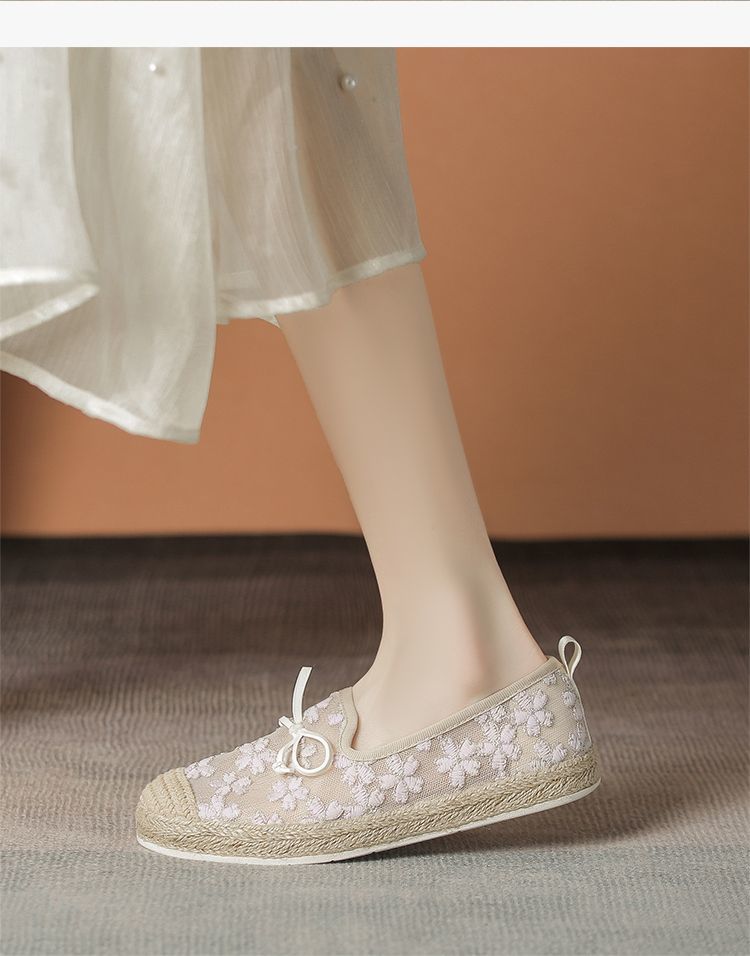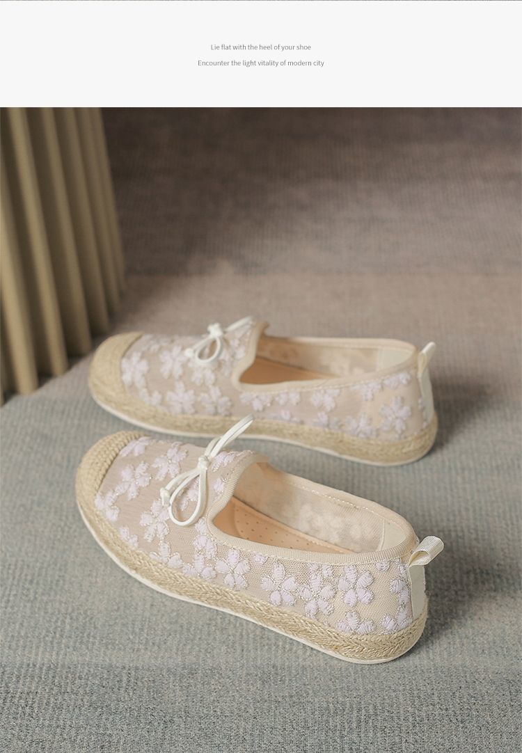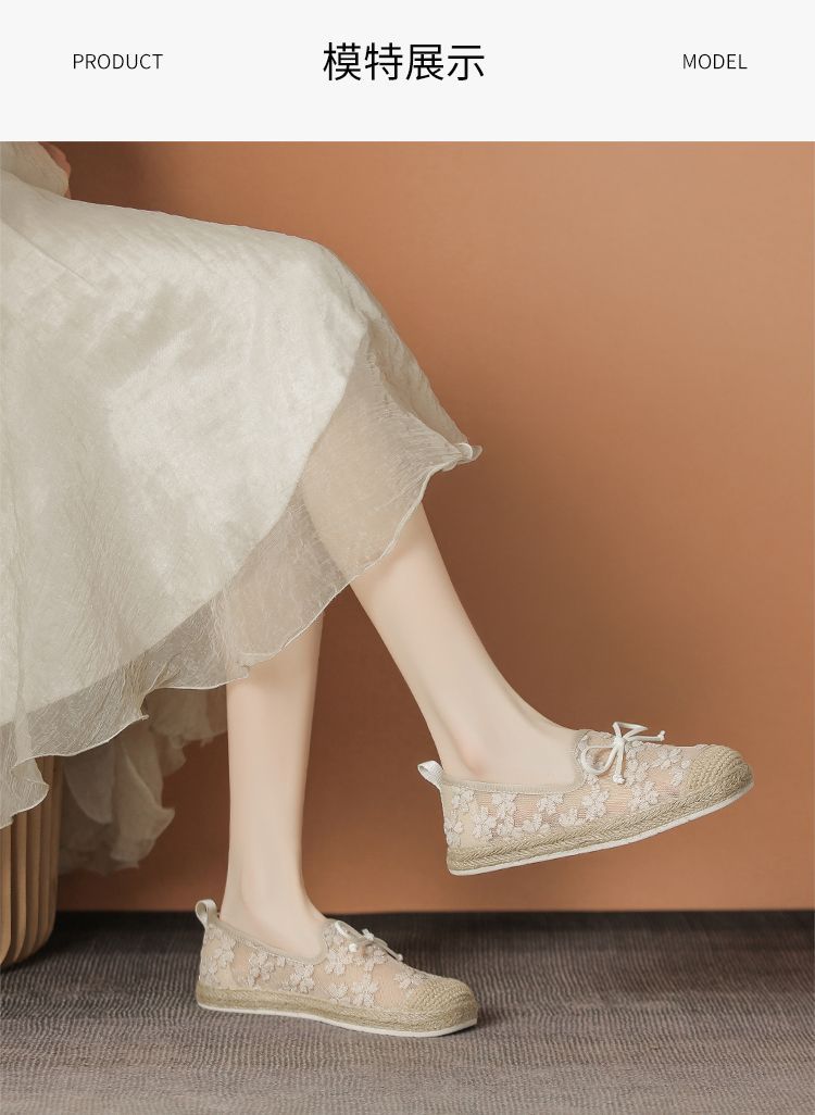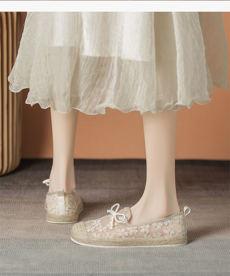 ZHR繁花网纱渔夫鞋女2025新款蝴蝶结透气懒人鞋平底一脚蹬单鞋女