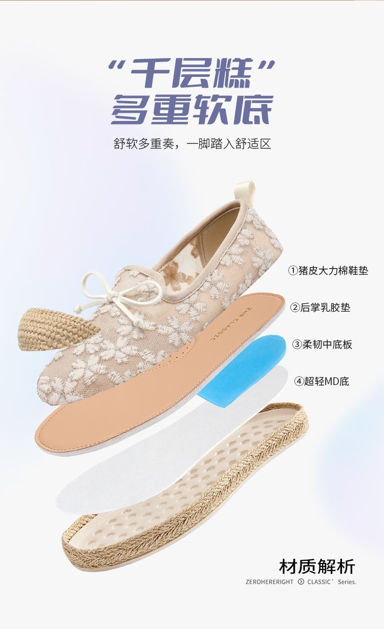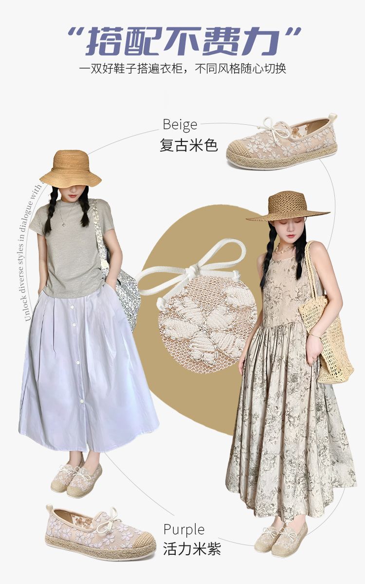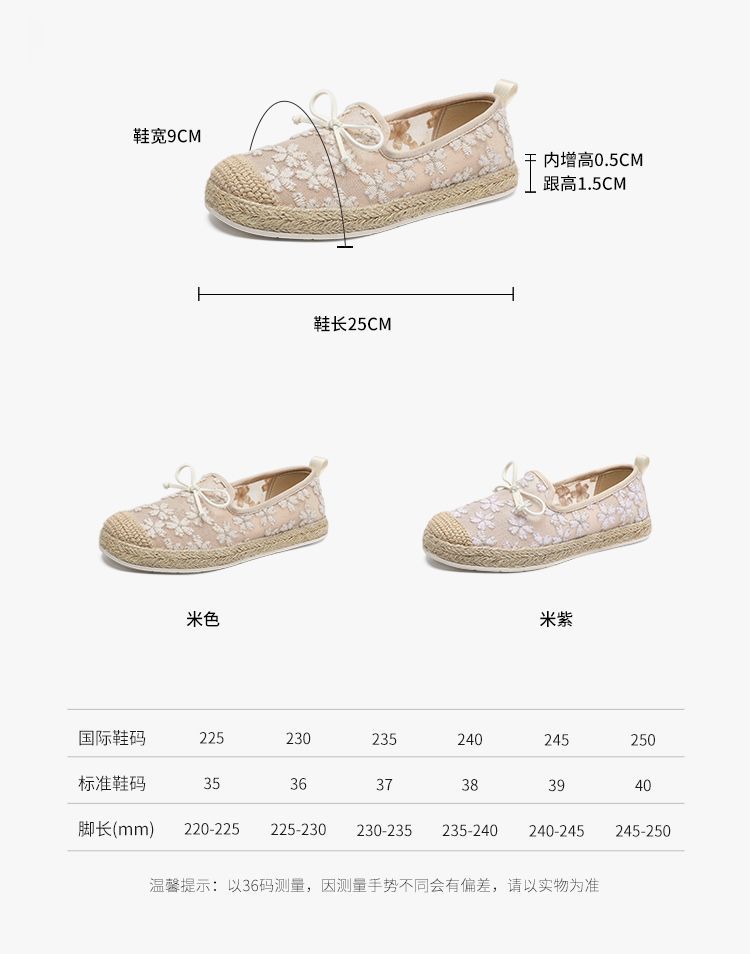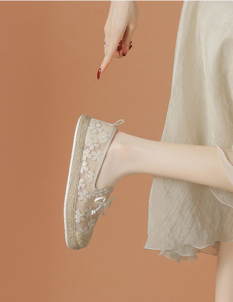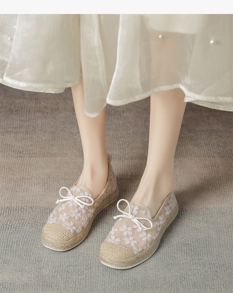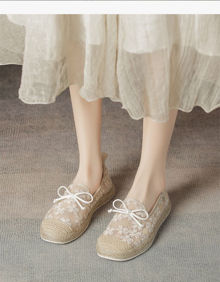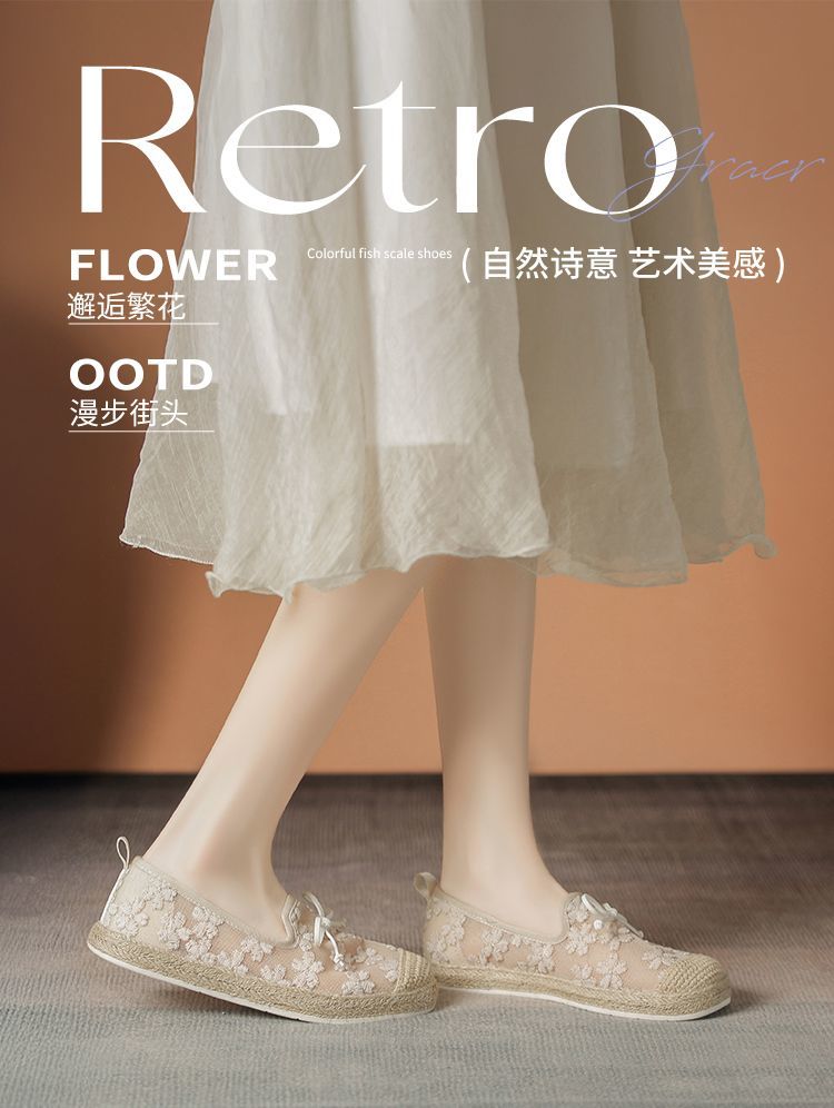 ZHR繁花网纱渔夫鞋女2025新款蝴蝶结透气懒人鞋平底一脚蹬单鞋女