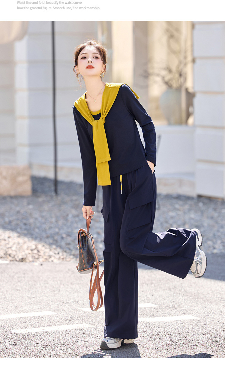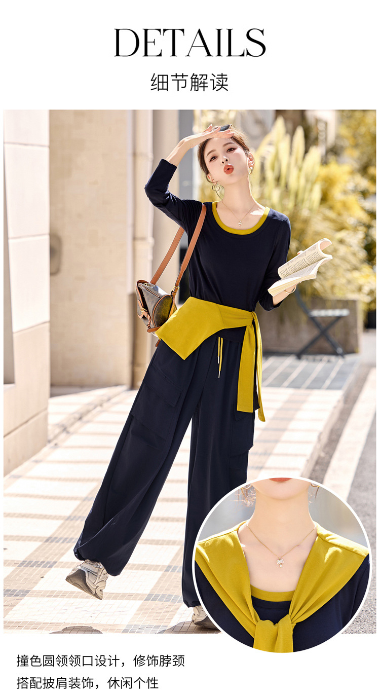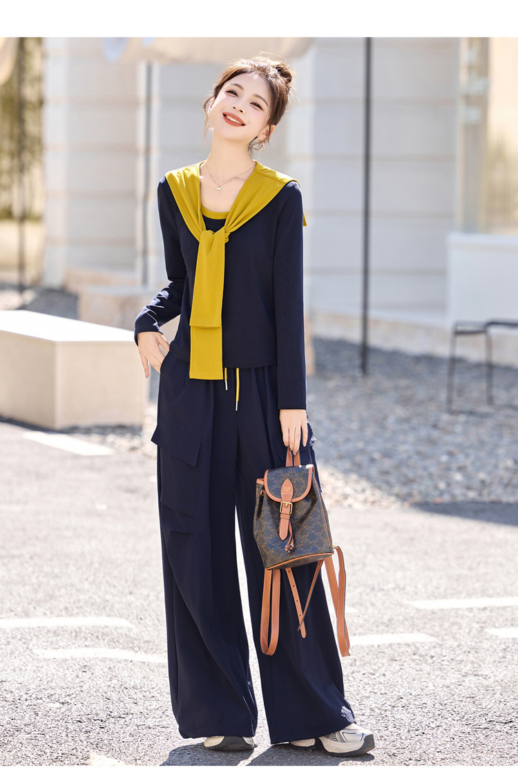 HR YF2612时尚套装裤气质优雅马甲T恤阔腿裤三件套 商品图4