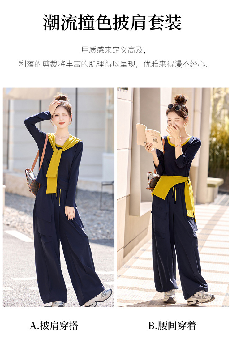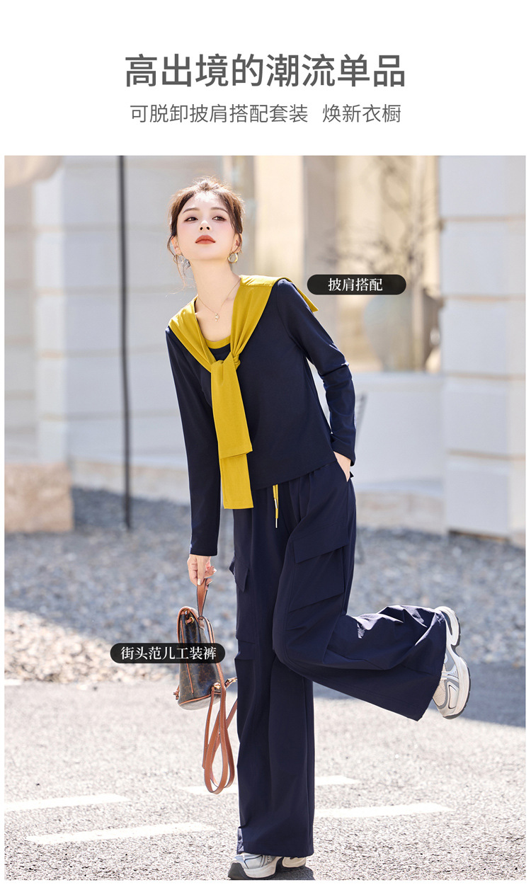 HR YF2612时尚套装裤气质优雅马甲T恤阔腿裤三件套 商品图2