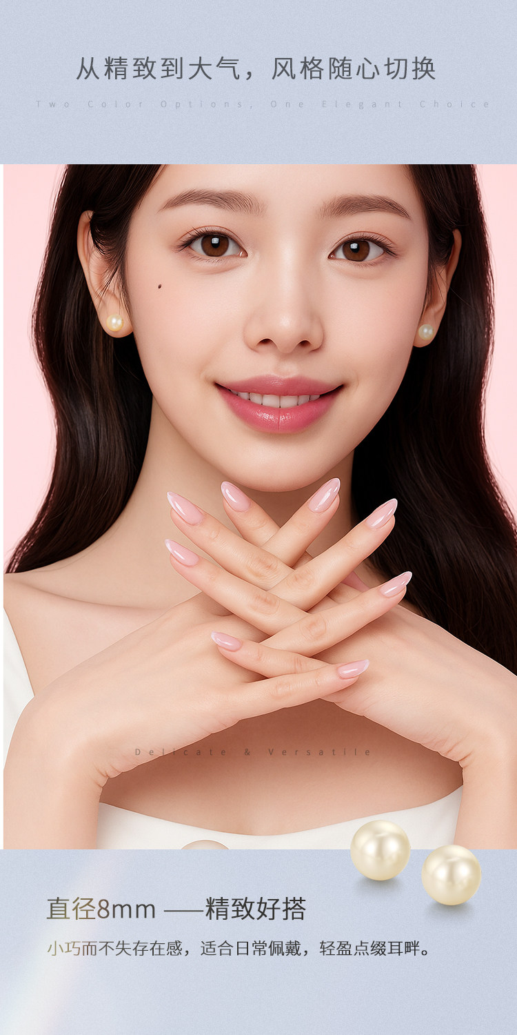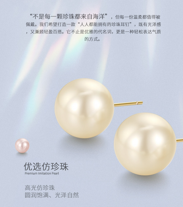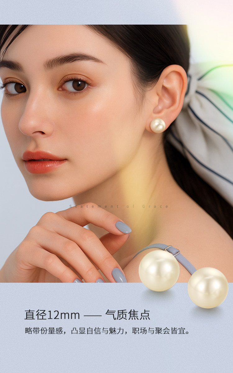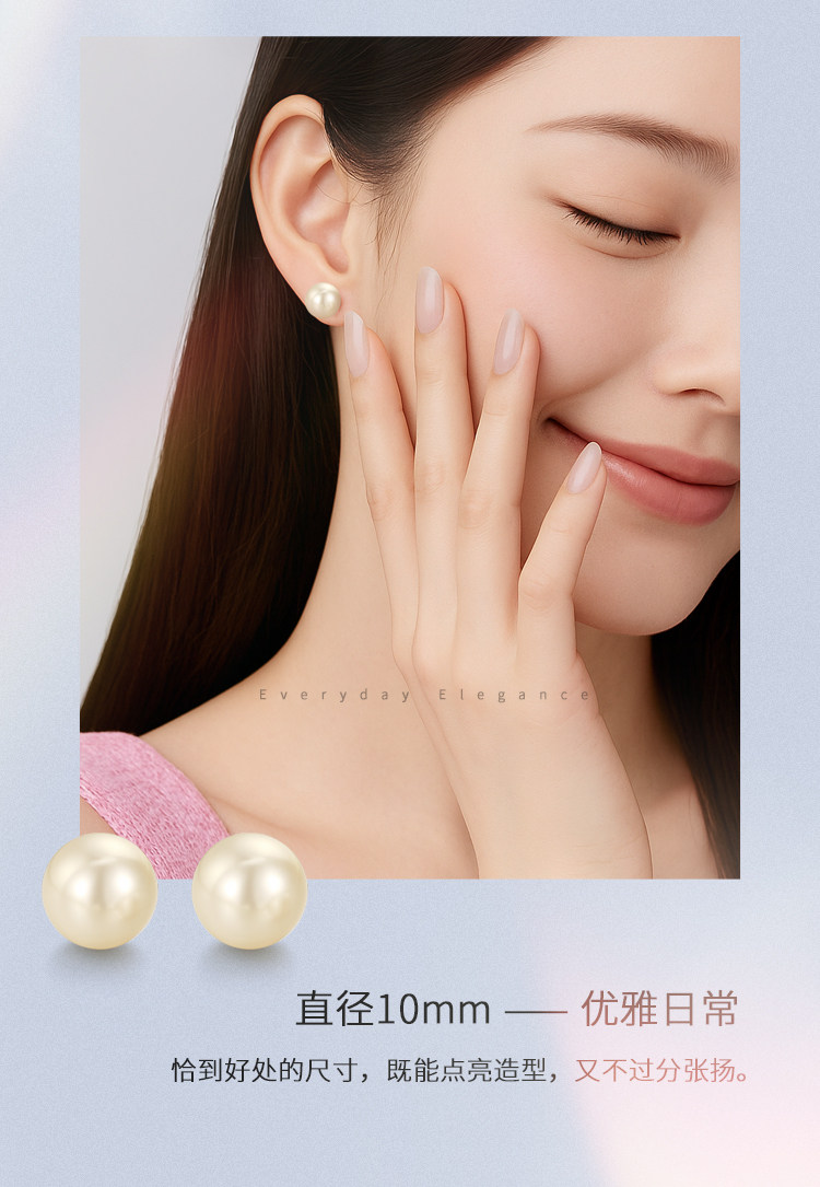 阿吉豆耳钉女S925银针2026新款爆款正圆大珍珠耳扣耳环轻奢耳饰品