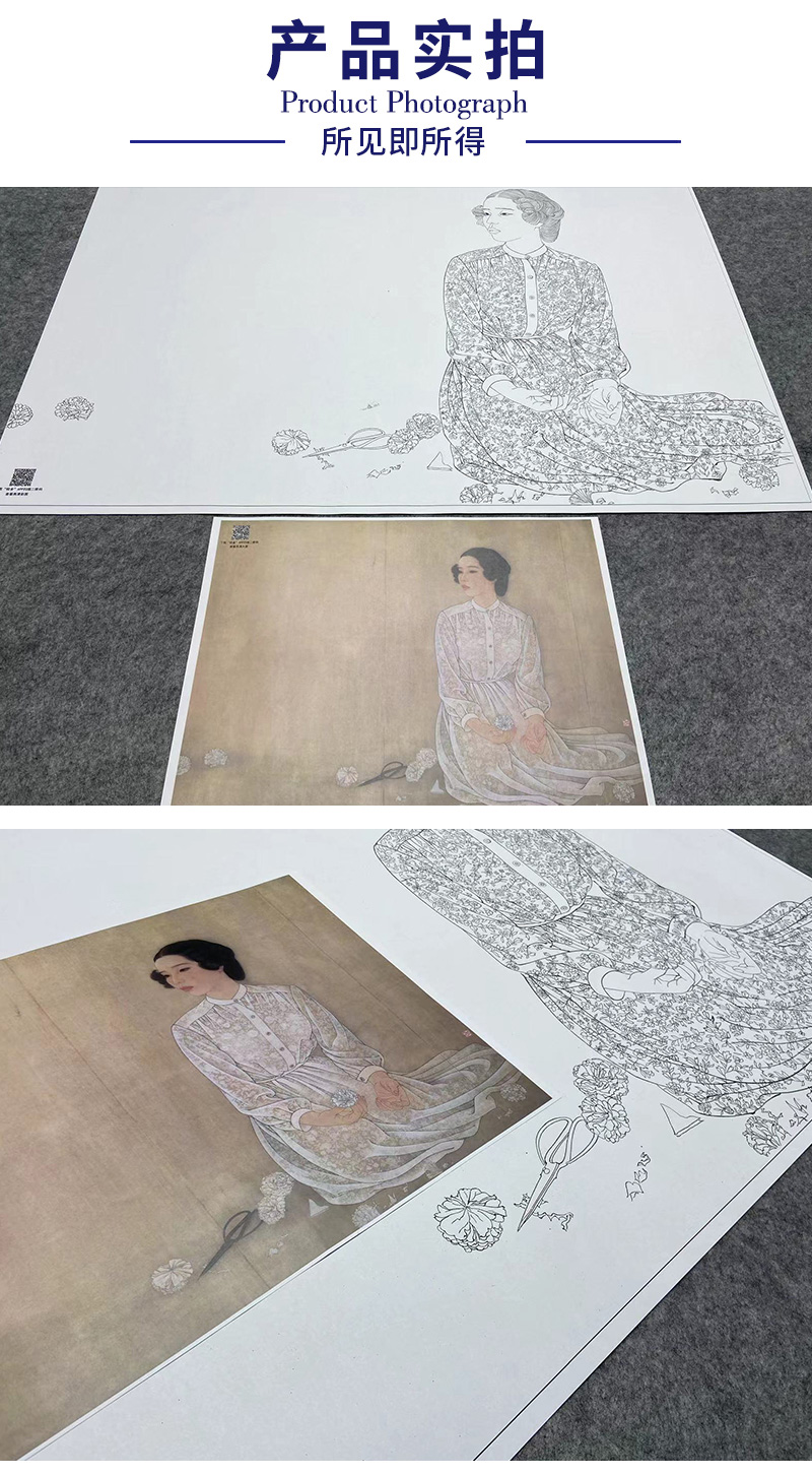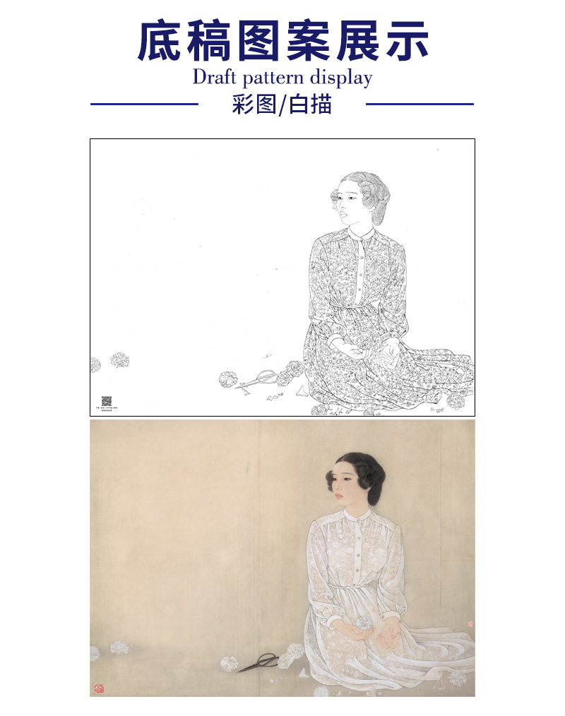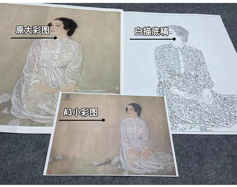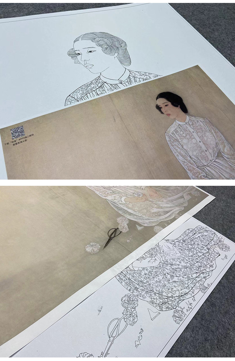 【大彩图】何家英工笔画白描底稿《清明》高清打印稿人物线稿ZV18