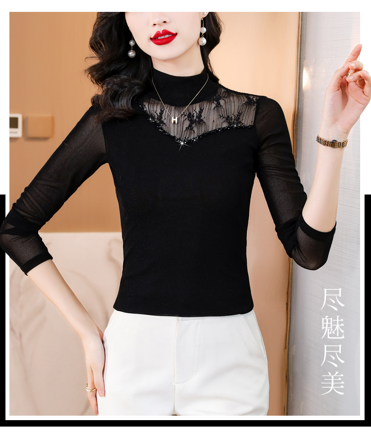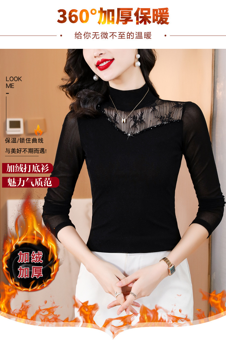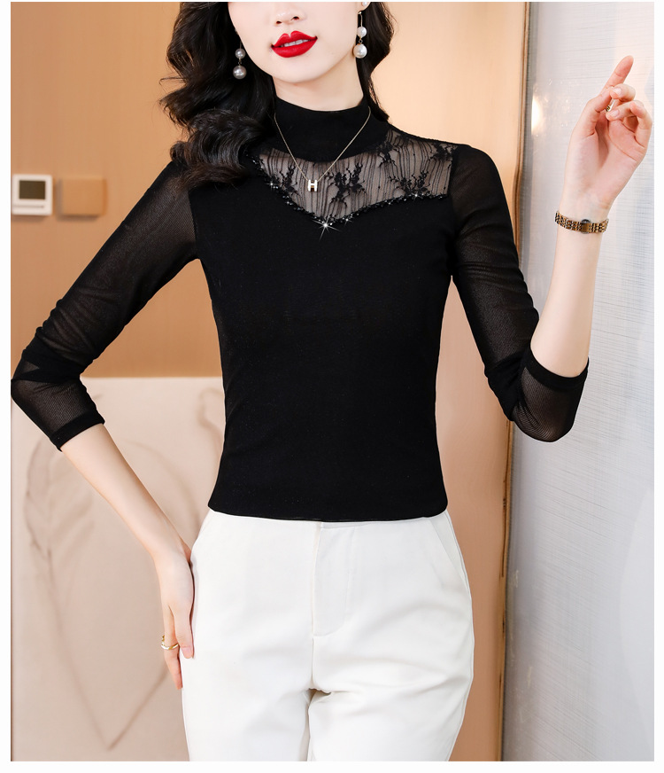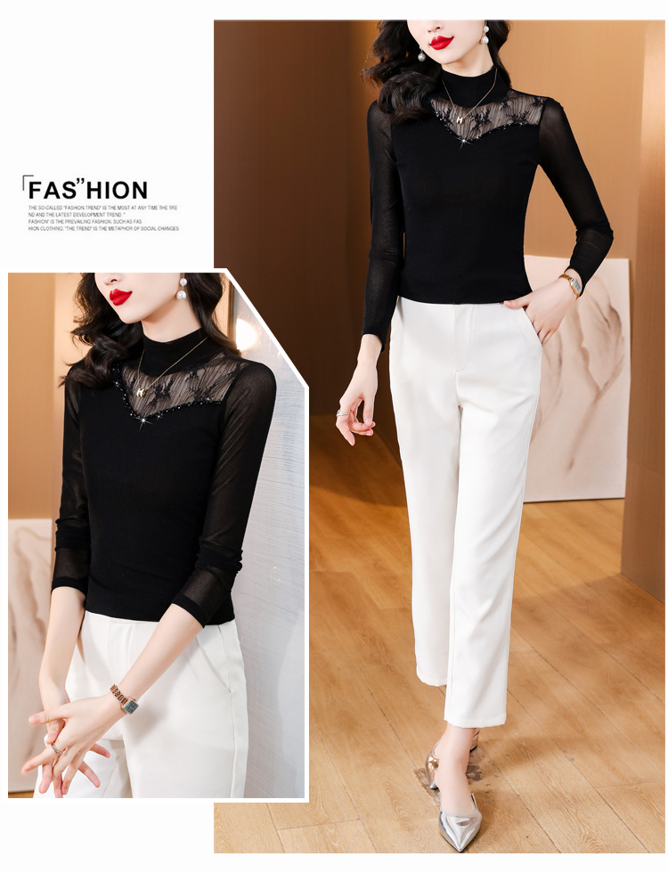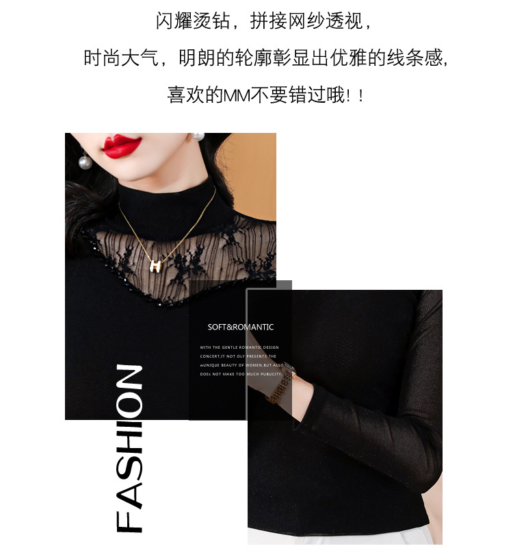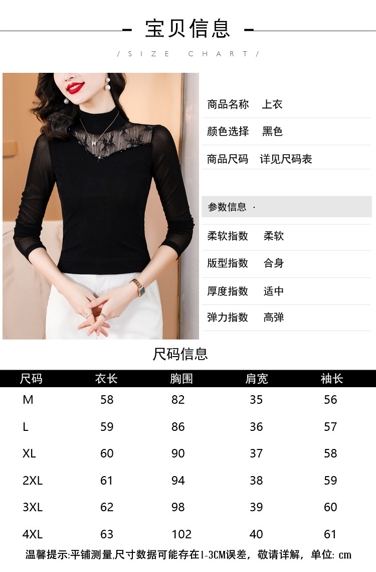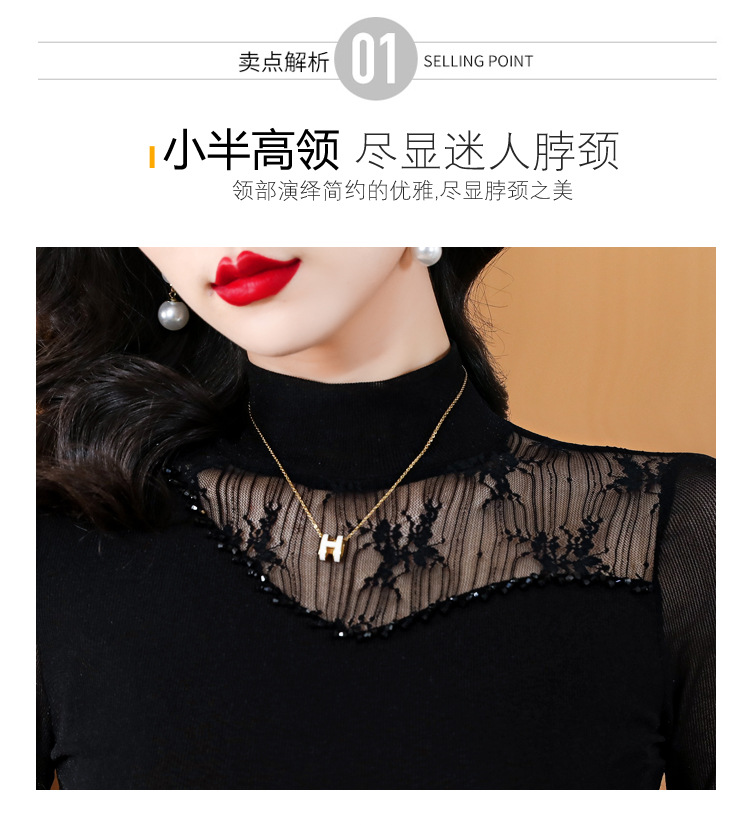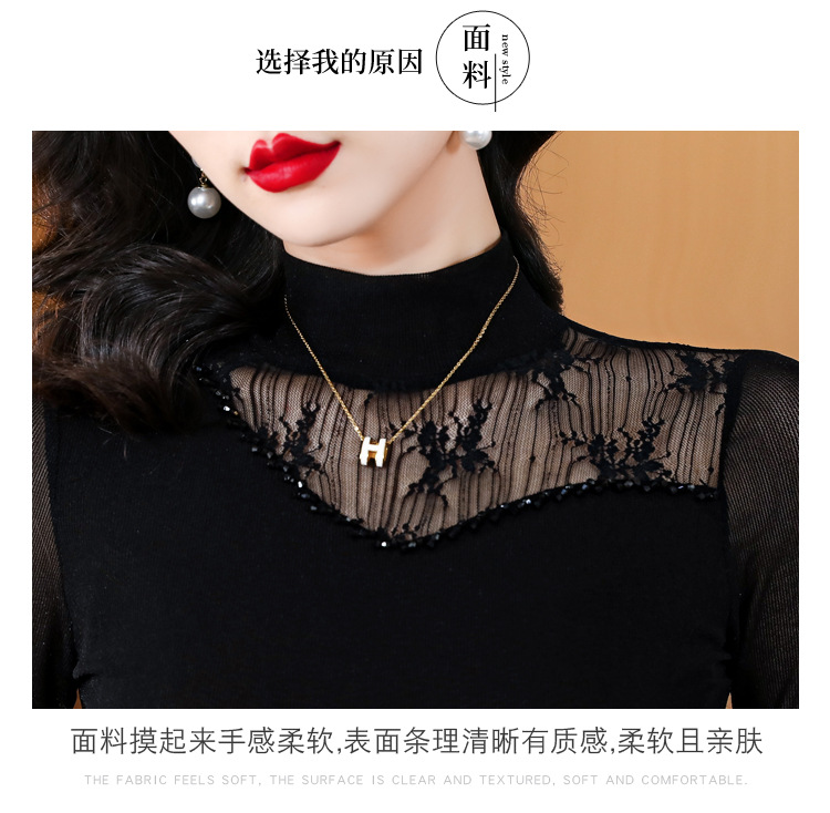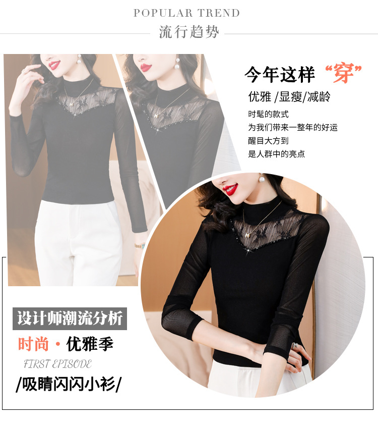 SMZ10675半高领钉珠长袖打底衫2023秋冬新款气质优雅修身显瘦洋气保暖上衣