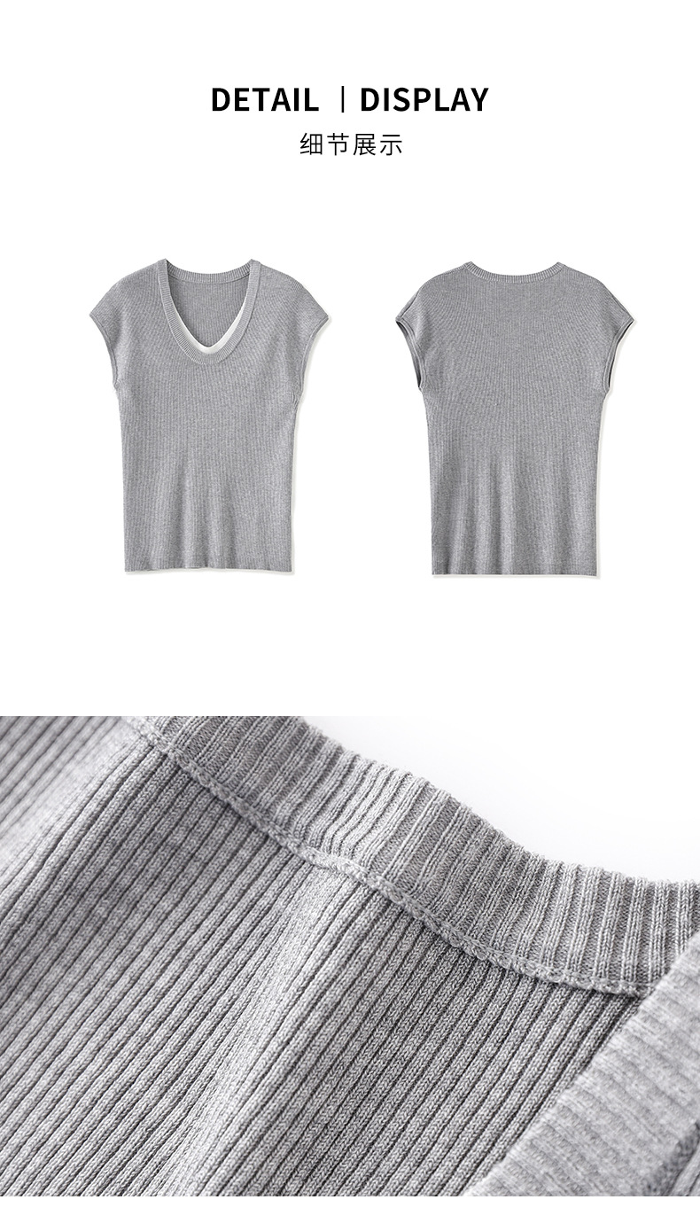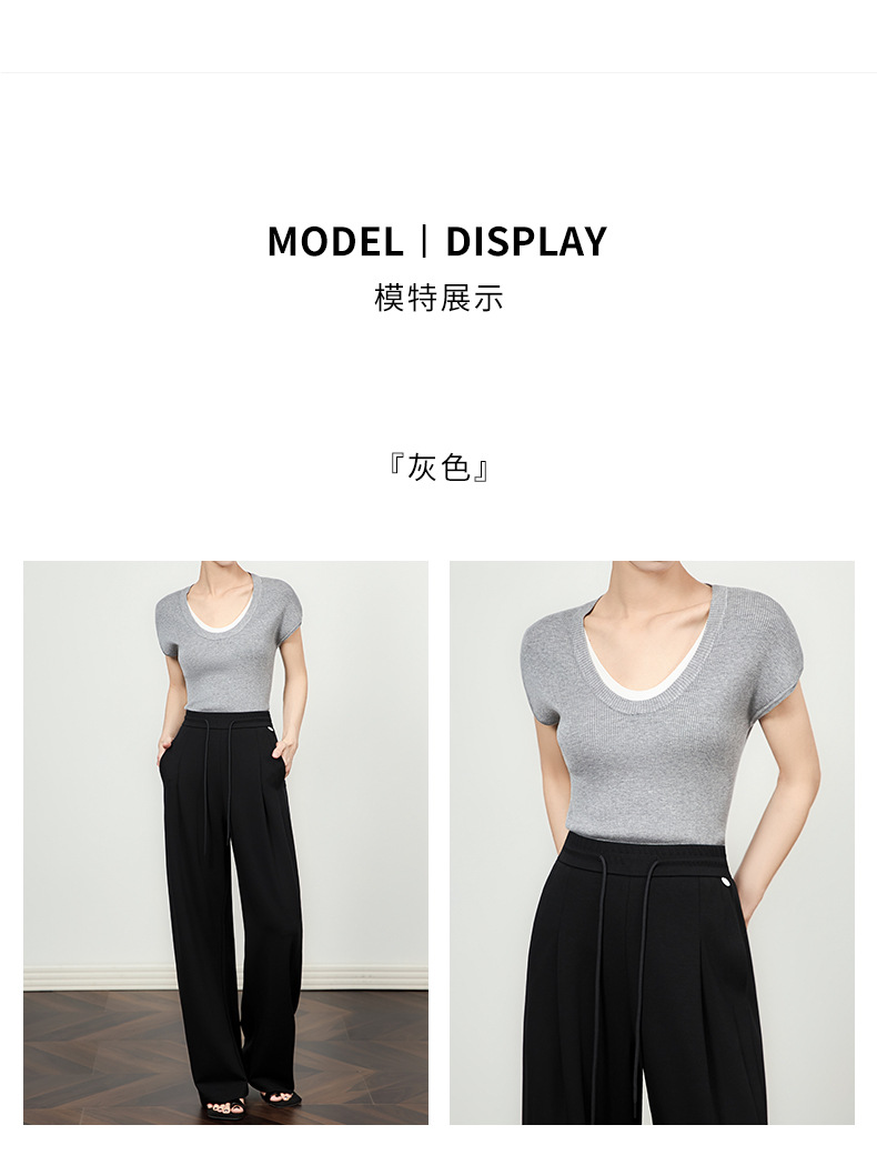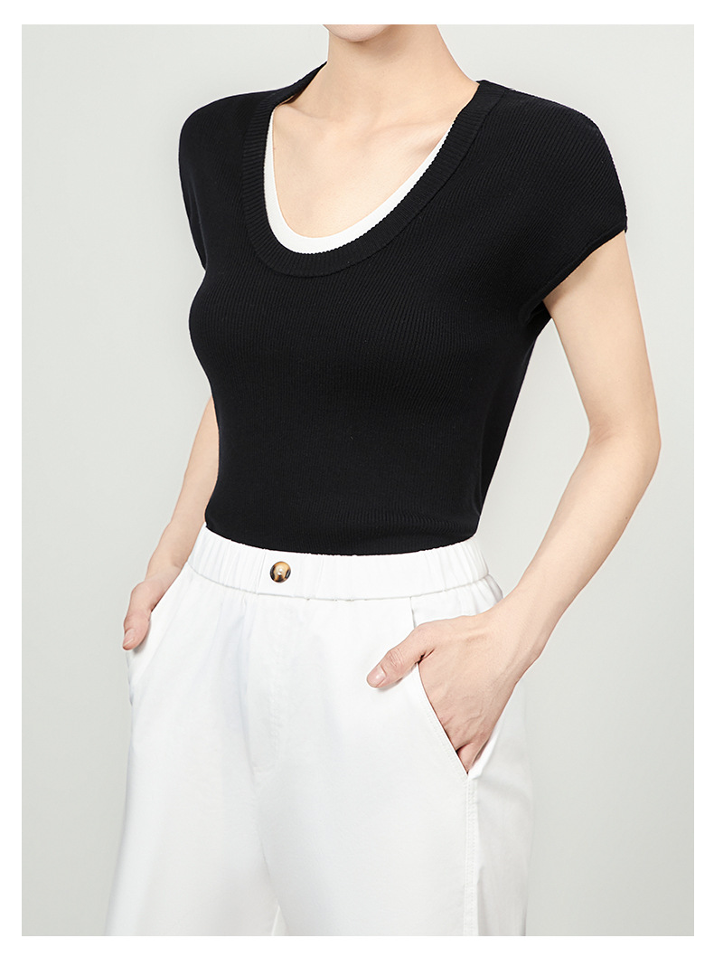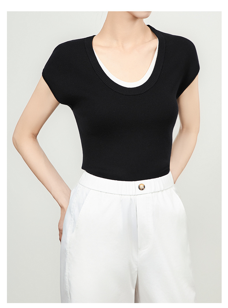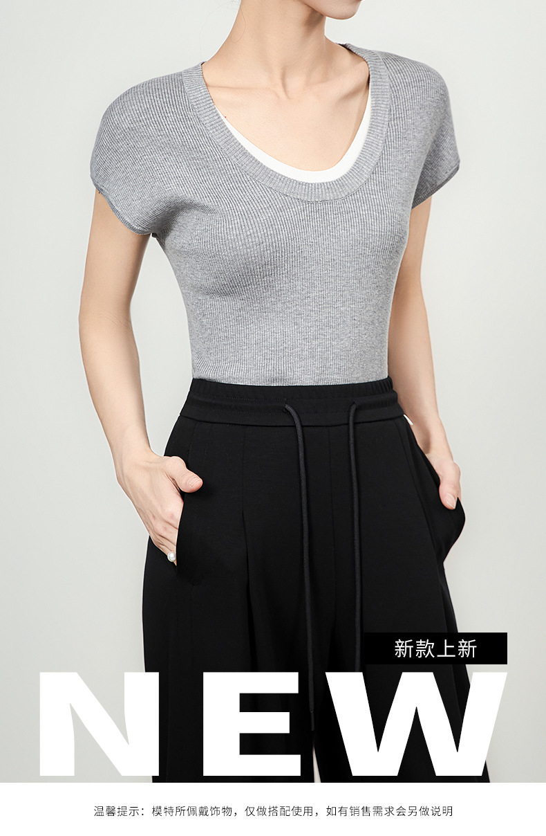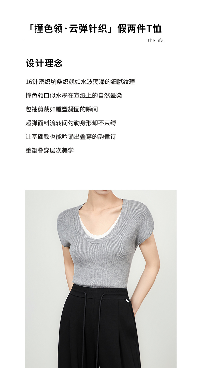 「高货wl」全新升级【铂金会员146/天猫199/差价53】(00947)洛诗琳2025坑条兰精天丝针织撞色领弹力假两件百搭T恤上衣