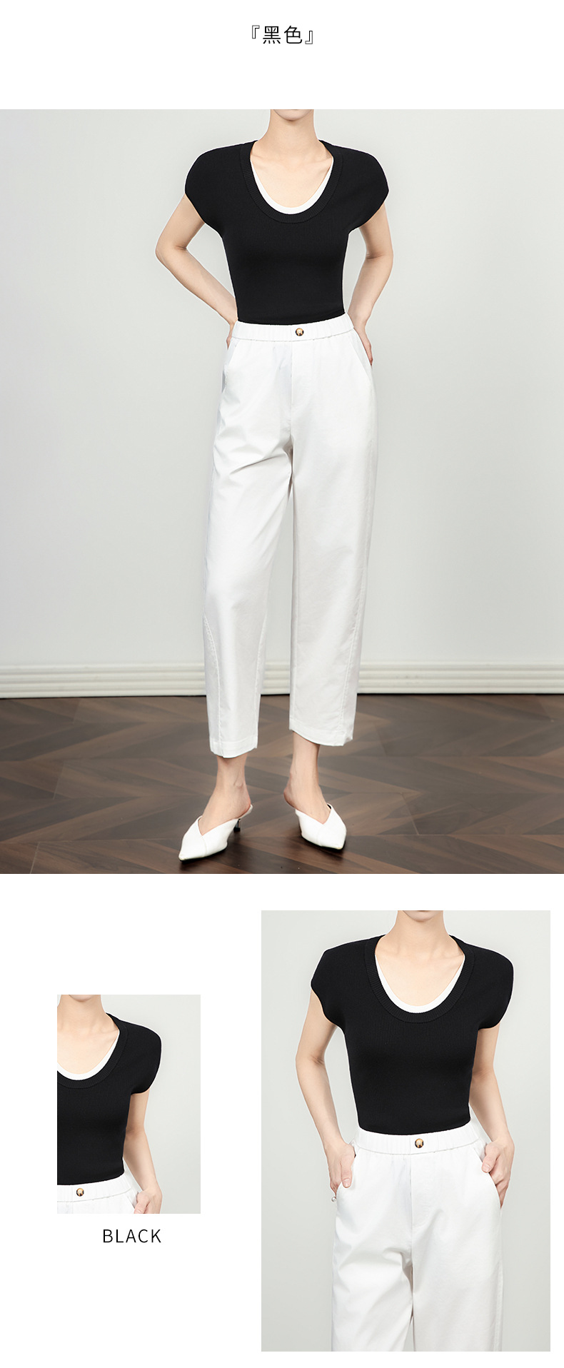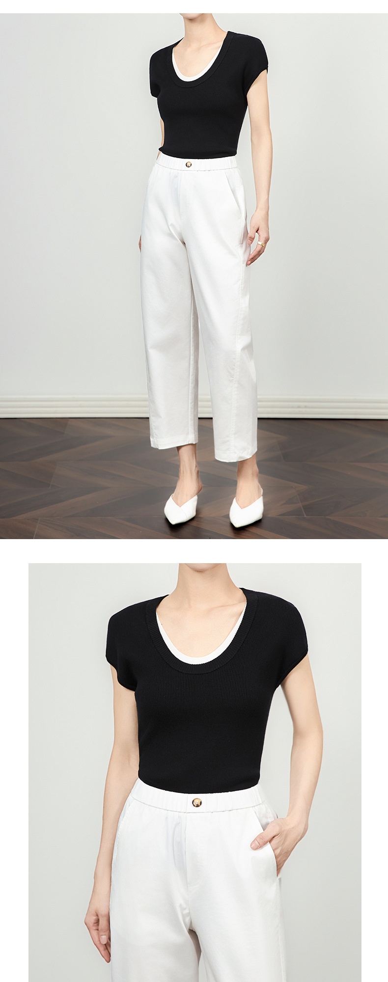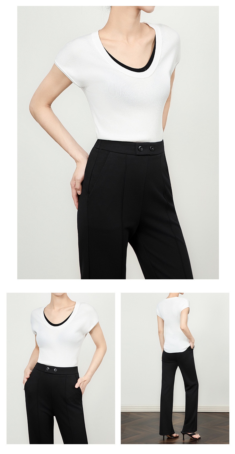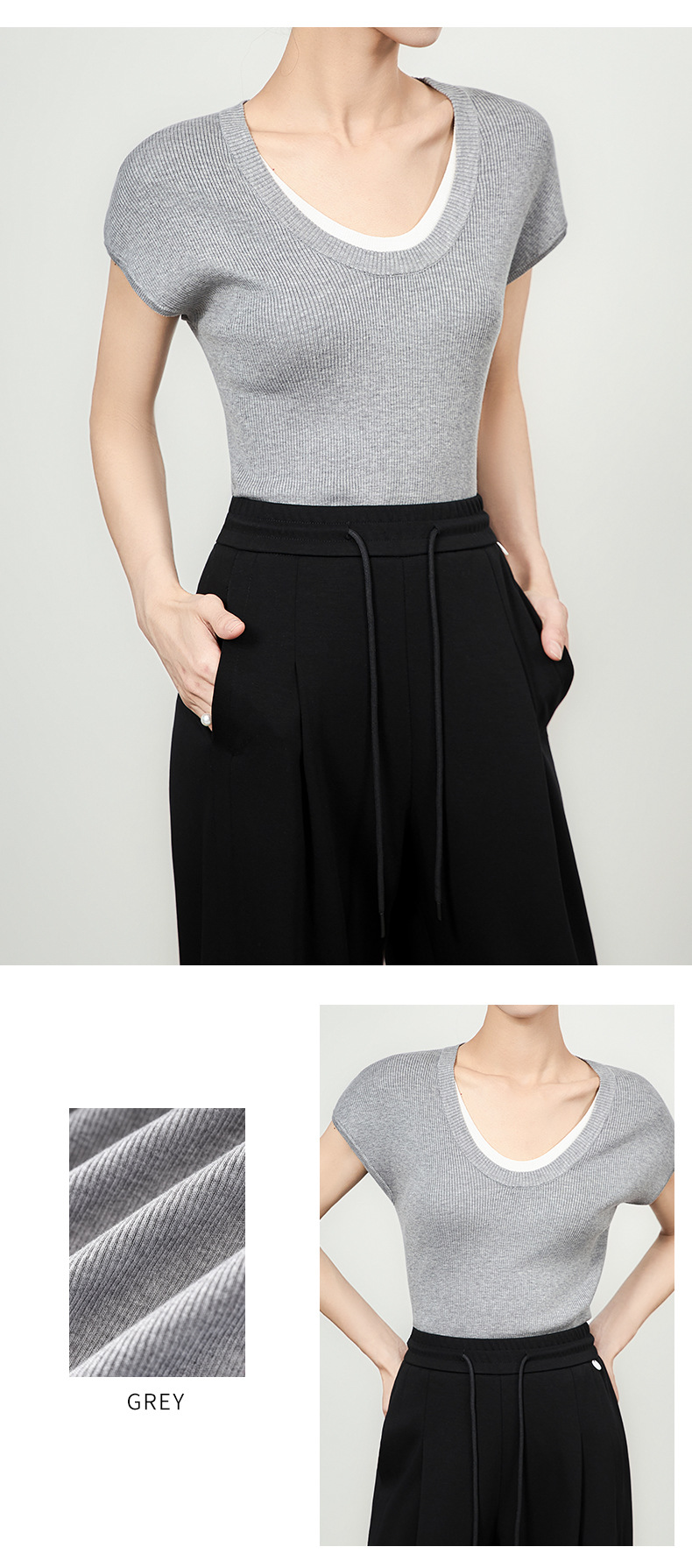 「高货wl」全新升级【铂金会员146/天猫199/差价53】(00947)洛诗琳2025坑条兰精天丝针织撞色领弹力假两件百搭T恤上衣